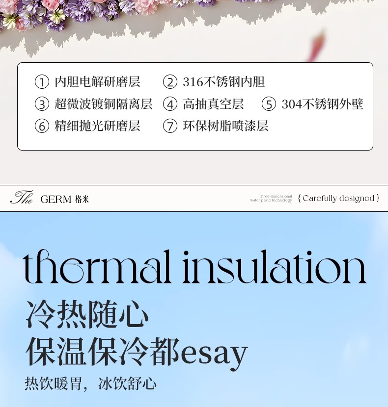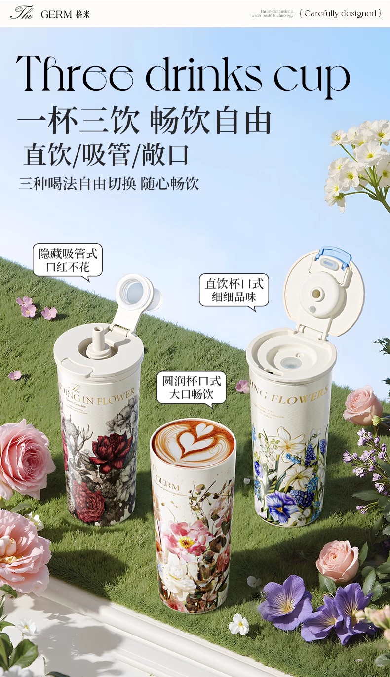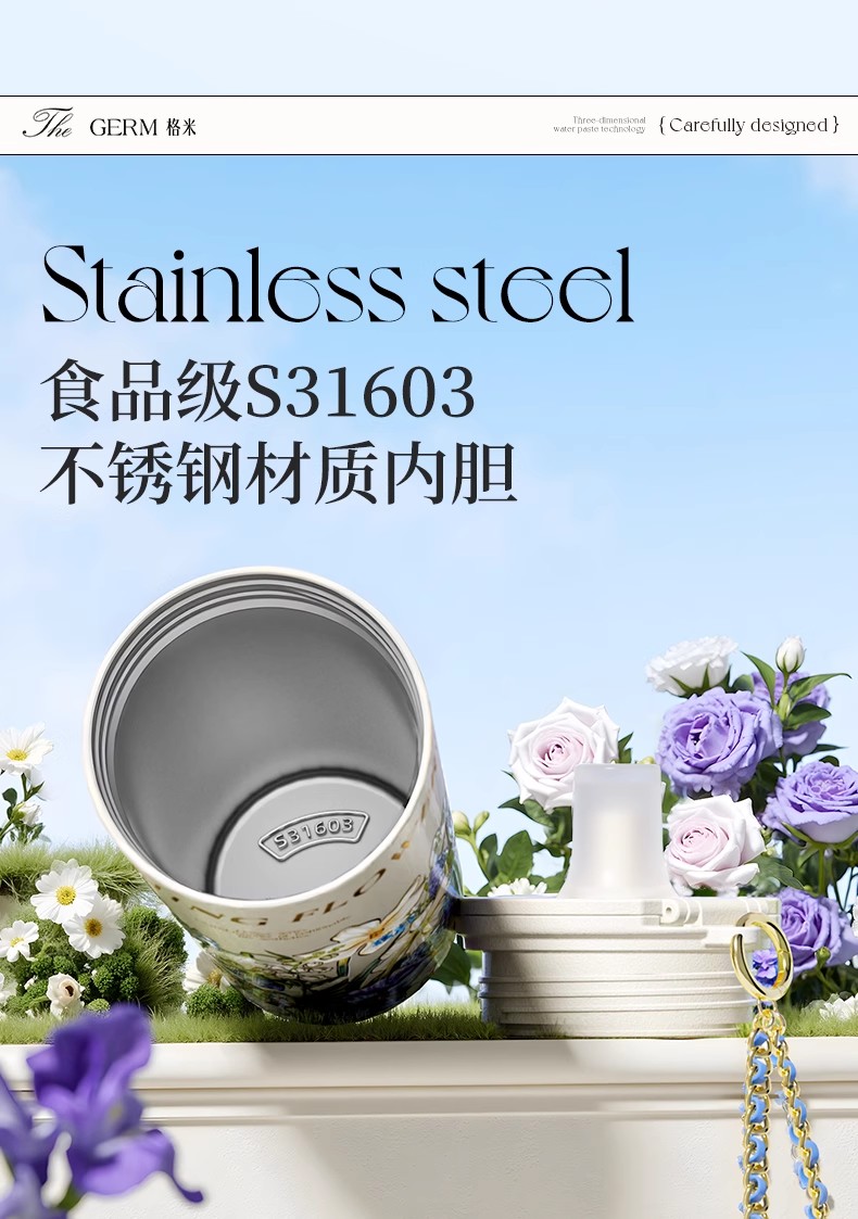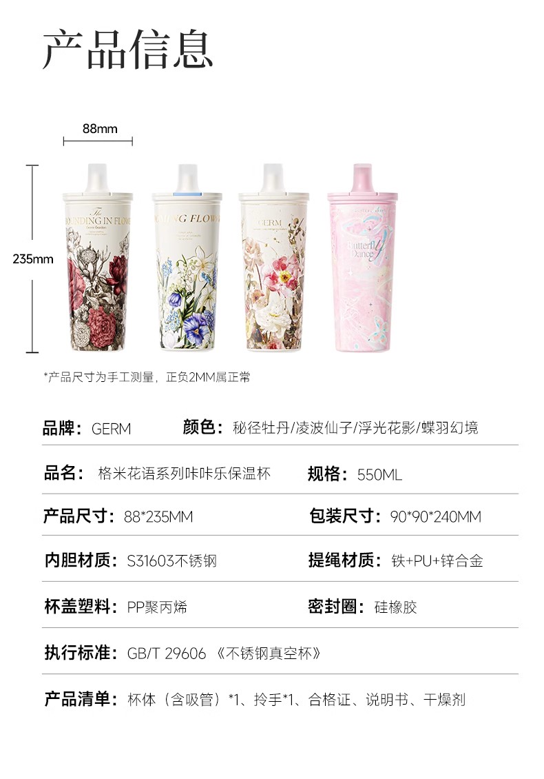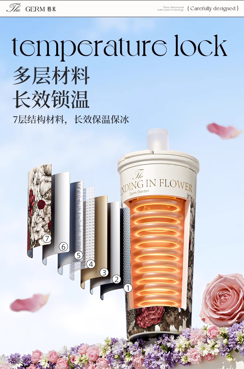 GERM格米 赛本源联名款咔咔乐保温杯550ml (秘径玫瑰)