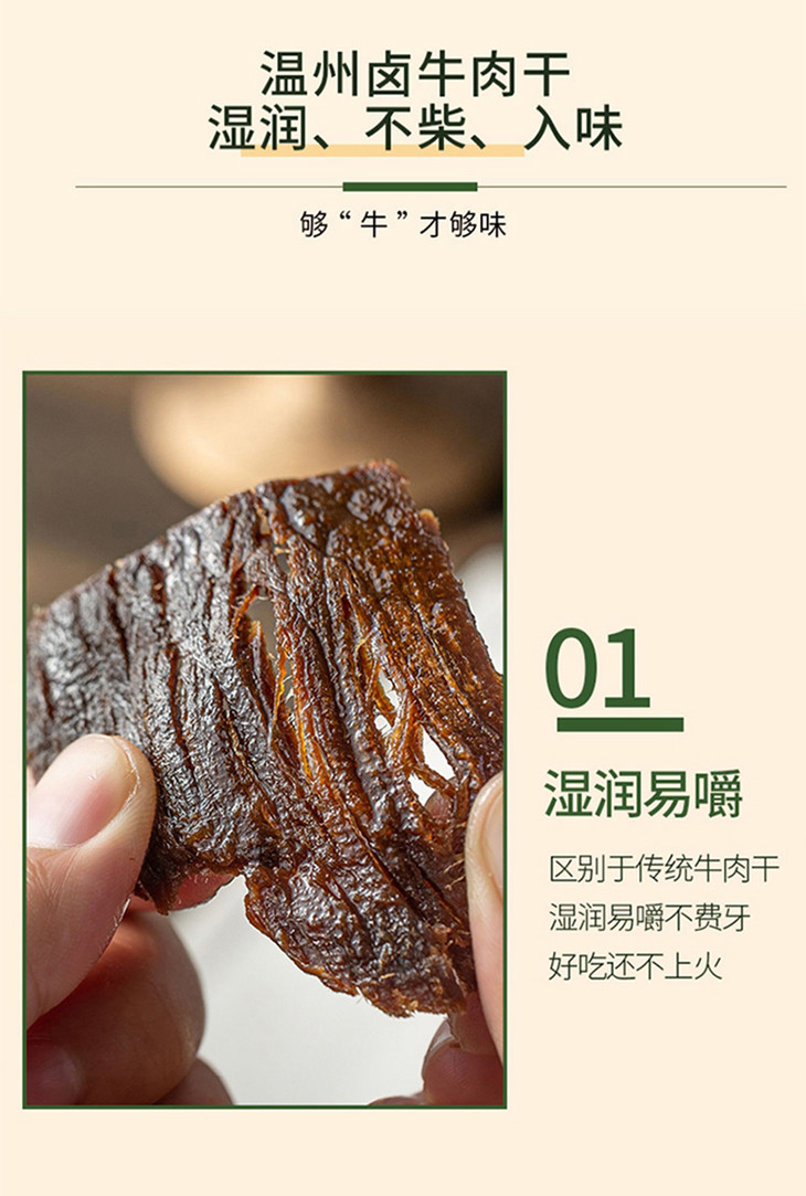 【肉食精选】幸福口袋温州卤牛肉干 传承古法 采用秘制老汤文火慢卤,慢熬入味后,在辅以烘烤 先卤后烤 好吃不上火 牛肉肉脯醇香入味 越嚼越香