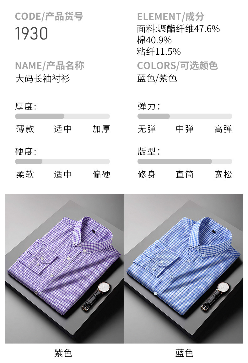 【超大码】【DM】大依优型大码男士长袖衬衫350斤新款格子衬衫翻领加肥加大号宽松衬衣格子衬衫商务休闲