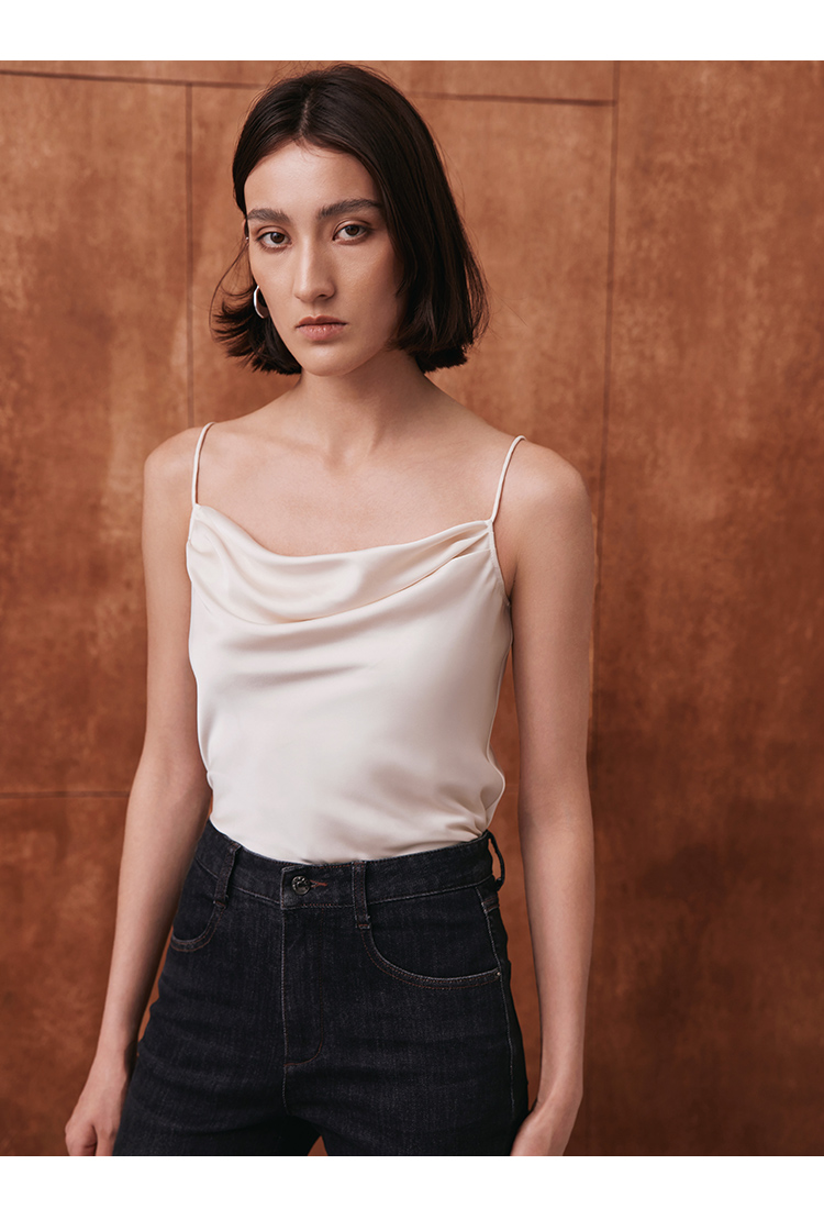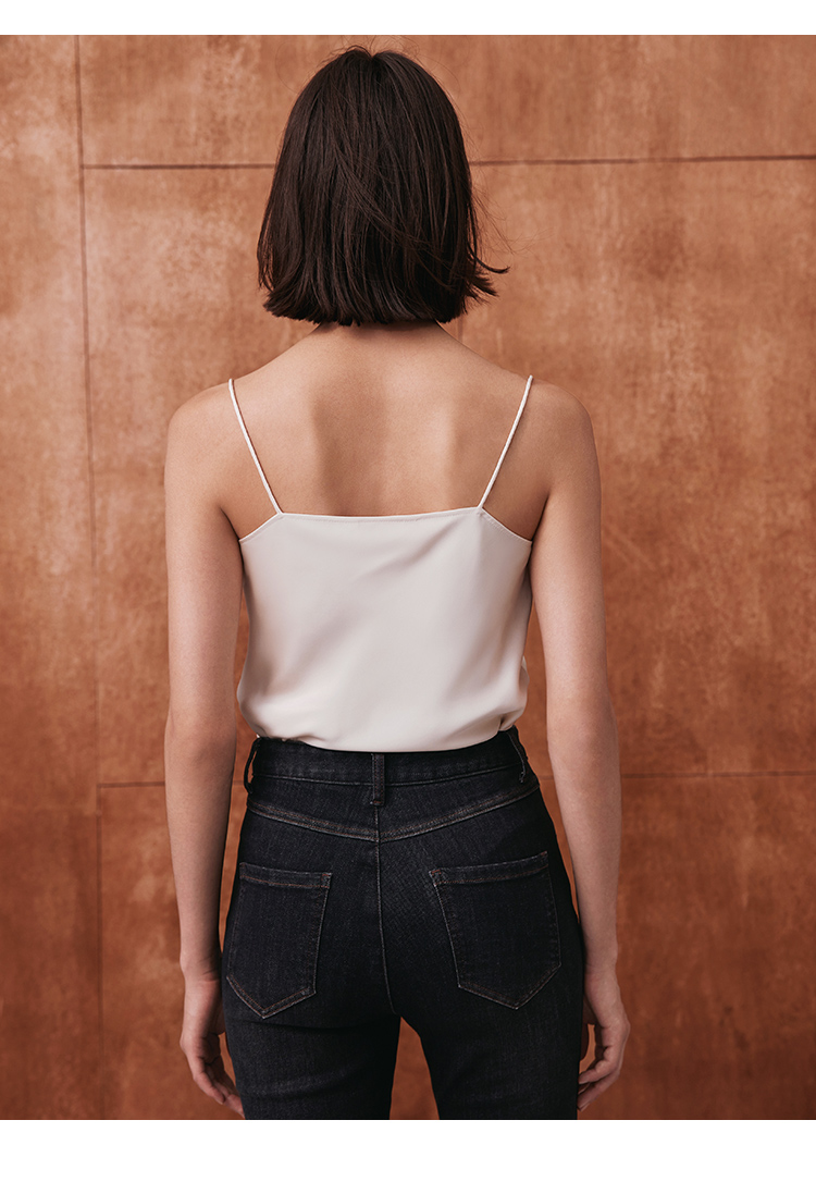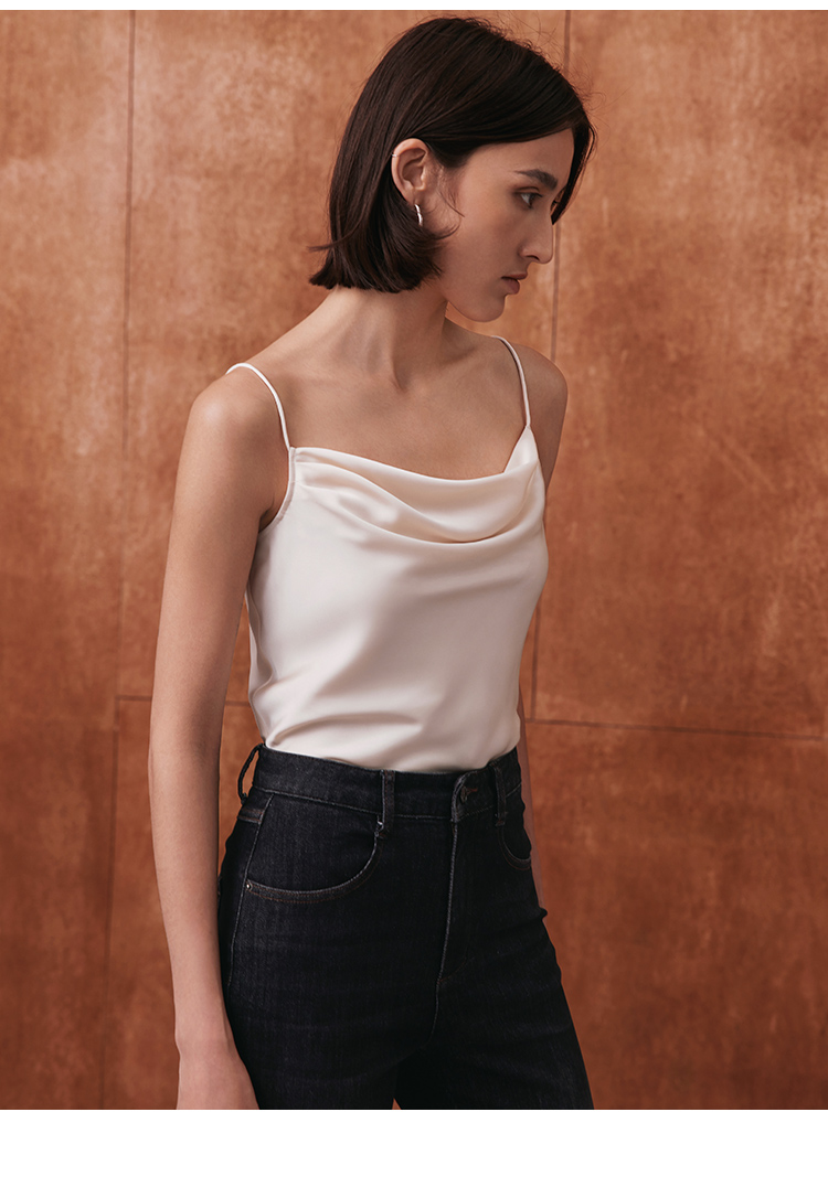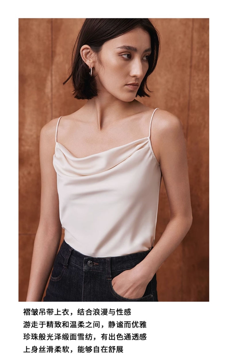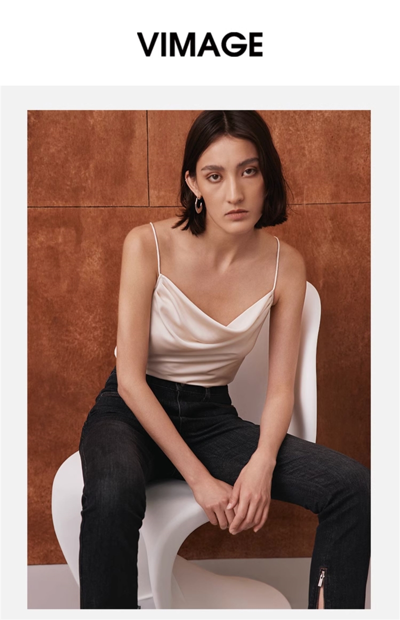 VIMAGE纬漫纪基础显瘦百搭缎面荡领遮副乳细吊带小上衣秋季新款V2013601