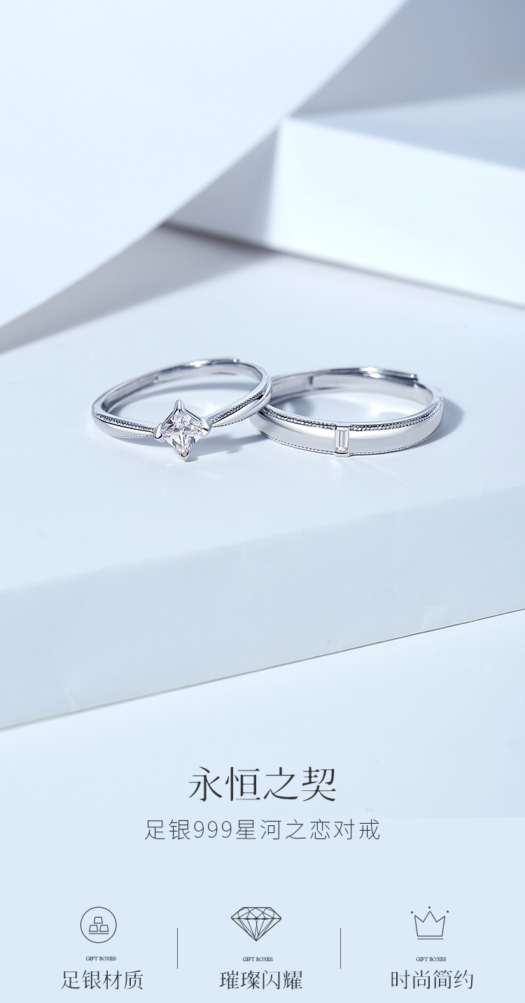 Winy999足银星河之恋对戒情侣款配证书浪漫节日礼物