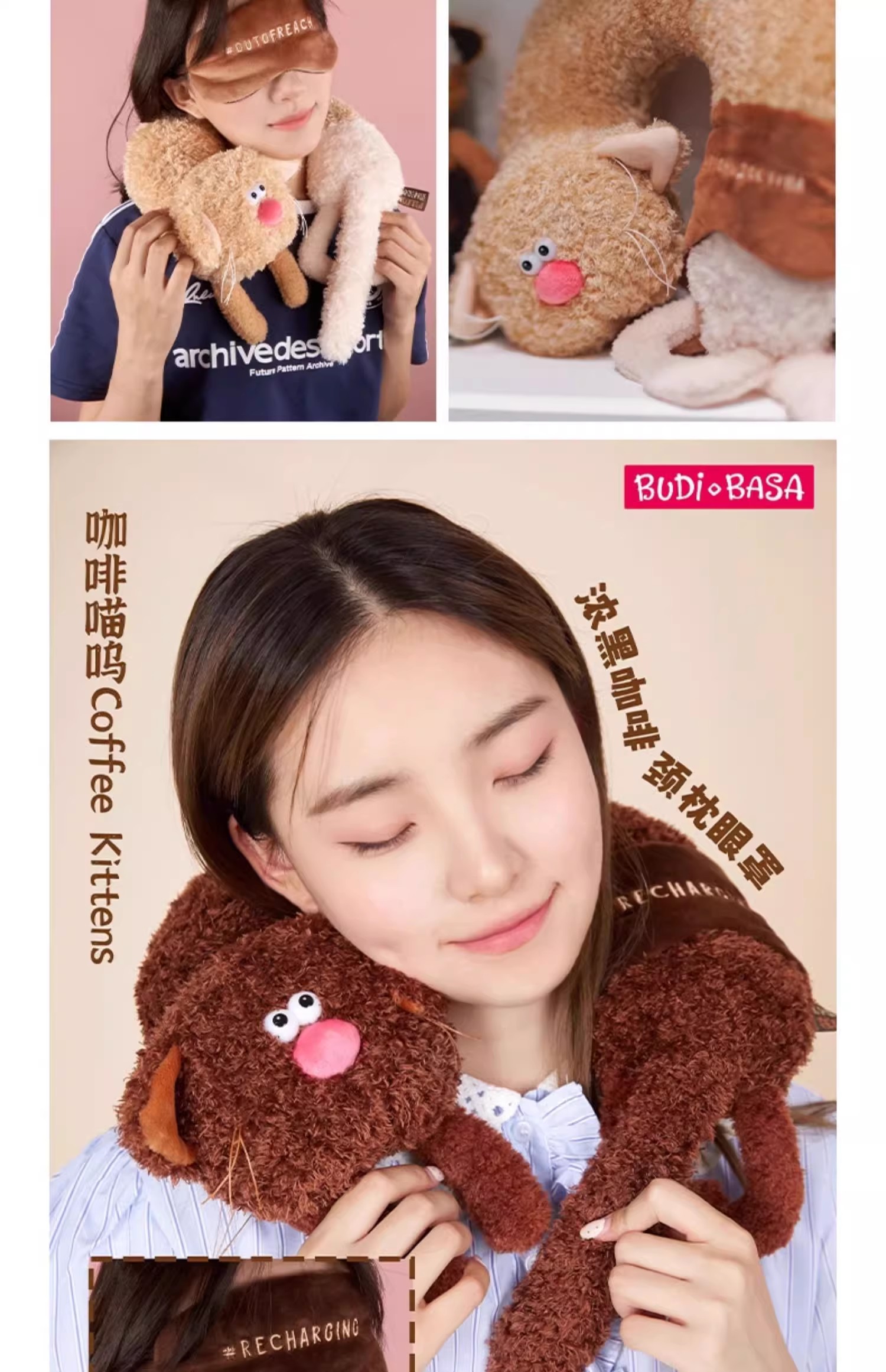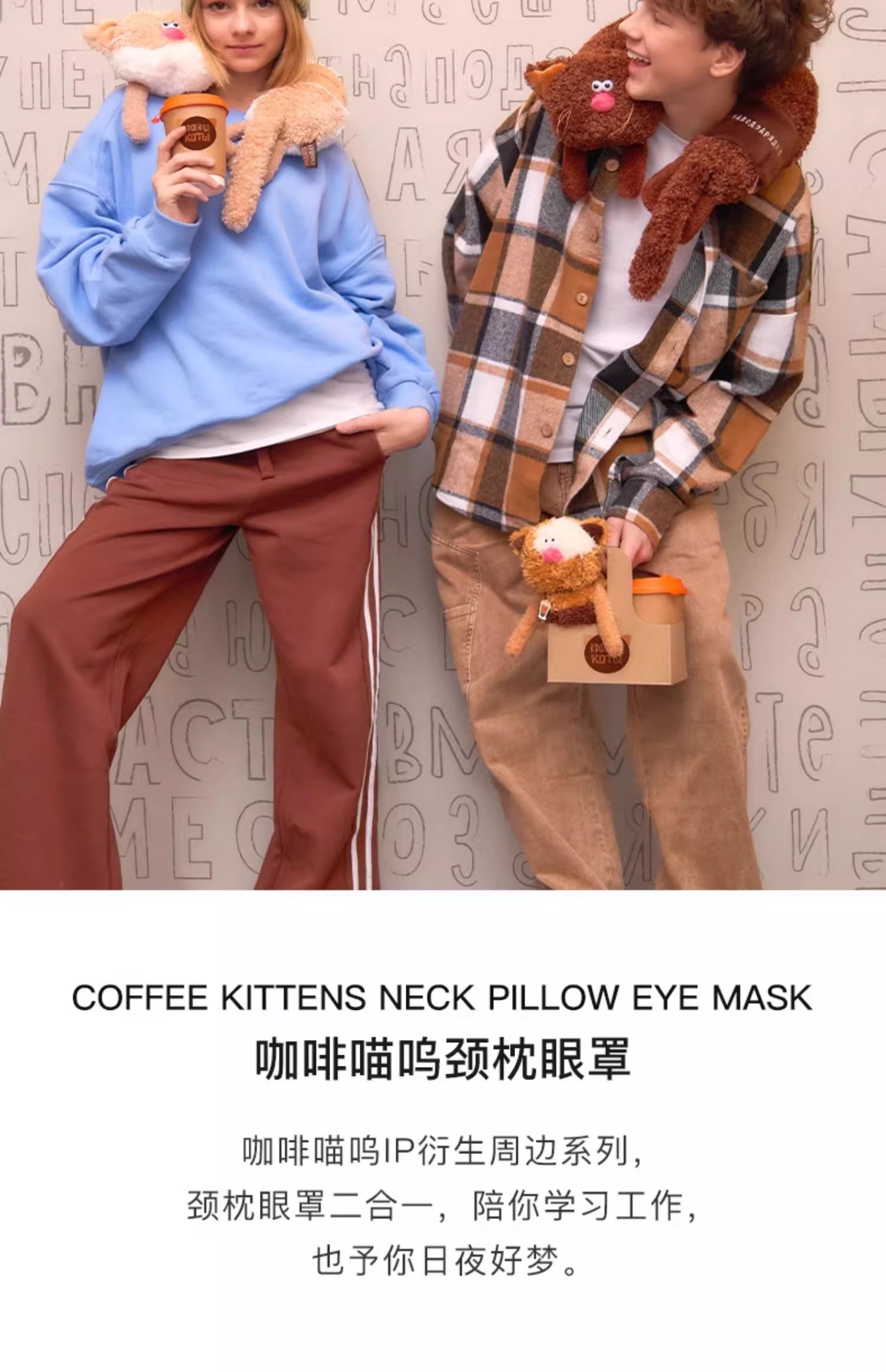 咖啡喵呜 “浓黑咖啡”旅行枕头和睡眠眼罩