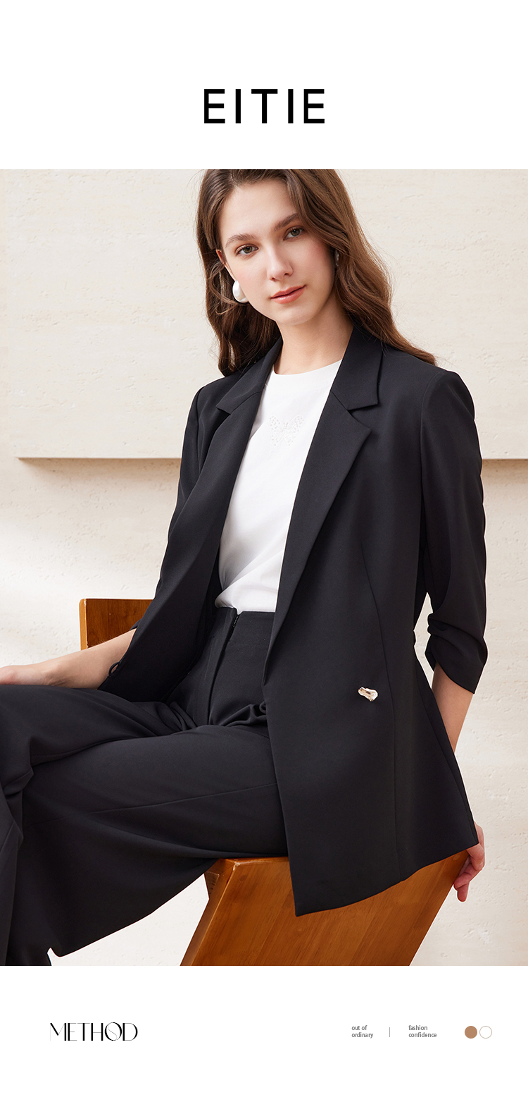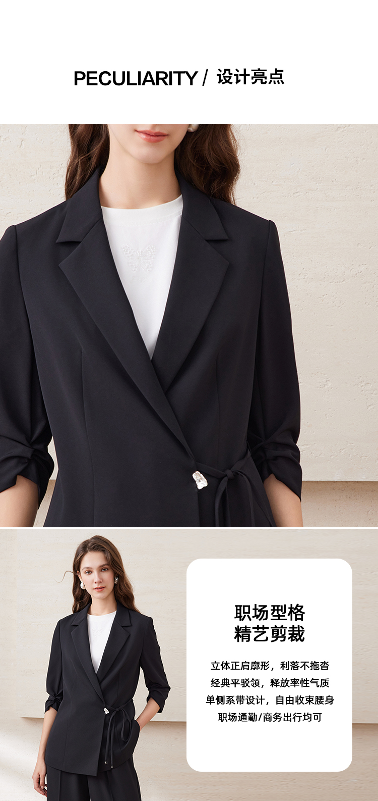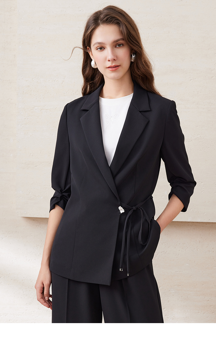 EITIE爱特爱精致通勤ol气质百搭收腰一粒扣西装外套2025夏季新款B2503602