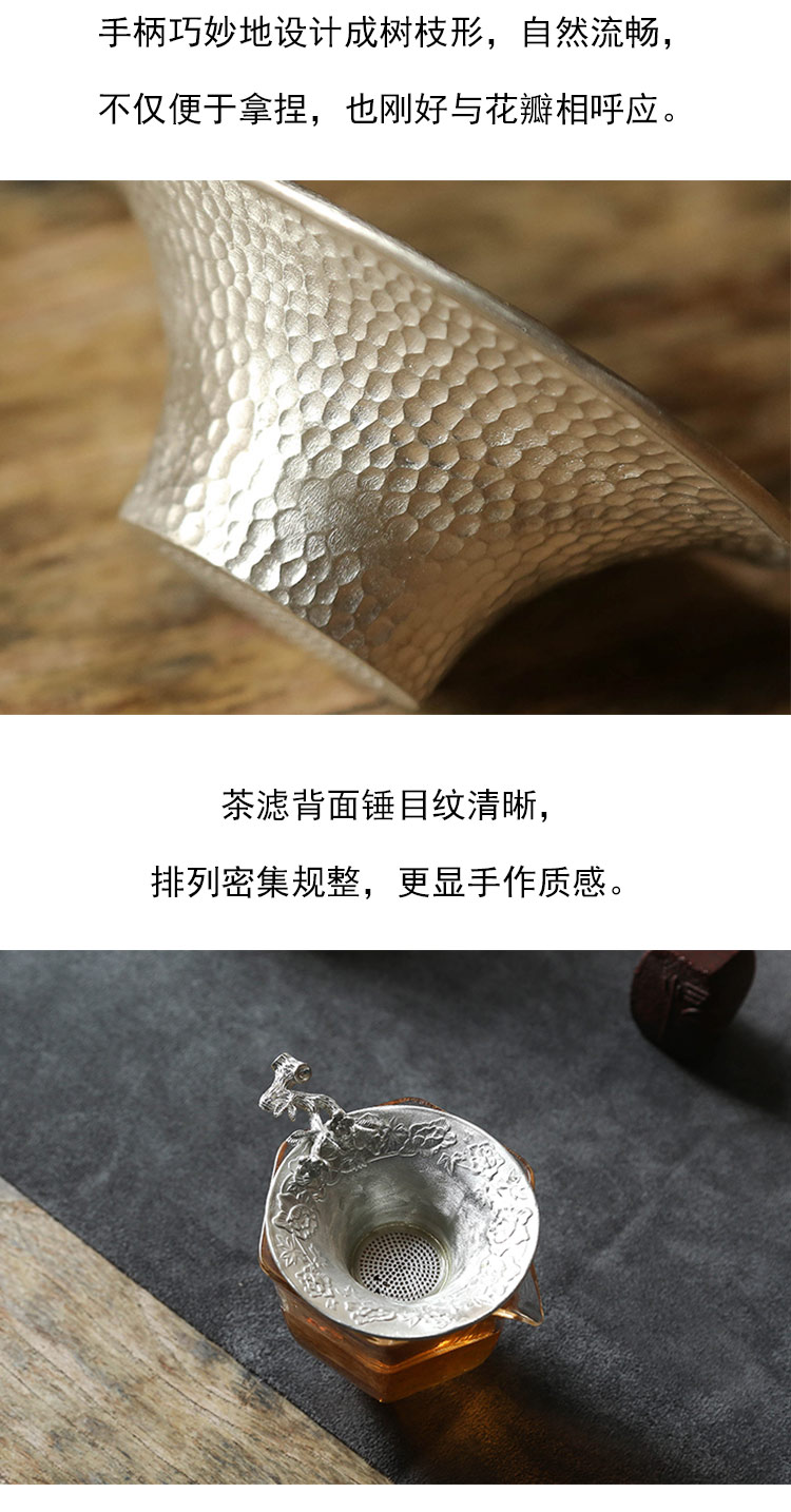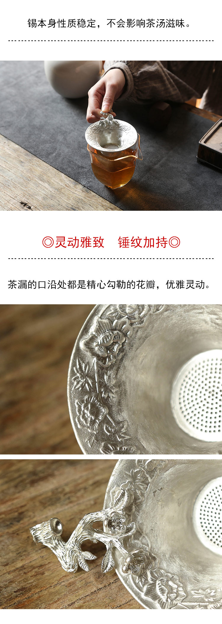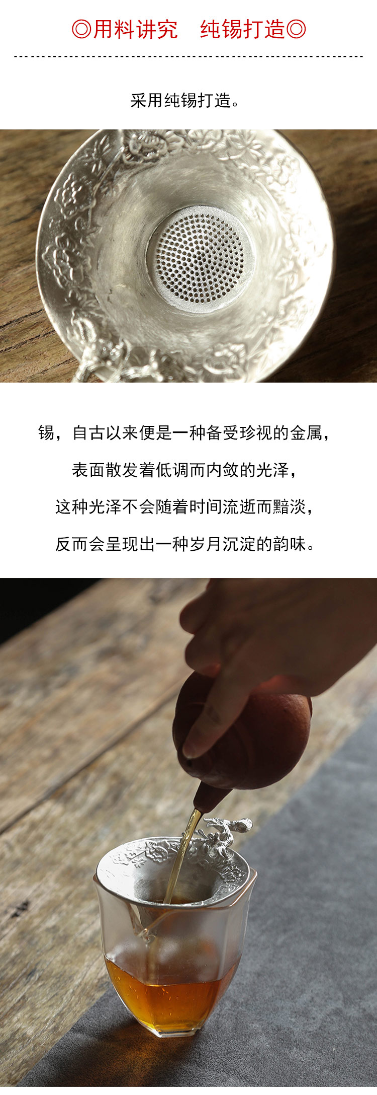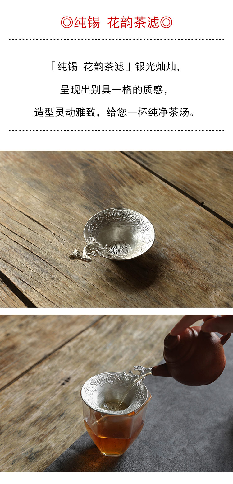 茶香记 纯锡花韵茶滤茶漏茶道配件过滤茶叶实用质感古典雅致小巧灵动