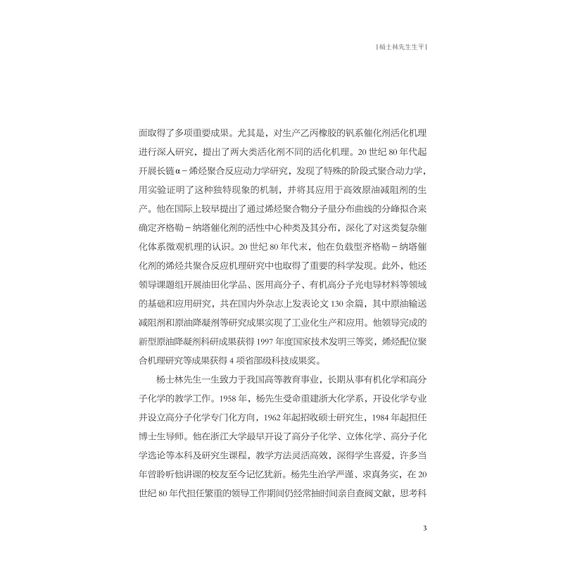 杨士林(1919年10月18日-2016年10月14日),江苏苏州人,有机化学家、高分子化学家和化学教育家,1982年担任浙大校长,他从事化学教育和科研五十余年,为中国培养了大批化学人才。书稿主要包含了杨士林先生生平简介、采访实录、杨先生学生及同事采访实录。一是详细记述了杨士林先生的求学经历、在浙大的工作经历、个人简历和获得成就,二是记录了十篇杨士林先生的学生及同事的采访实录。本书反映了杨士林先生这样的新中国成立后的首批科研工作者的不畏艰难、披荆斩棘的创业精神,孜孜不倦、爱护学生的教育者精神,有较好的出版价值。