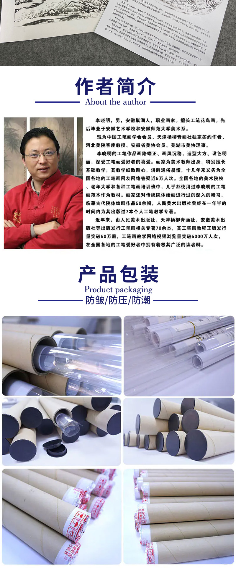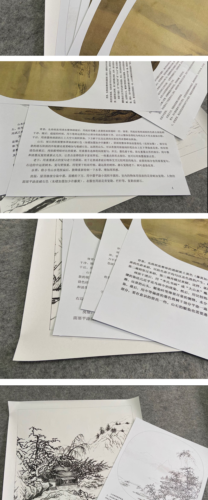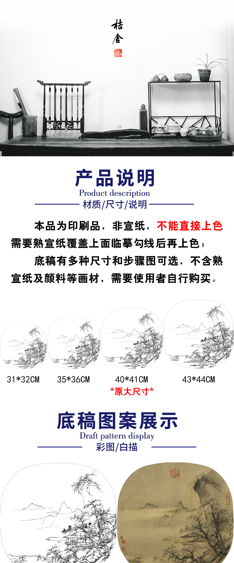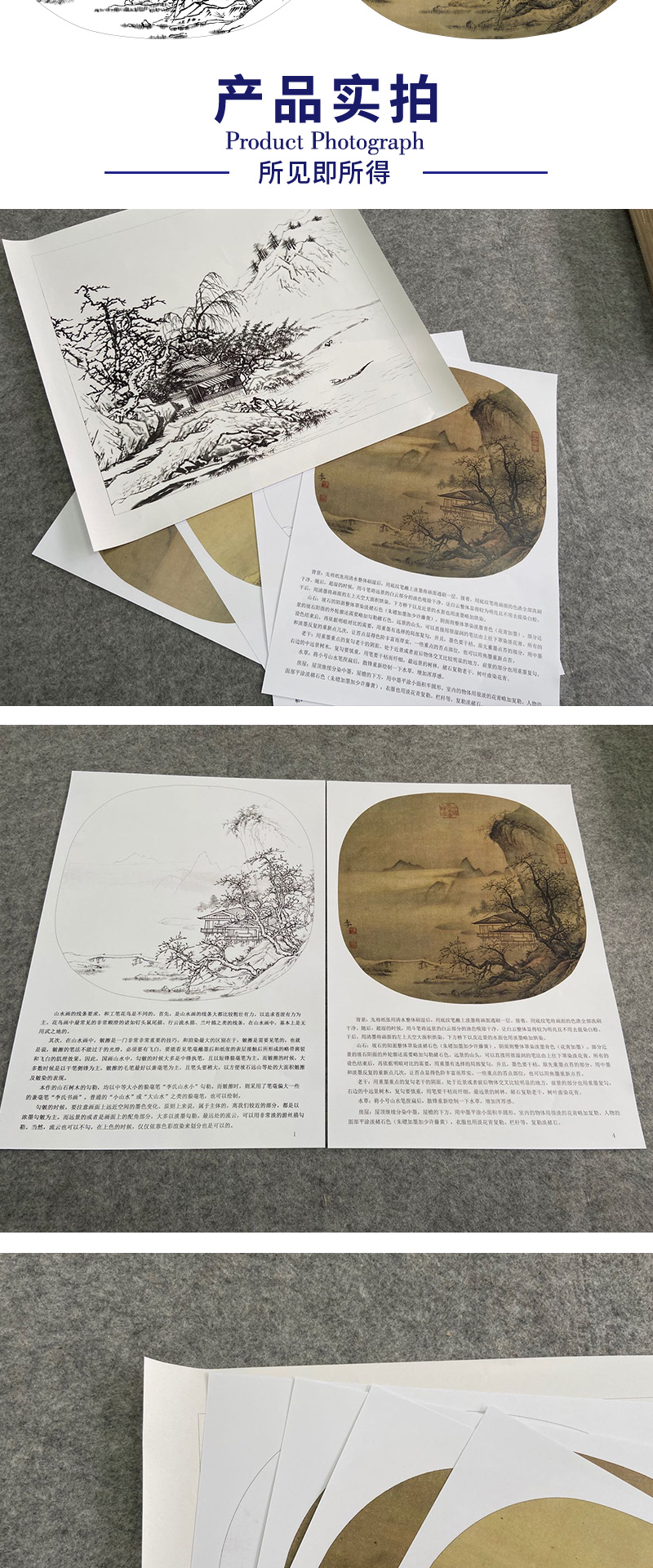 【有步骤、大彩图】李晓明工笔画白描底稿圆形小品《临宋李嵩溪山水阁图》初学者临摹山水线稿KC19