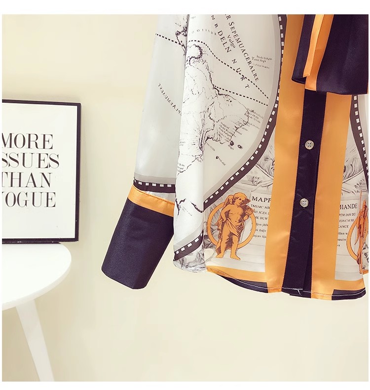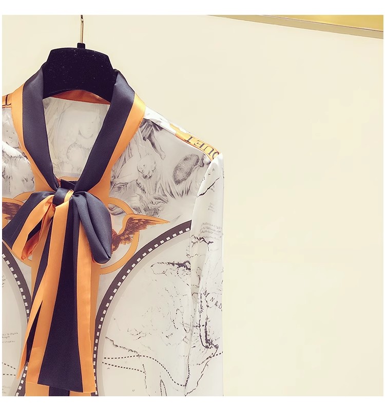「断码清仓」宫廷风轻奢橙色飘带桑蚕丝衬衣 L码 ZFYY155