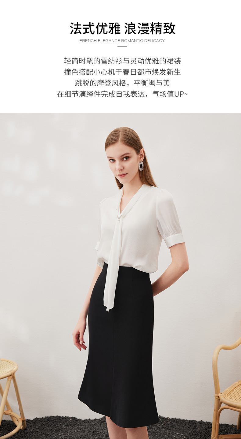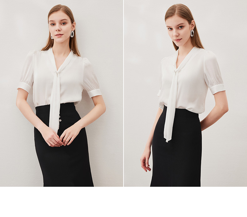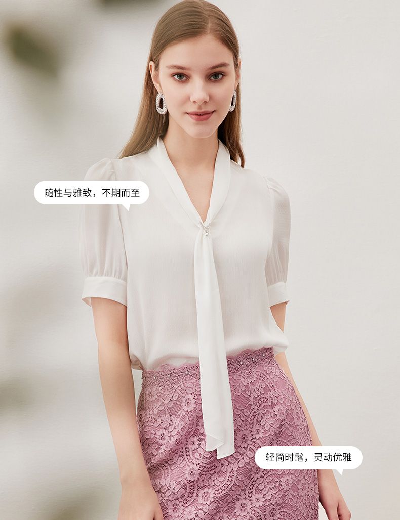 EITIE爱特爱夏季新款通勤职业百搭显瘦飘带小上衣7013709