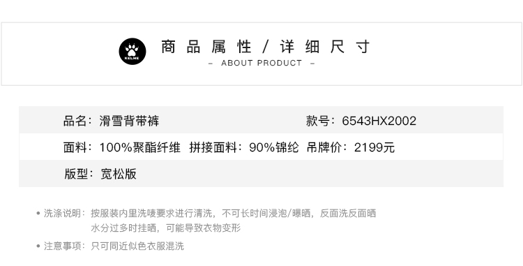 卡尔美生息之地系列女士滑雪背带裤6543HX2002