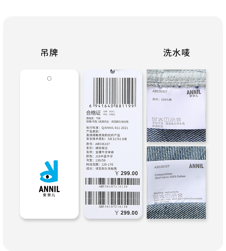 【实体店同款】男童全腰牛仔单裤秋季新款安奈儿童装AB536107