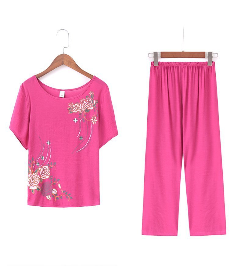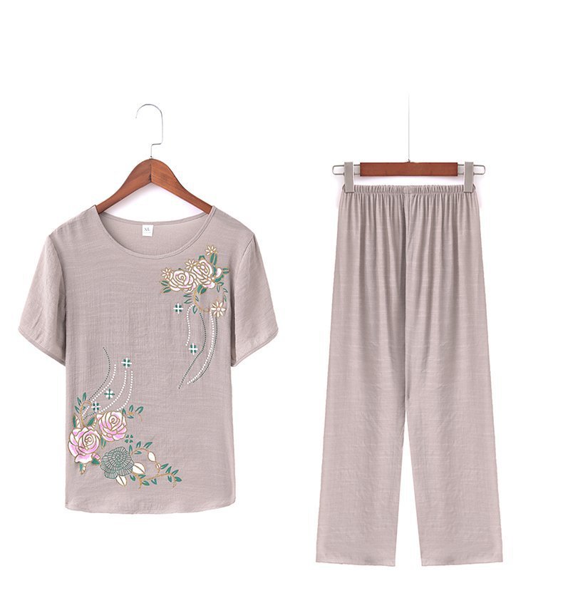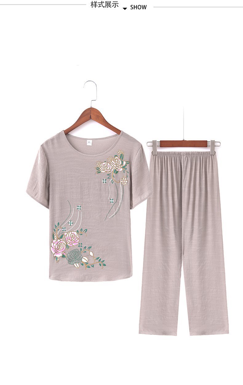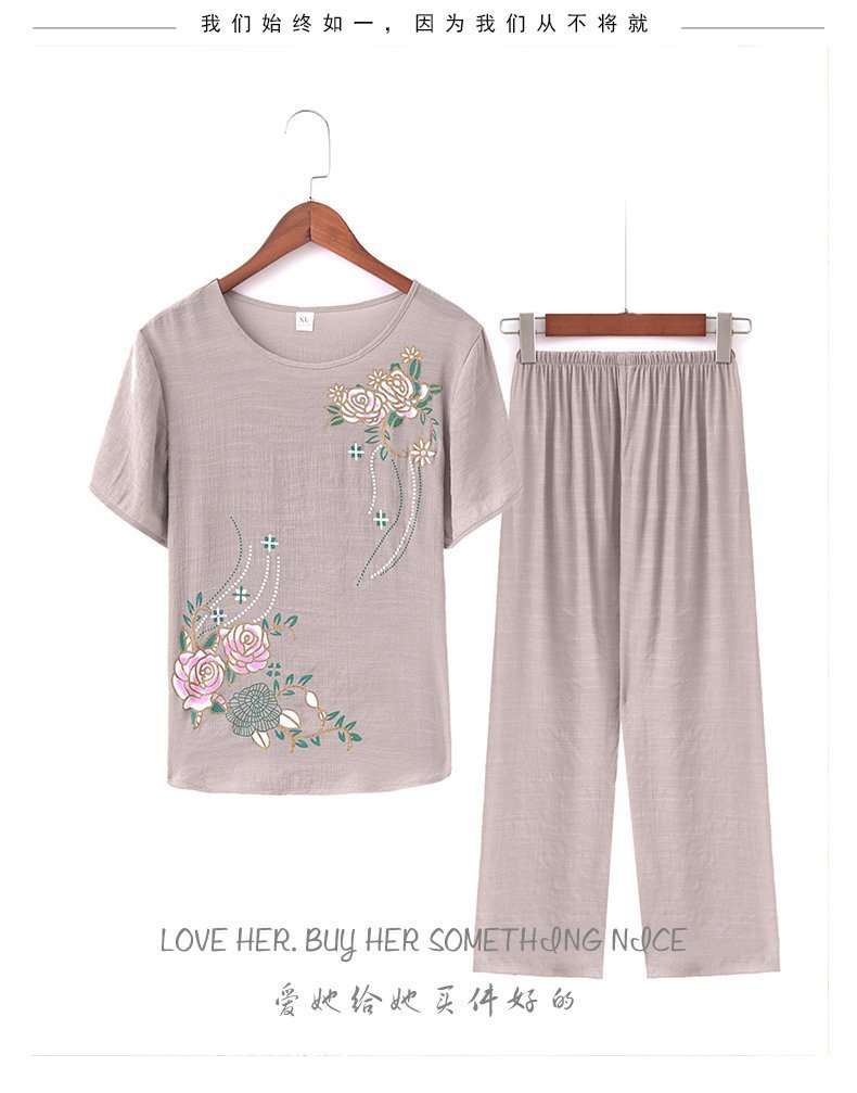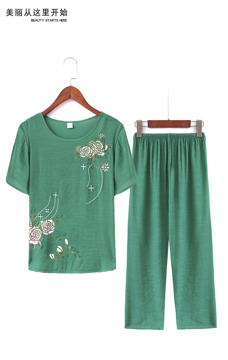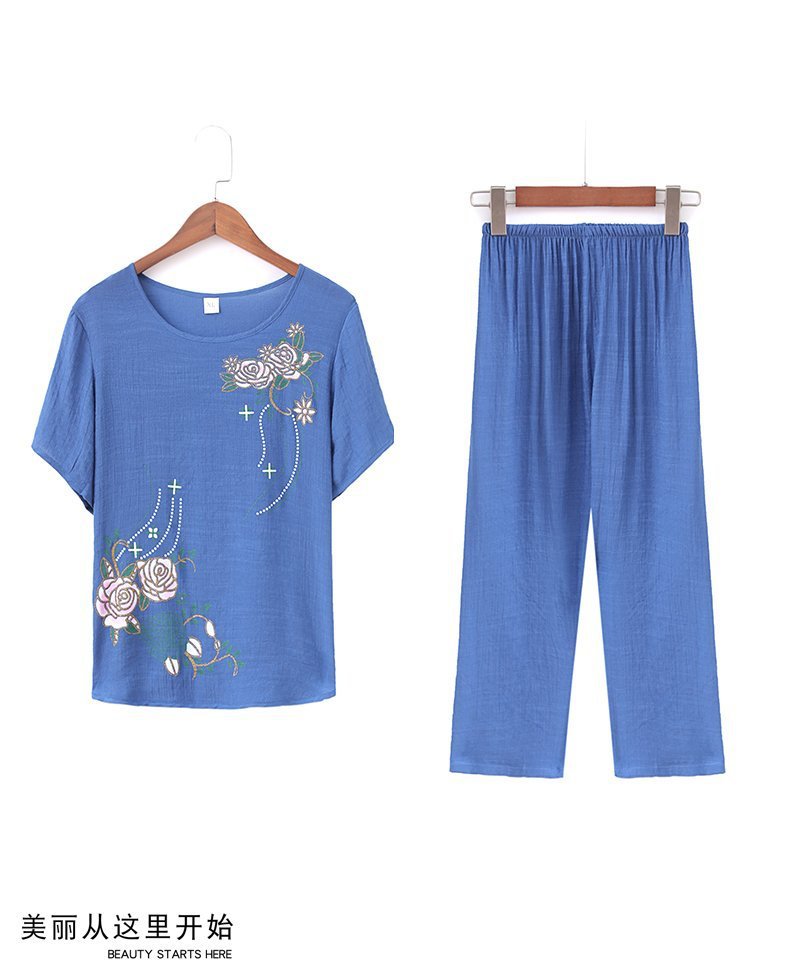 MQ-3427-2017夏季新款宽松凉爽短袖上衣七分裤棉麻两件套YY