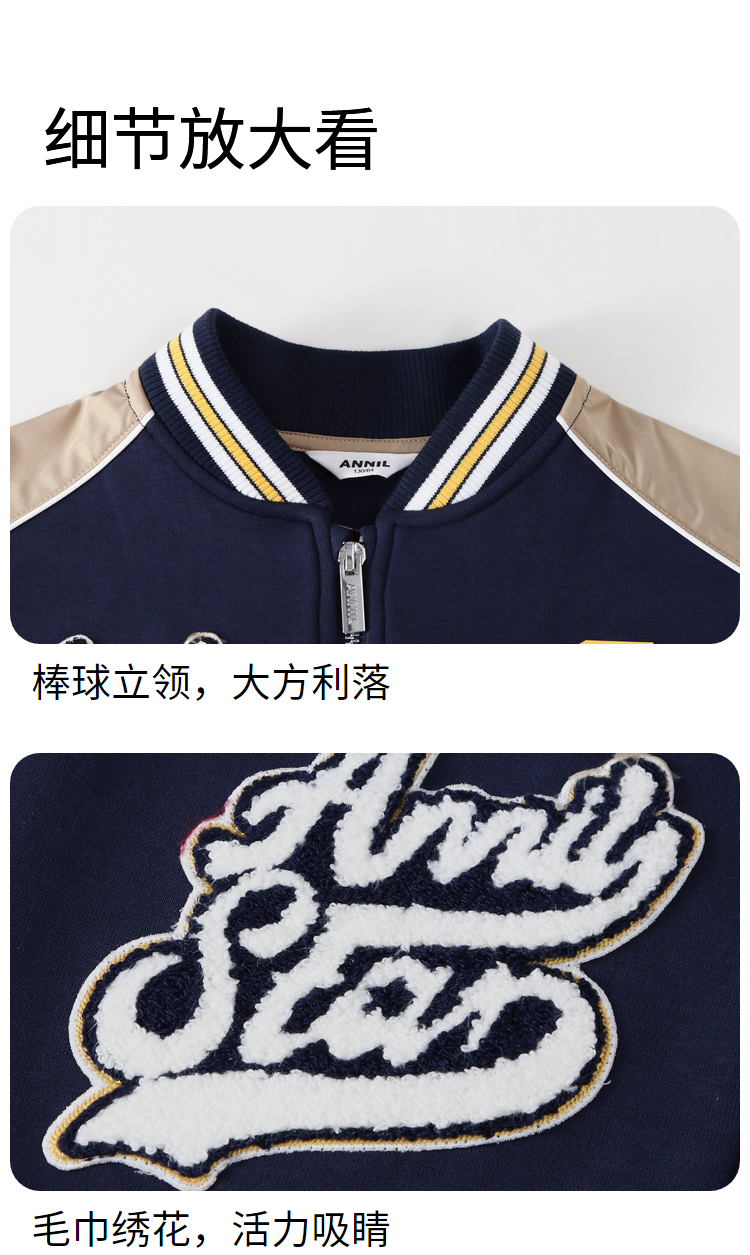 男童运动风棒球保暖外套服安奈儿童装实体店同款AB435523