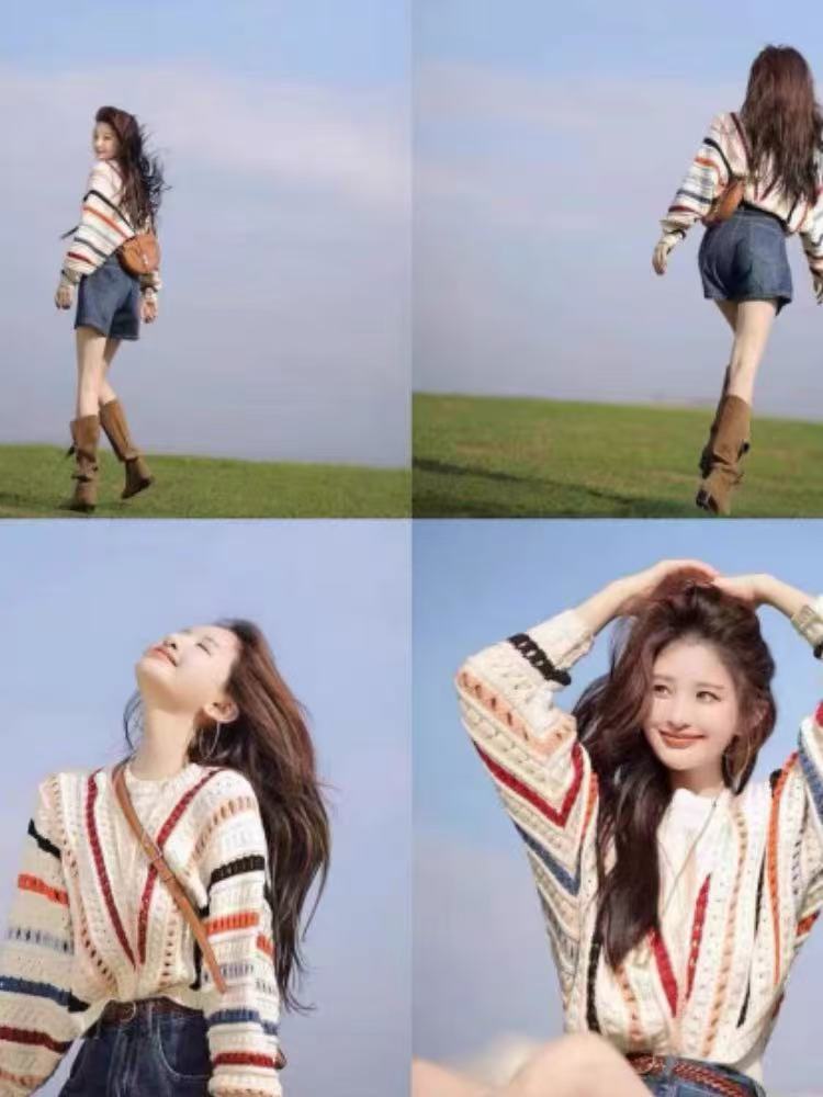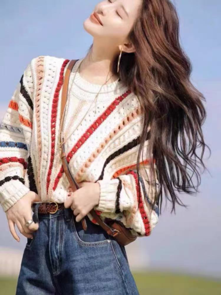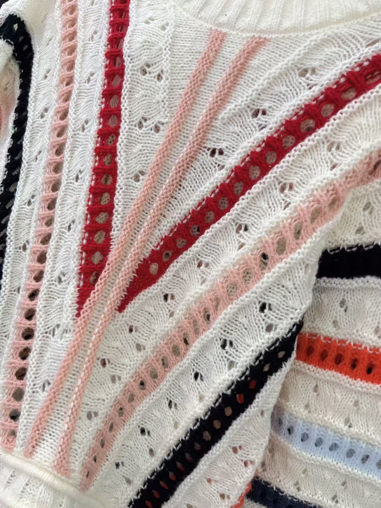 【孤品捡漏】G30镂空彩条拼色白色短款针织毛衫-喜出