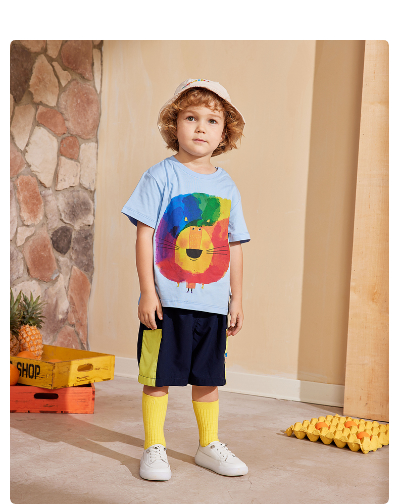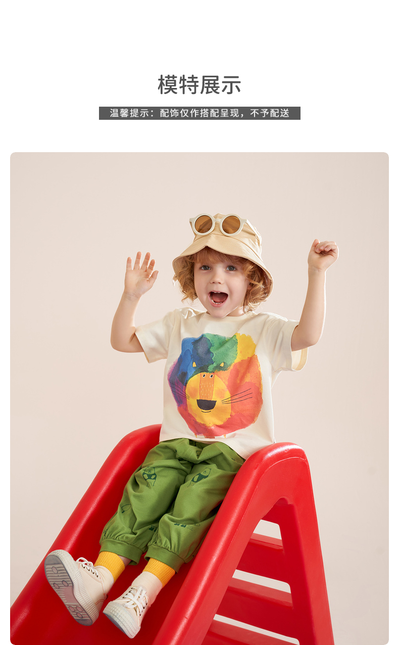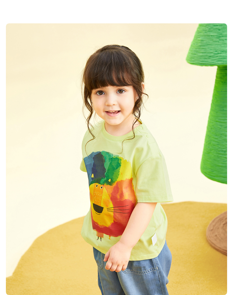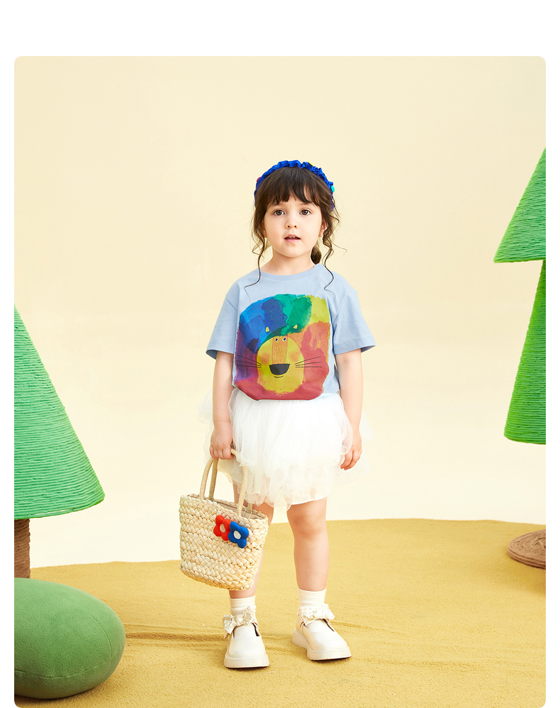 【MQD】【秒1】mini夏装男童女童T恤短袖纯棉宝宝艺术小狮子儿童上衣兄妹