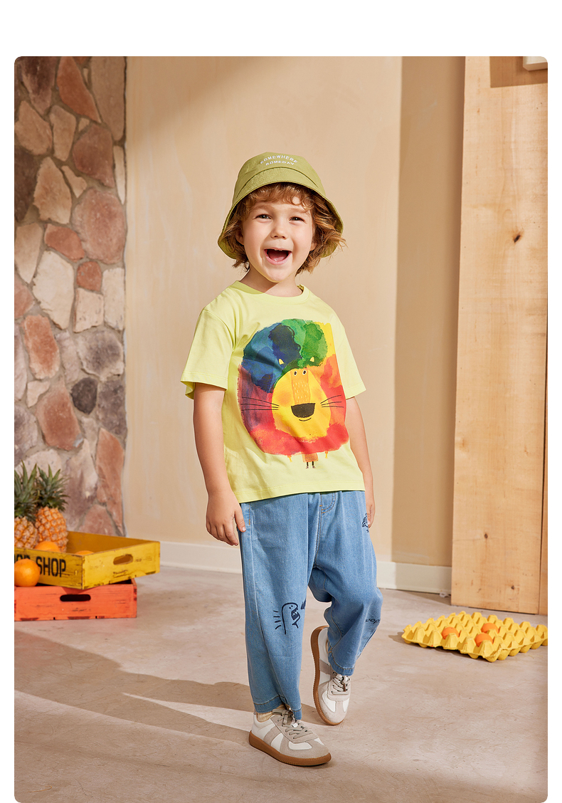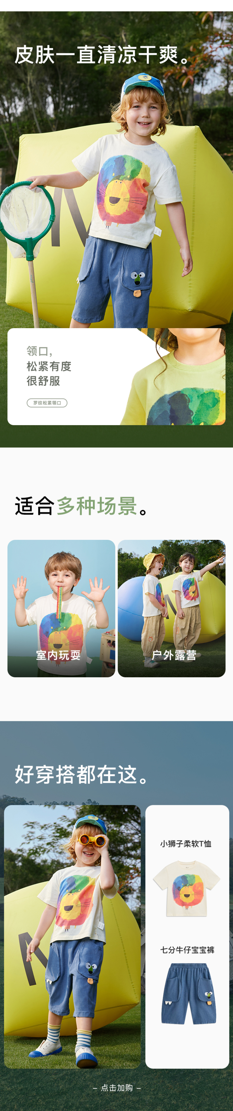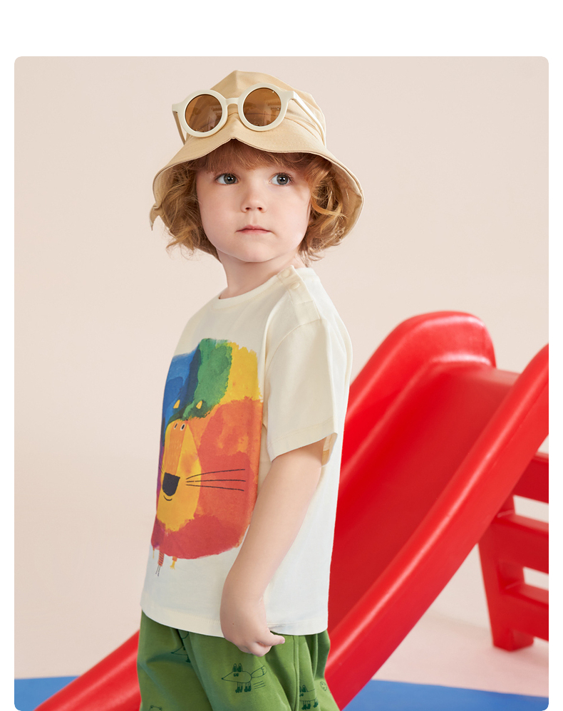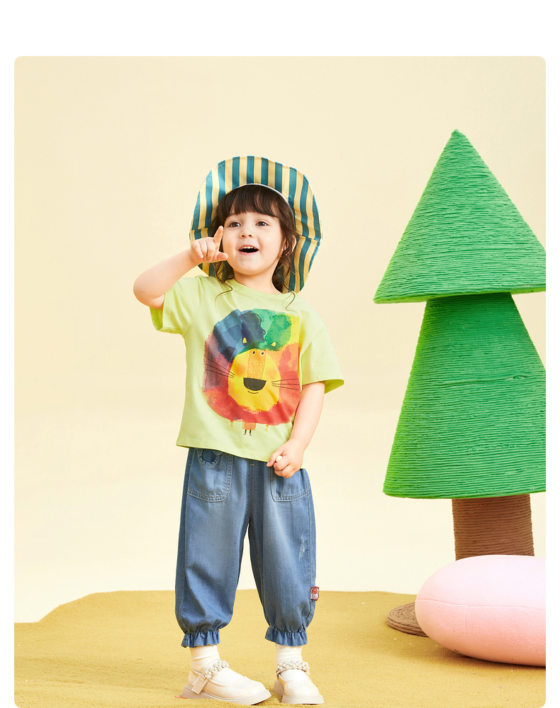 【MQD】【秒1】mini夏装男童女童T恤短袖纯棉宝宝艺术小狮子儿童上衣兄妹