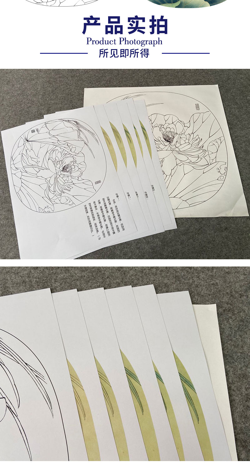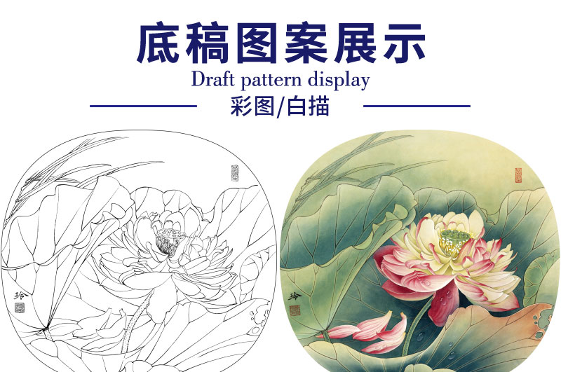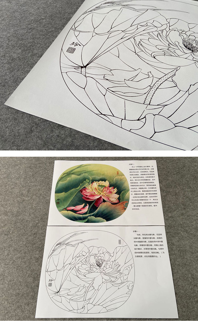 【有步骤、大彩图】郑玲玲工笔画白描底稿小品《清夏荷香》荷花初学者临摹花鸟线稿ZL83