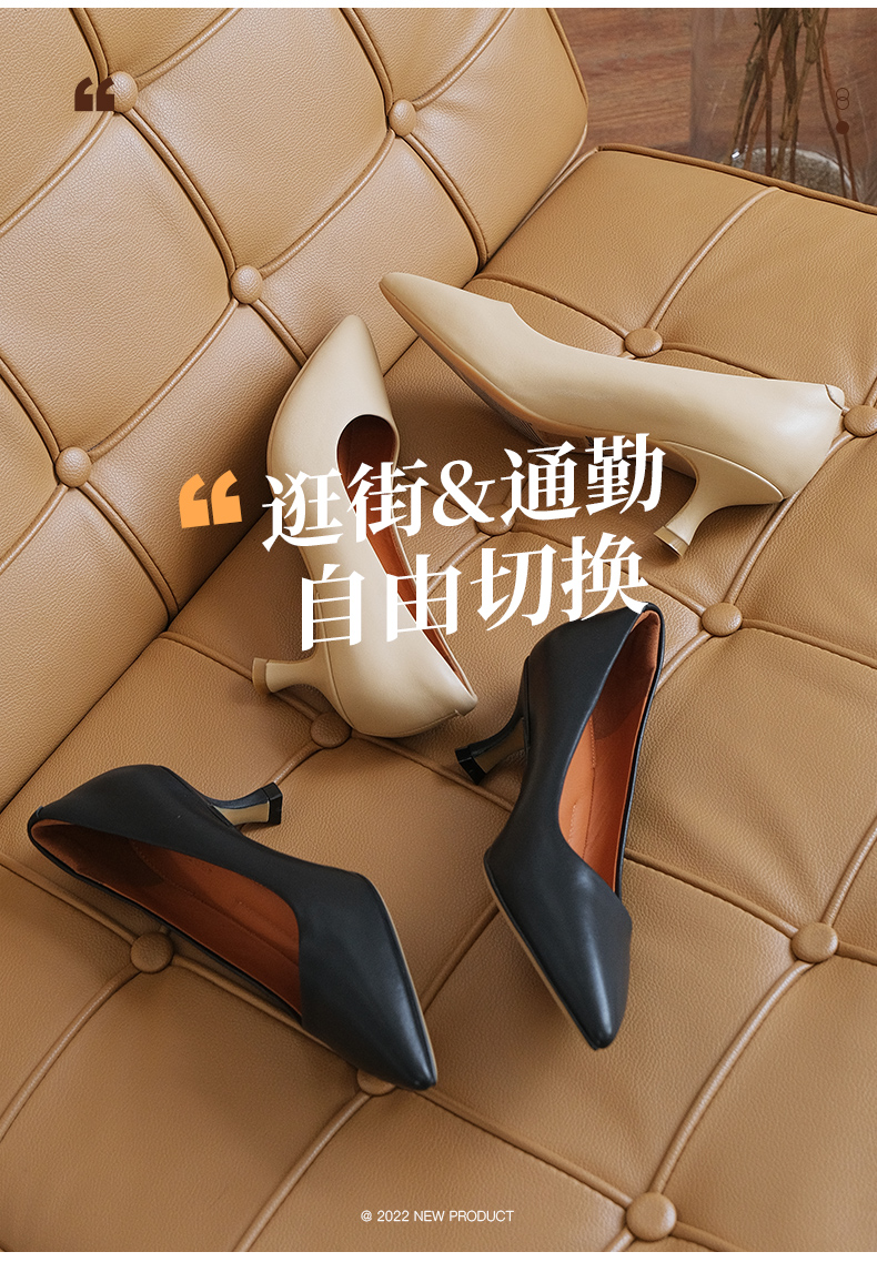 ARCHCONTACT安启美奈尖头粗跟通勤深口中跟单鞋53066