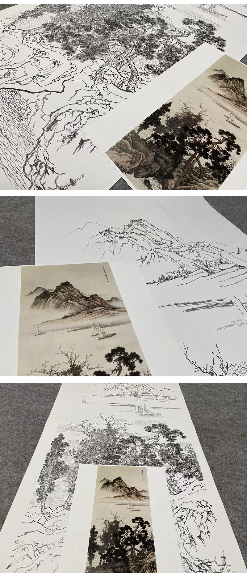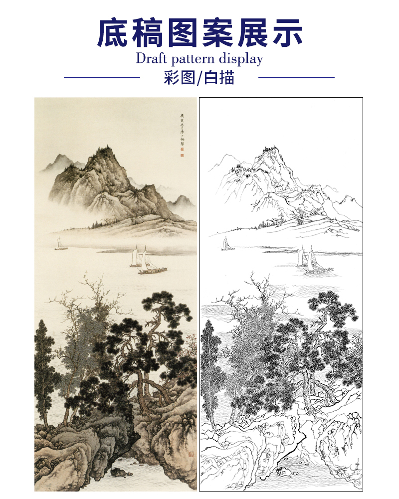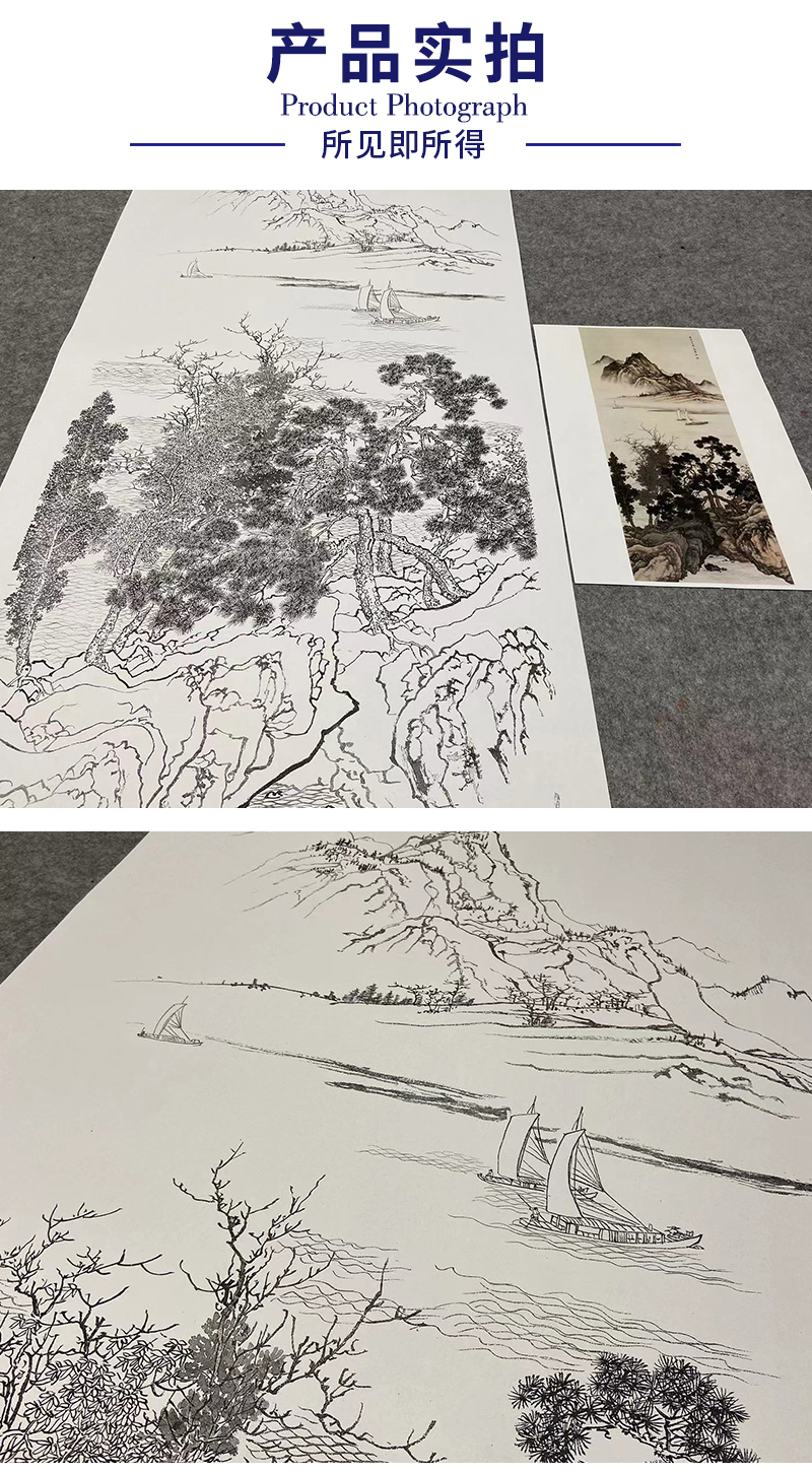 陈少梅竖幅山水白描底稿-《江阔帆影》-多种白描尺寸可选-CR36