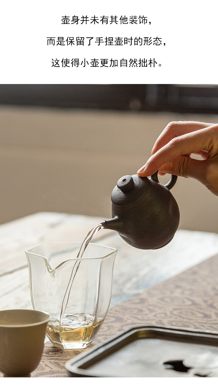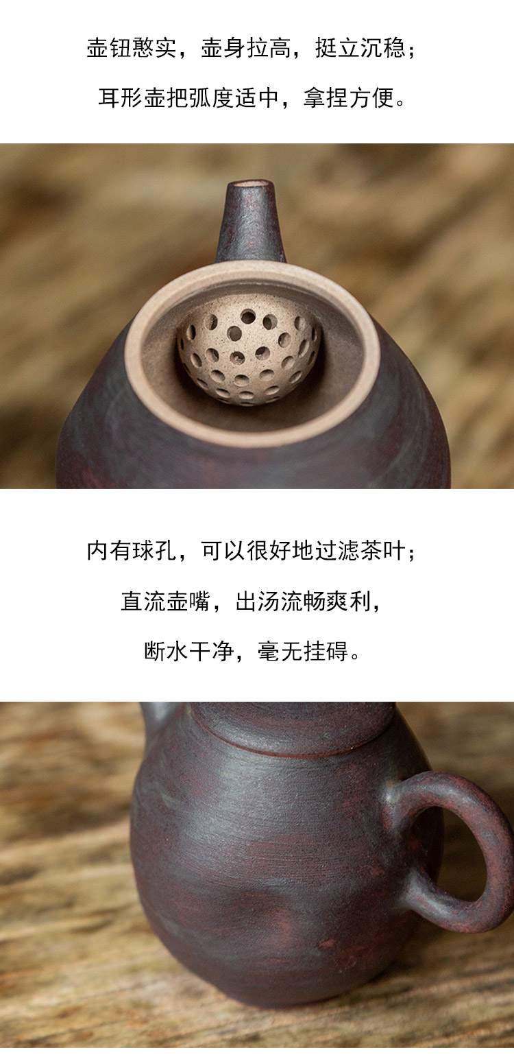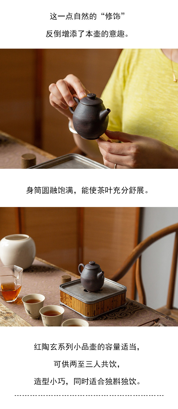 茶香记 景德镇手工红陶玄系列小品壶120ml泡茶壶手工制作拙朴有味