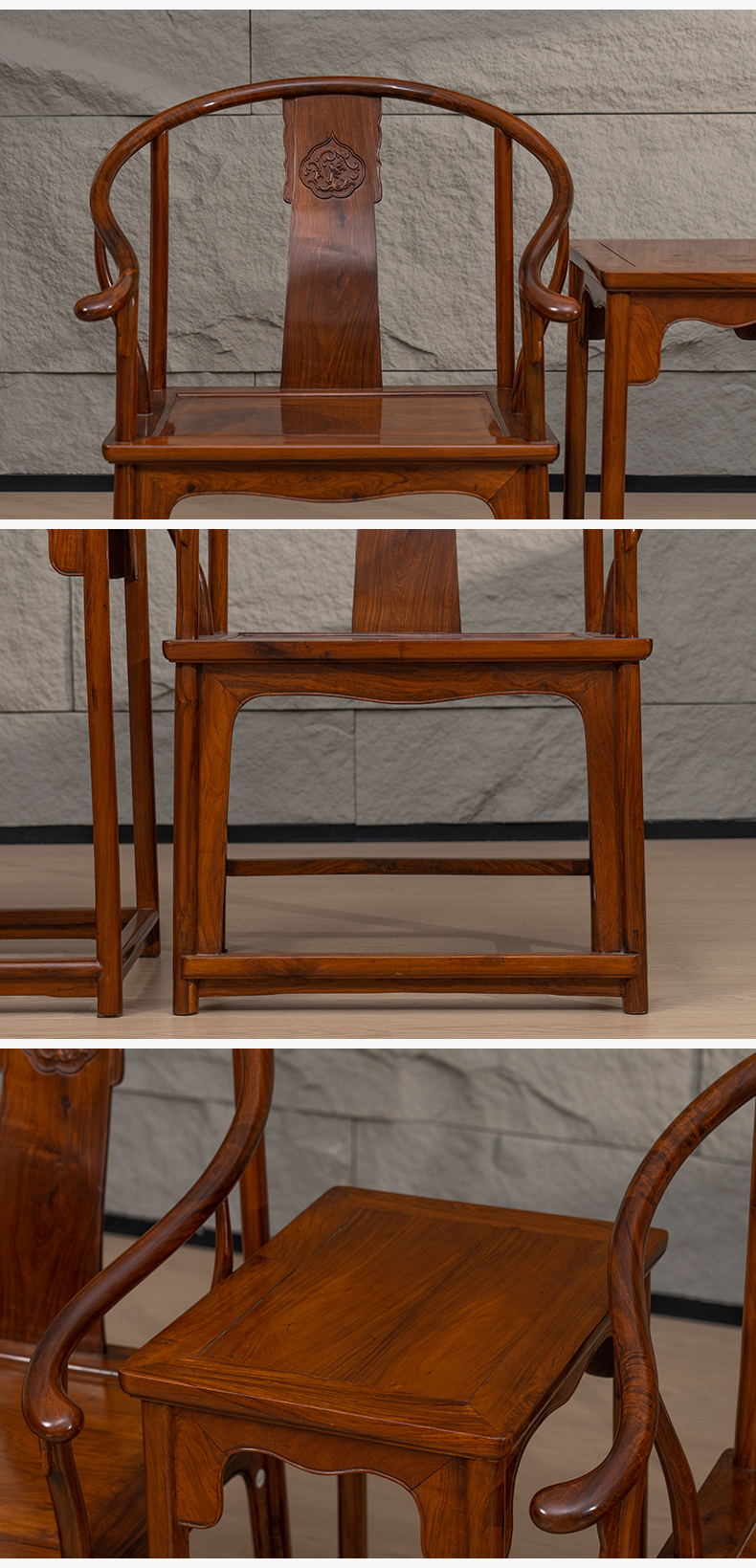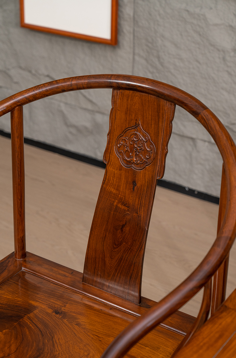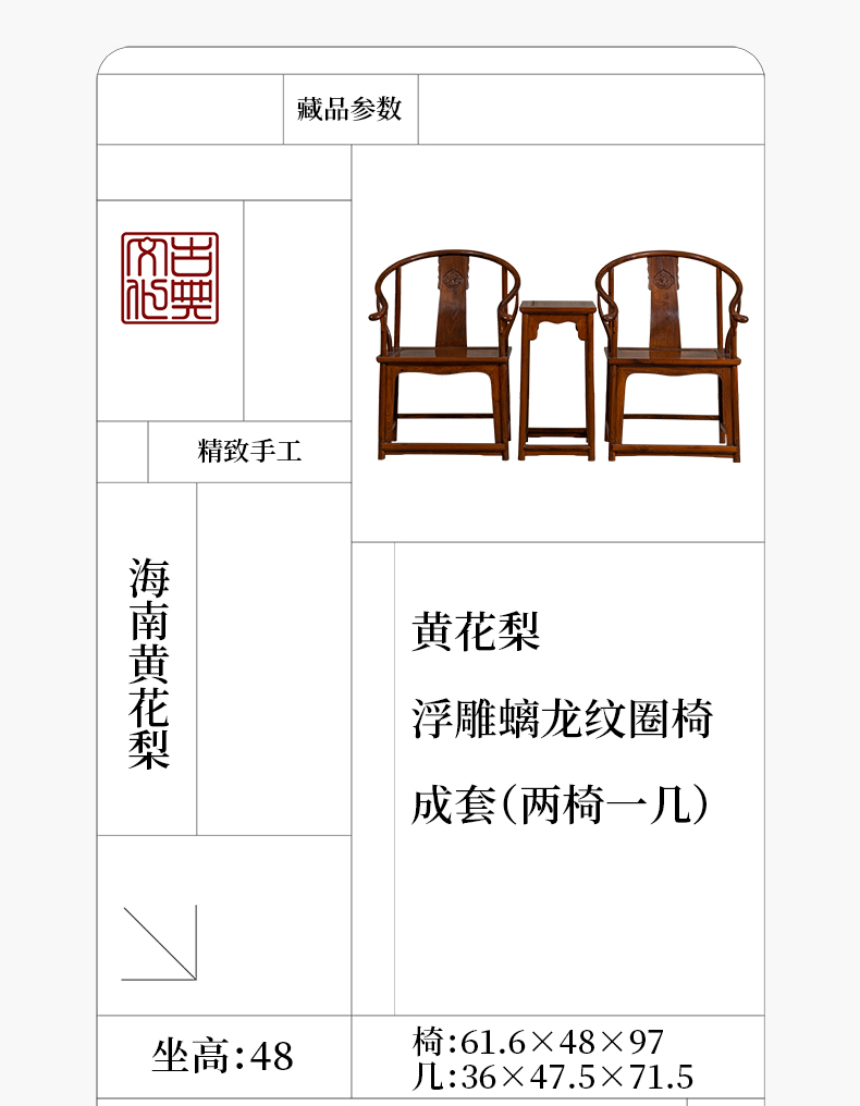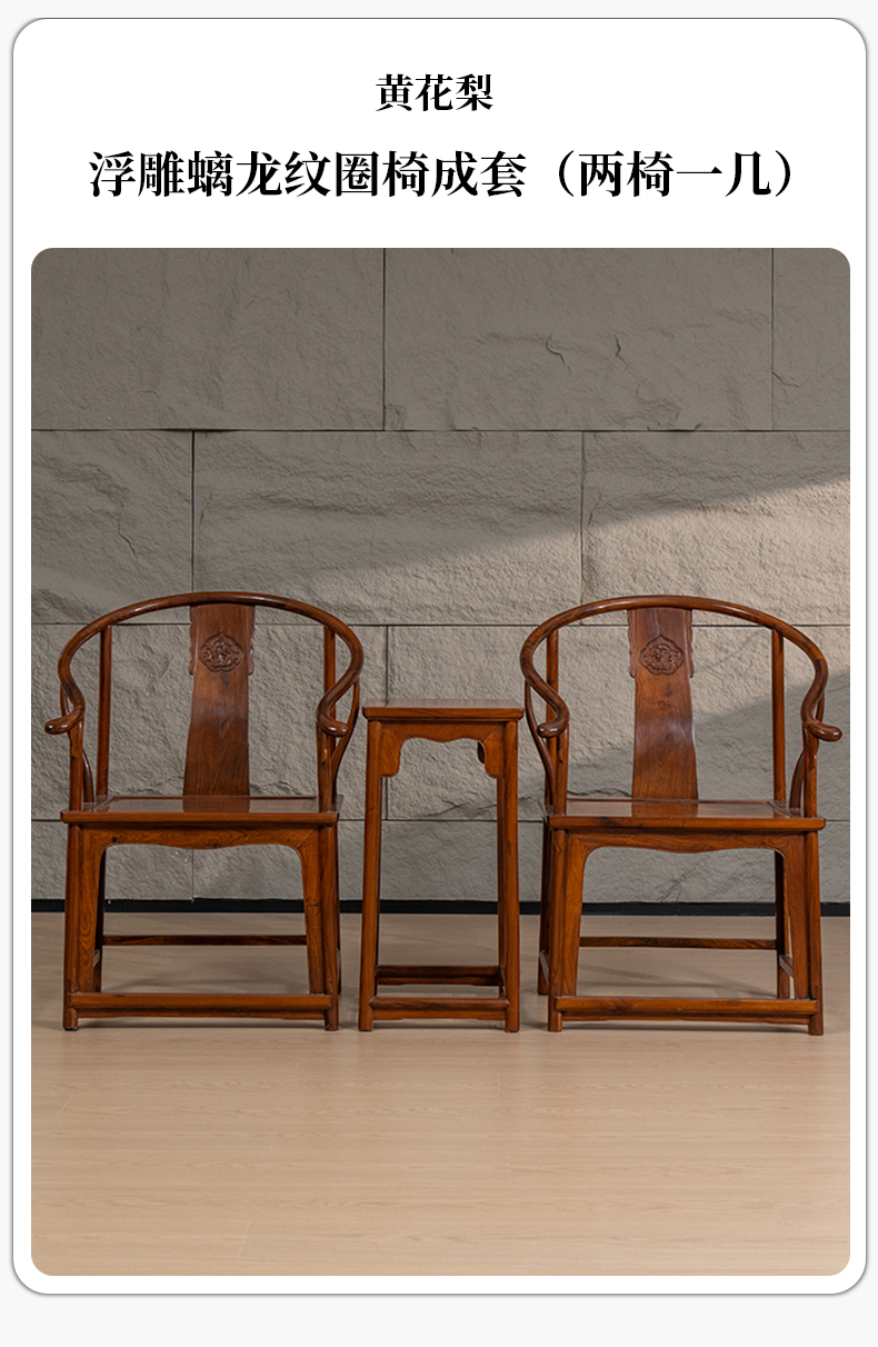 黄花梨浮雕螭龙纹圈椅成套(两椅一几)