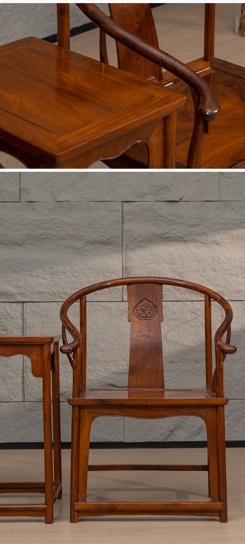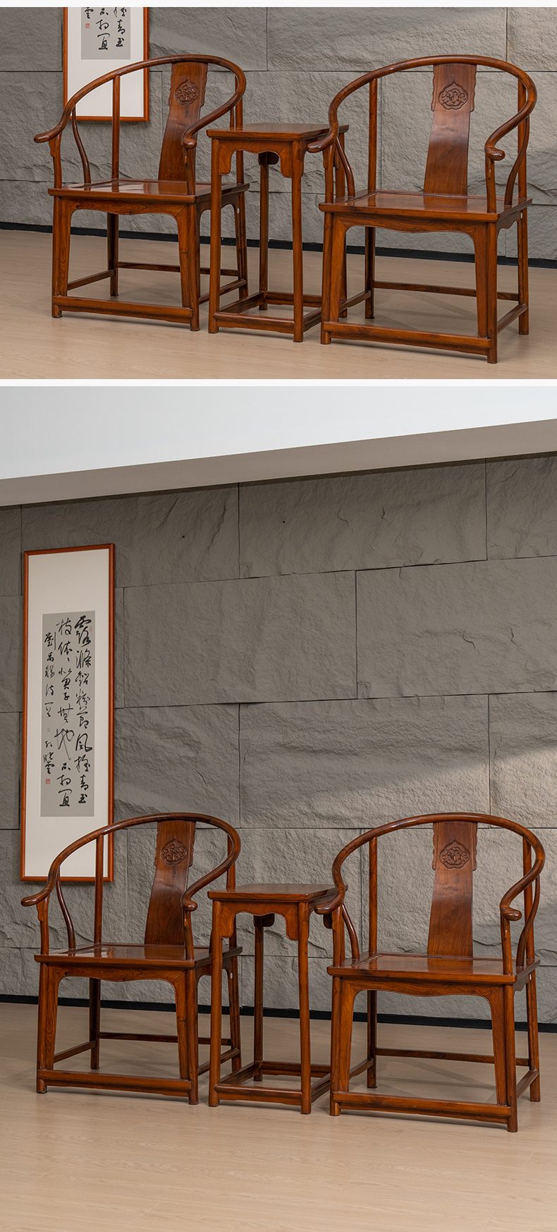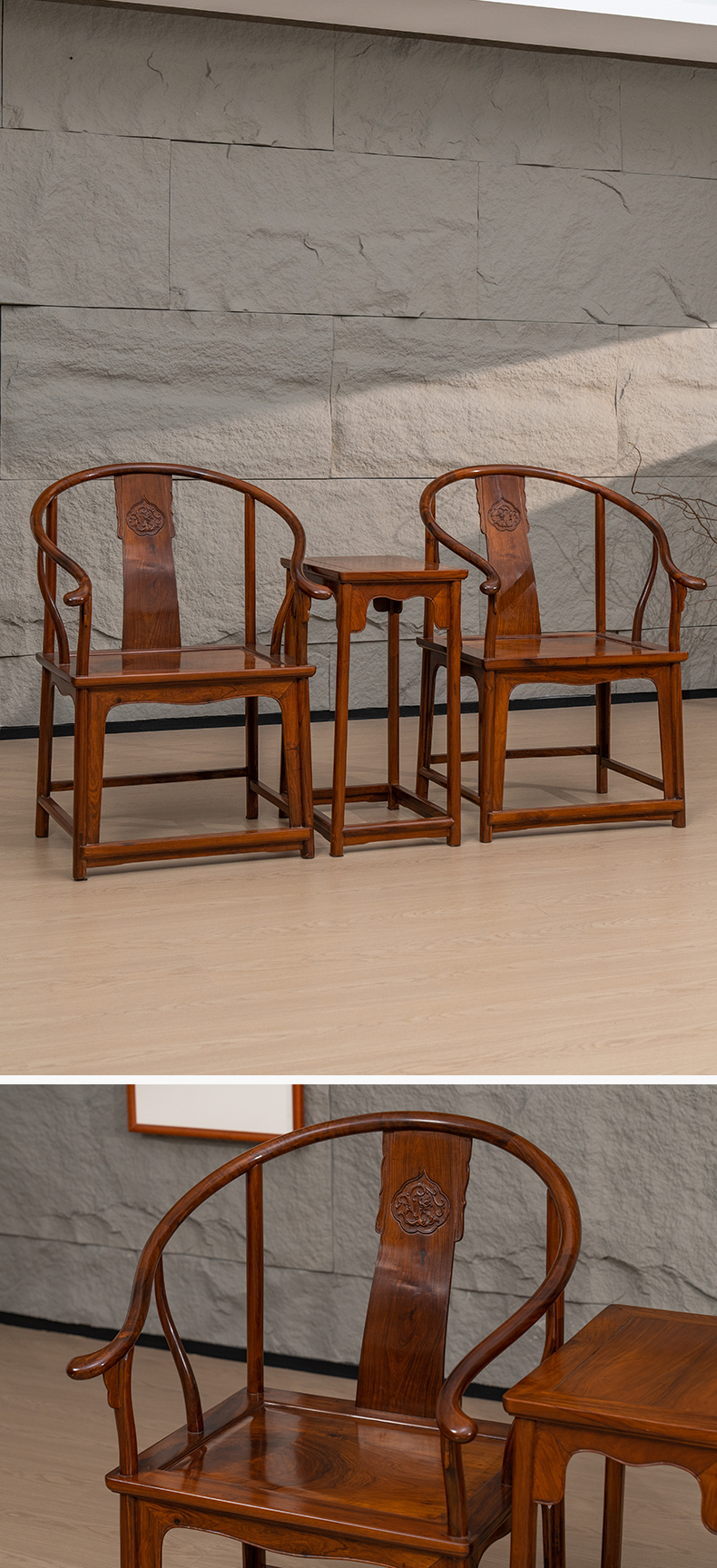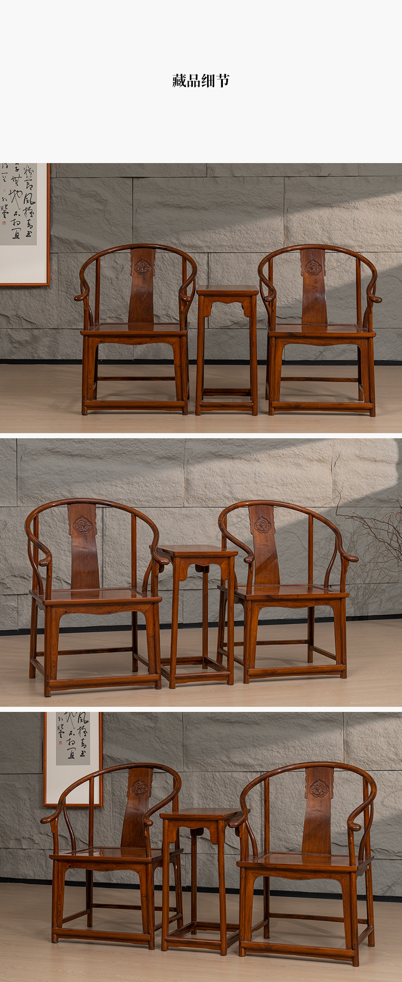 黄花梨浮雕螭龙纹圈椅成套(两椅一几)