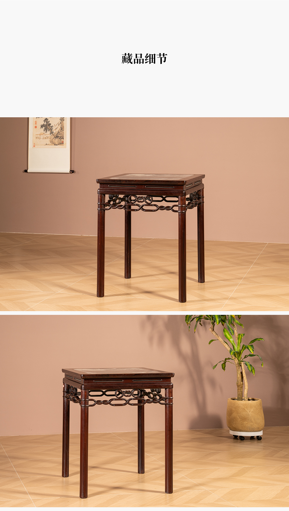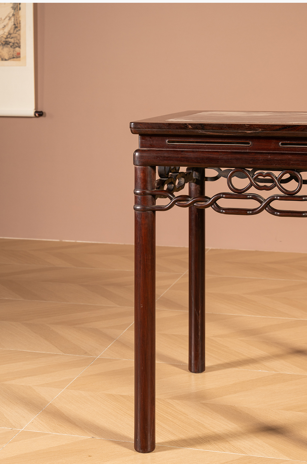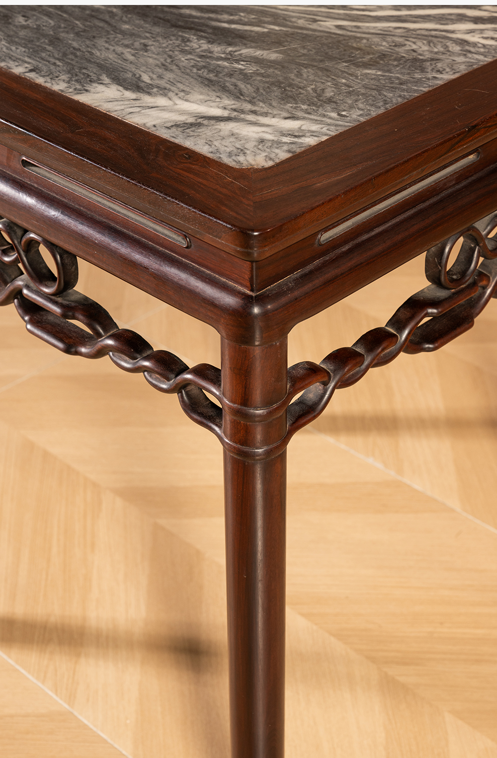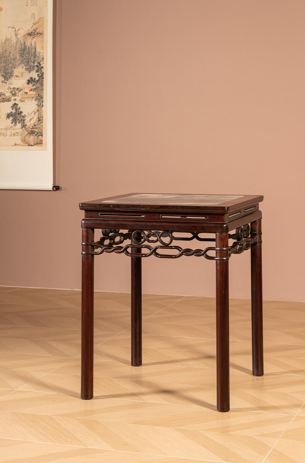 二十世纪 红木束腰马蹄腿拐子纹方桌