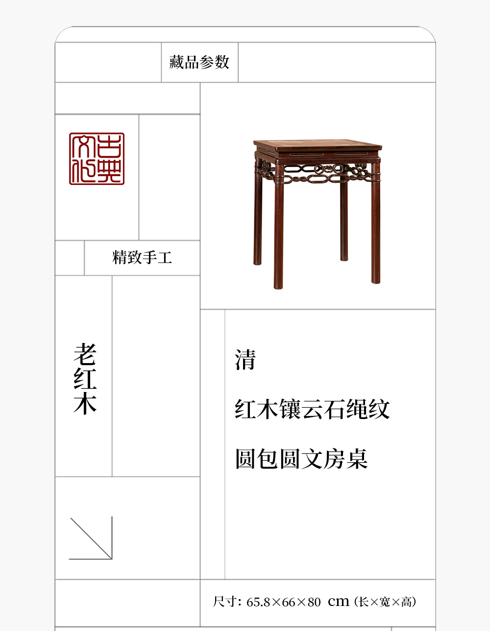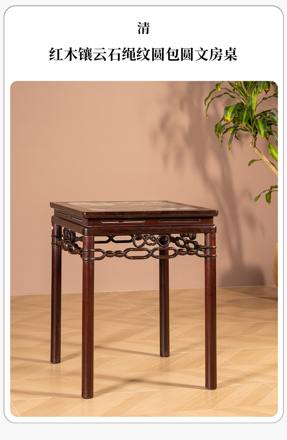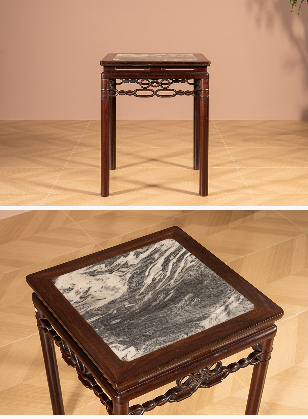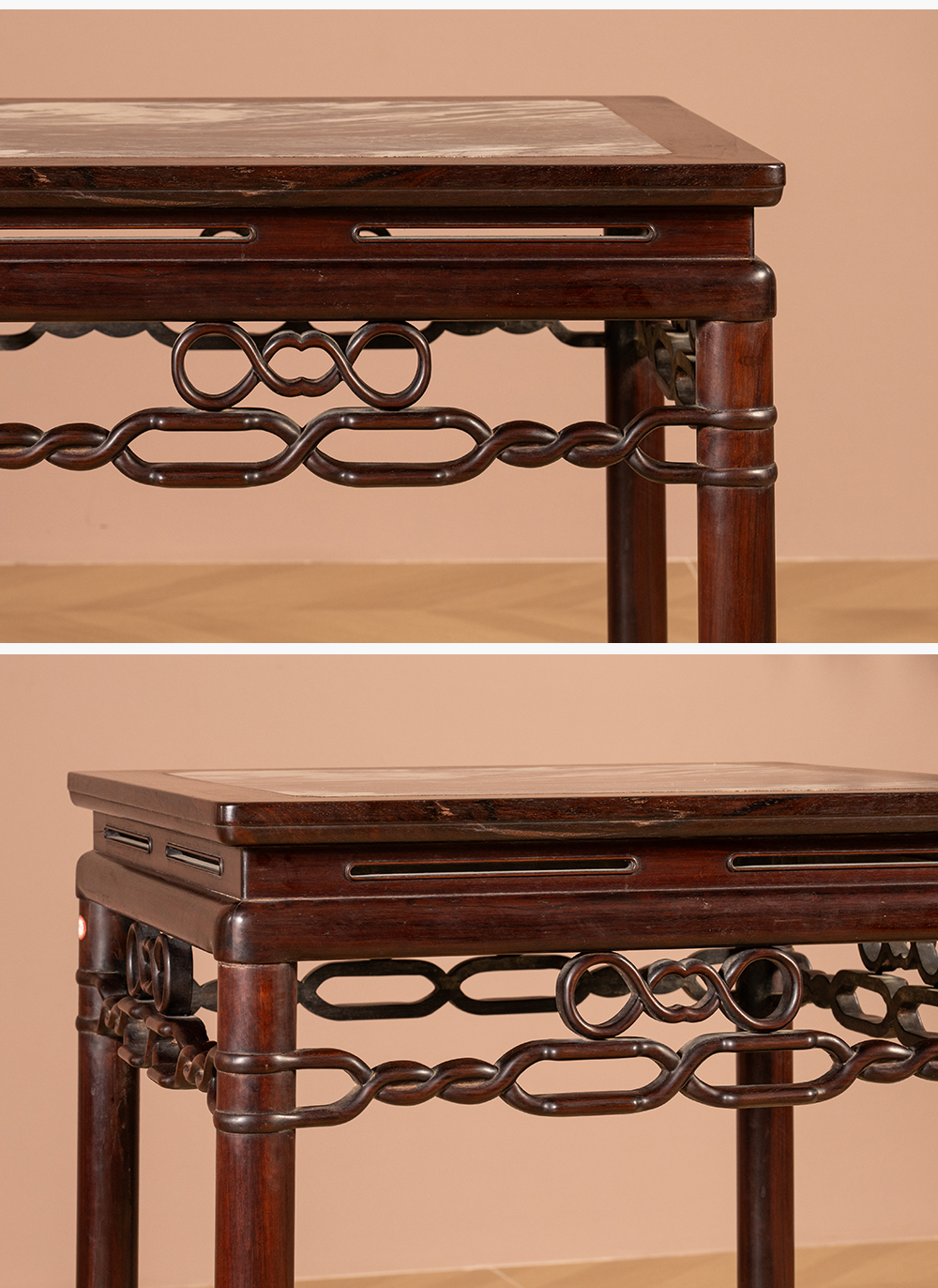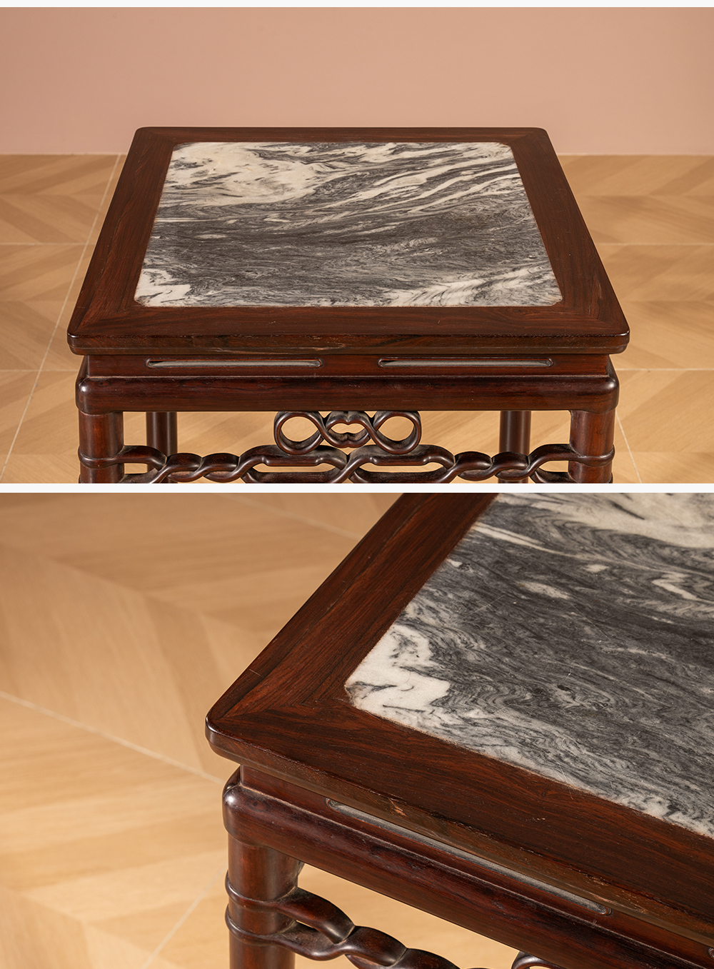 二十世纪 红木束腰马蹄腿拐子纹方桌