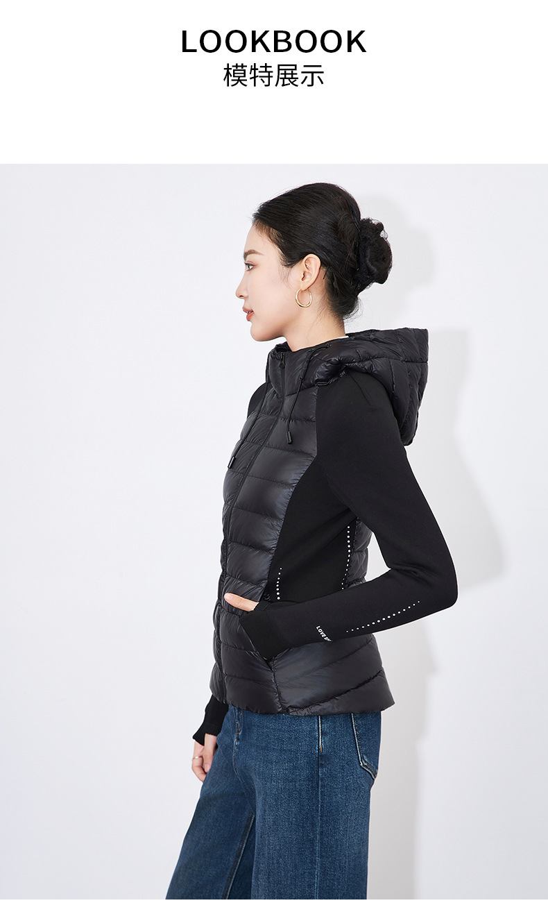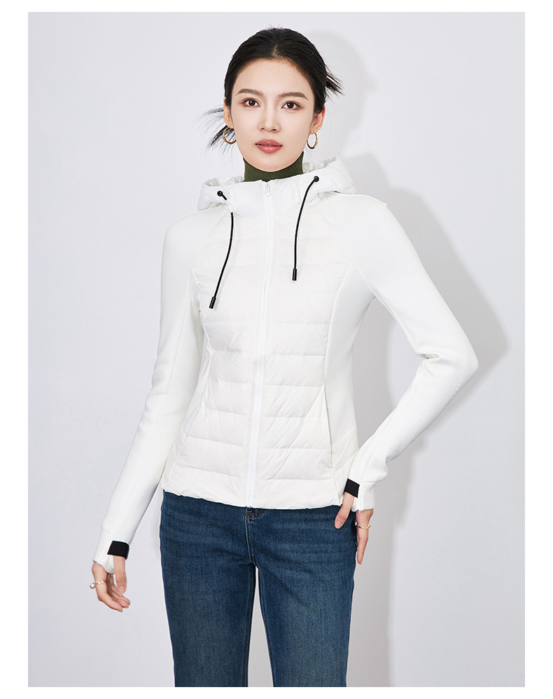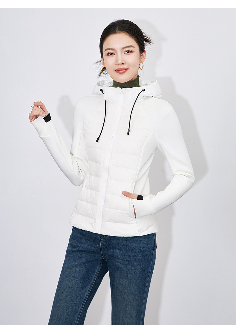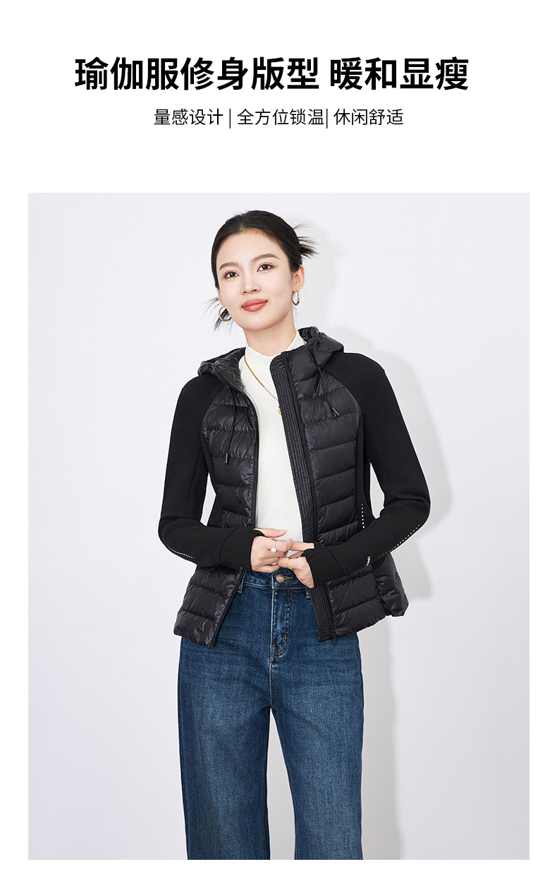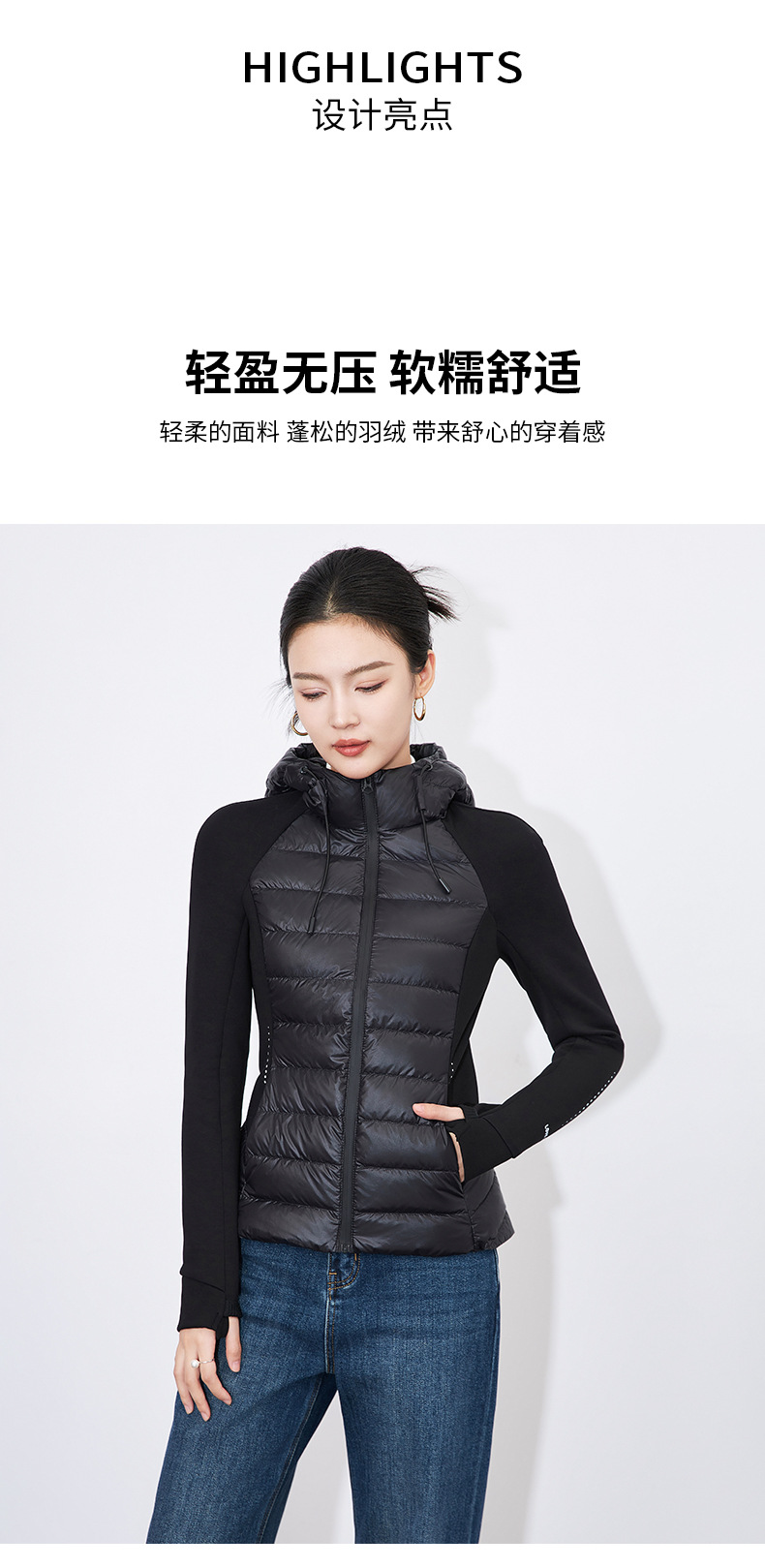 【高货wl】全新升级【铂金会员367/天猫499/差价132】(11622) 洛诗琳冬季新款连帽拼接瑜伽轻薄长袖90白鸭绒短款羽绒服