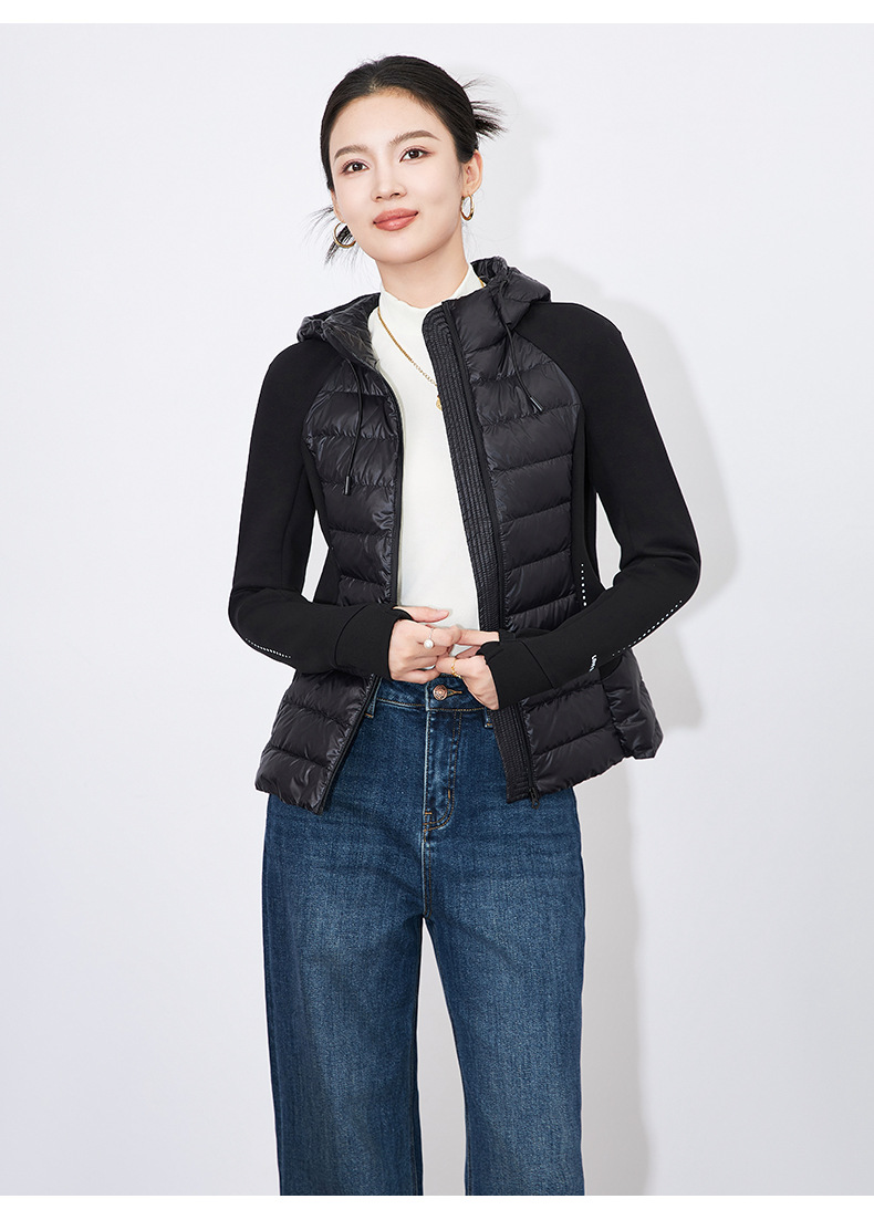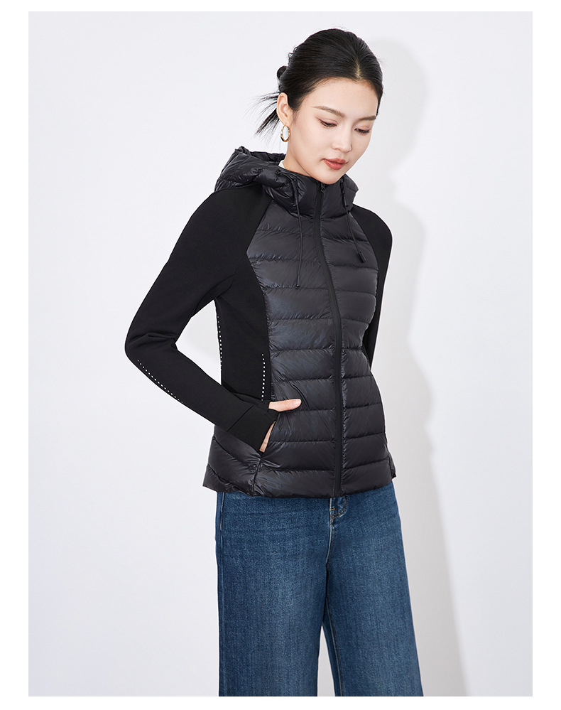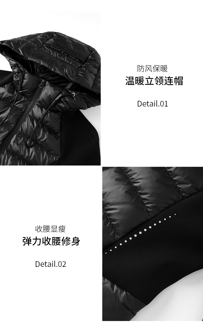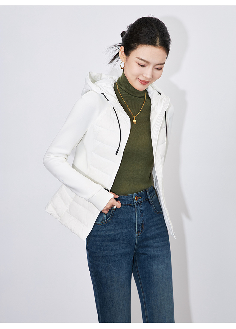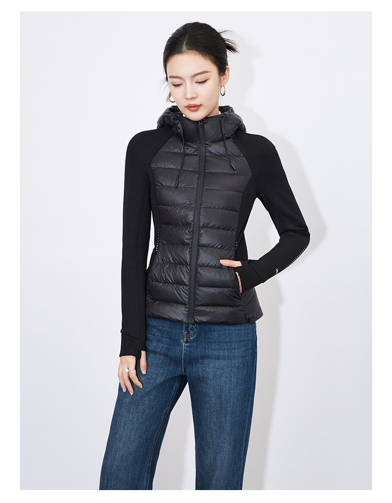 【高货wl】全新升级【铂金会员367/天猫499/差价132】(11622) 洛诗琳冬季新款连帽拼接瑜伽轻薄长袖90白鸭绒短款羽绒服