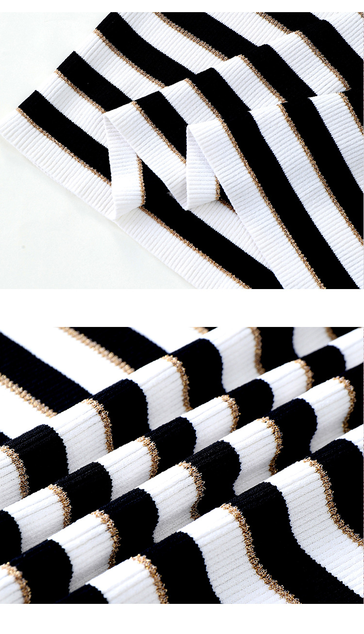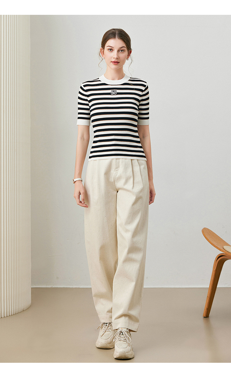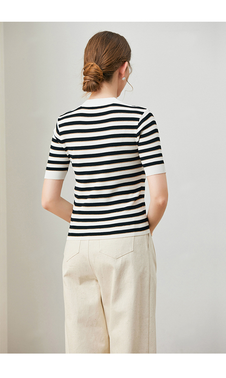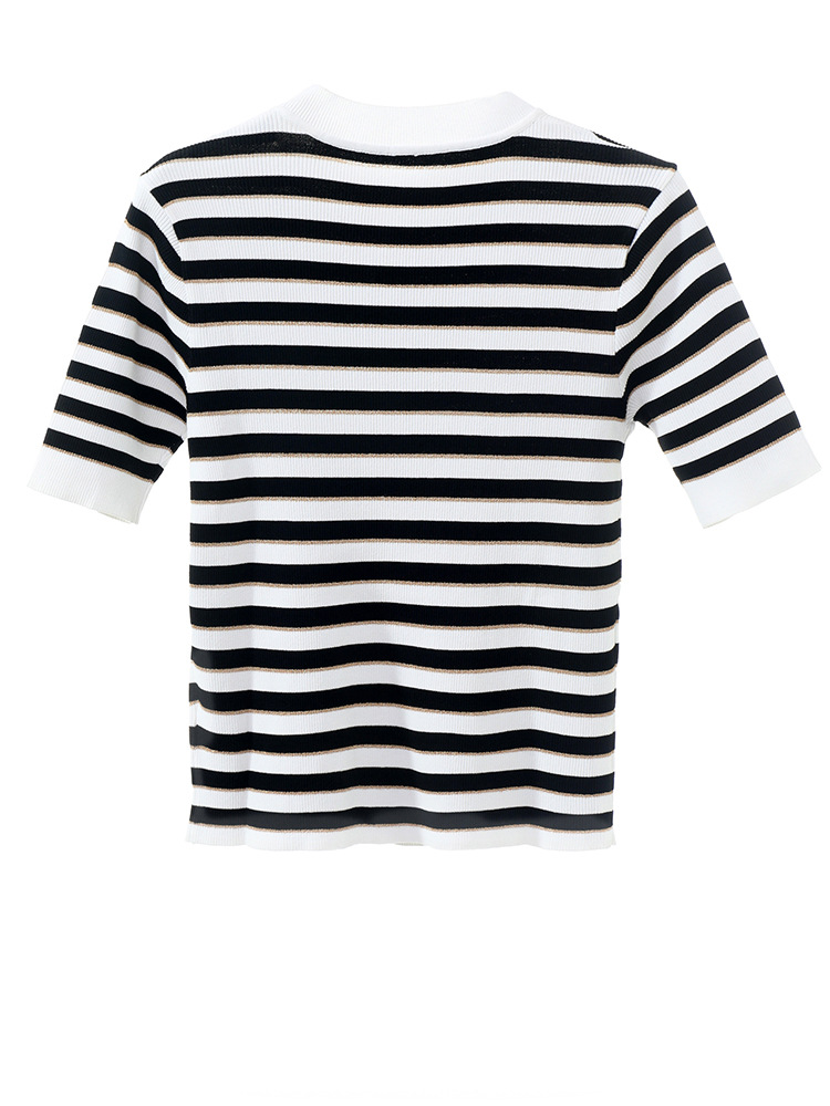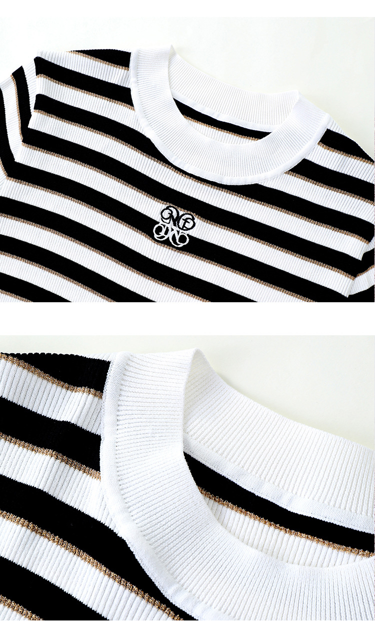 【自】全新升级【铂金会员247/天猫329/差价82】(01323) 洛诗琳冰丝针织衫女2025夏季显瘦圆领气质条纹t恤上衣女