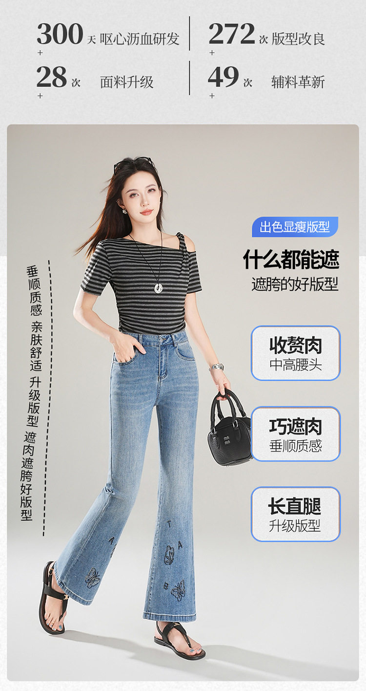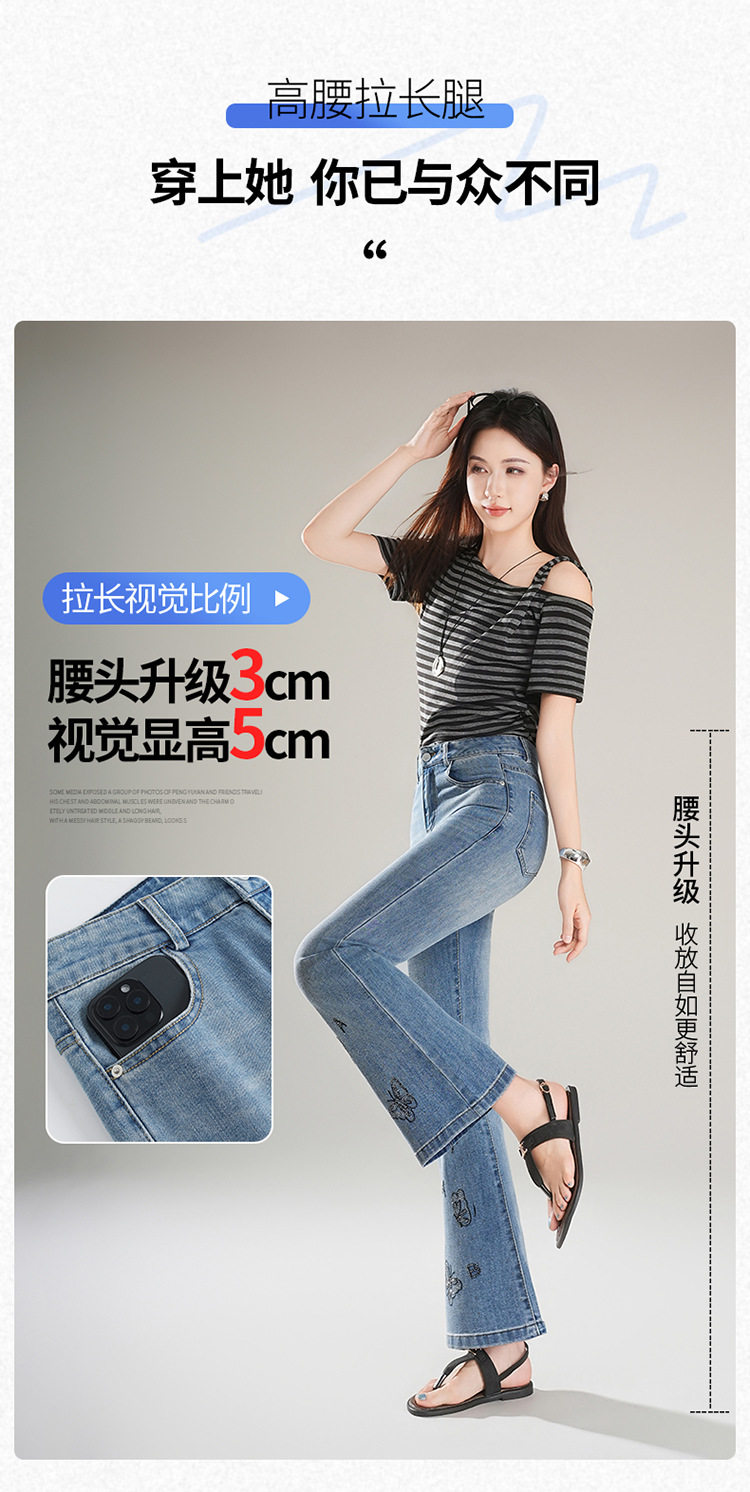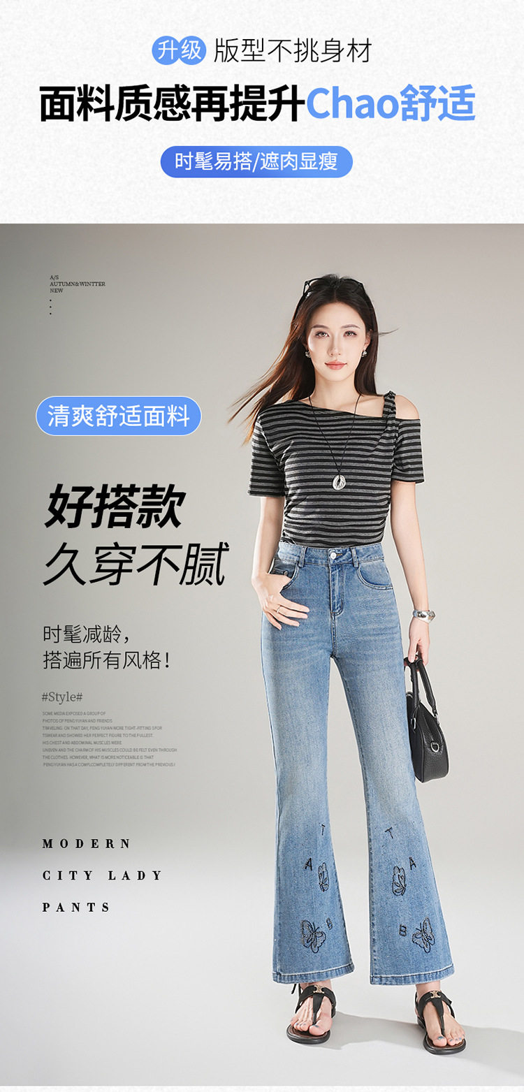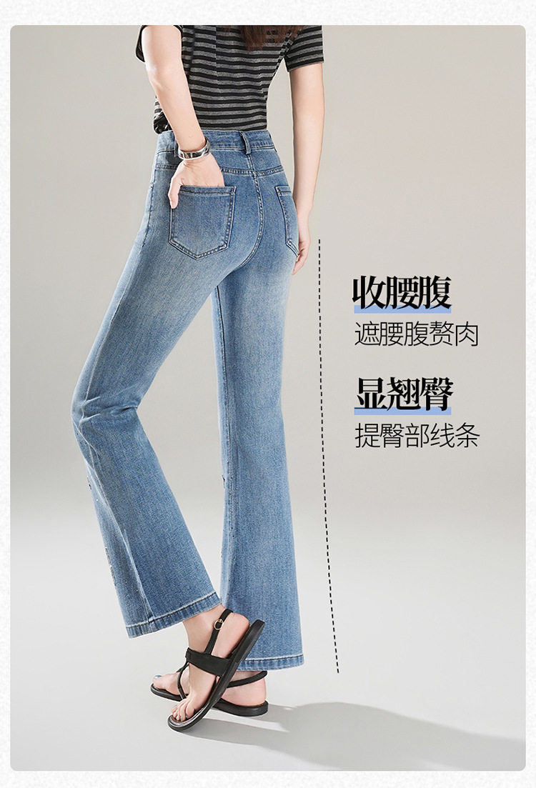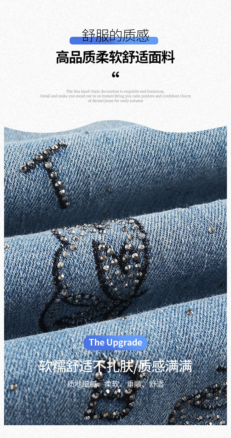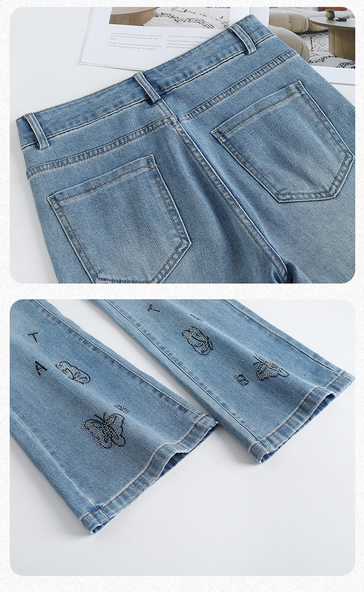 「自」全新升级 【铂金会员174/天猫229/差价55】(21157)洛诗琳时尚烫钻刺绣牛仔裤女2026夏季新款高腰显瘦微喇裤