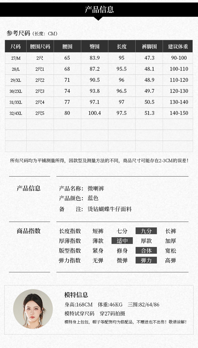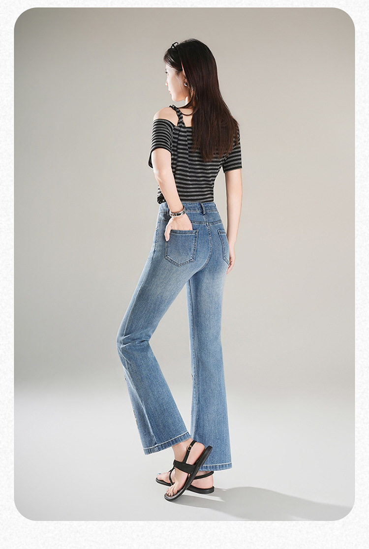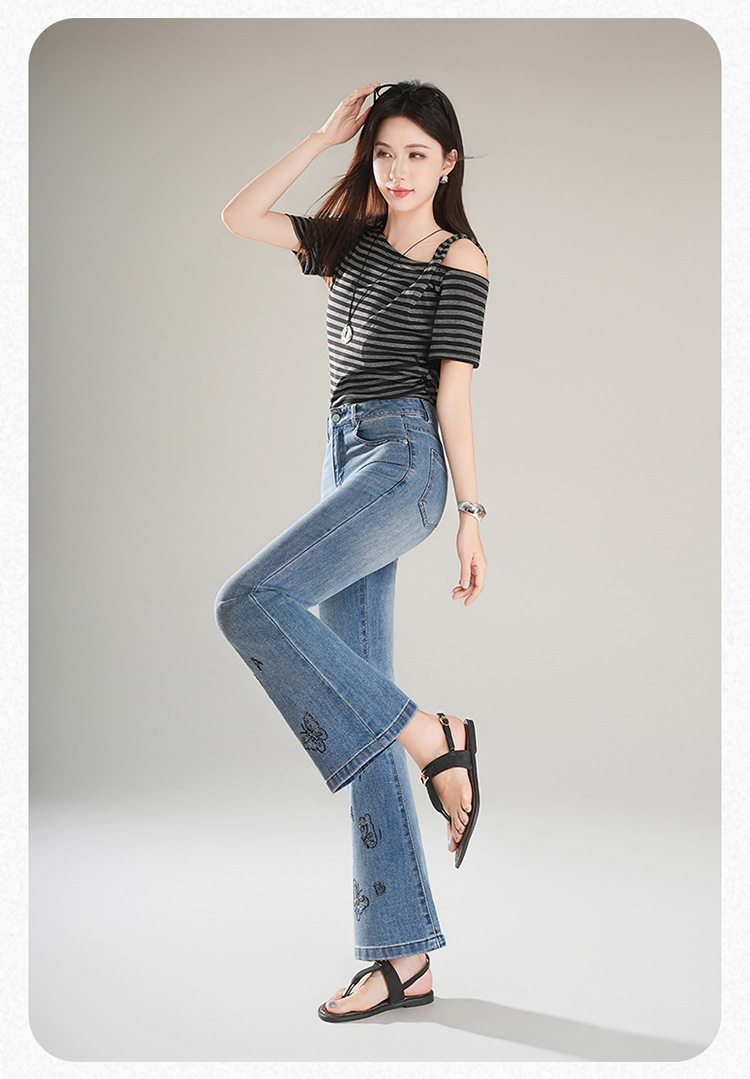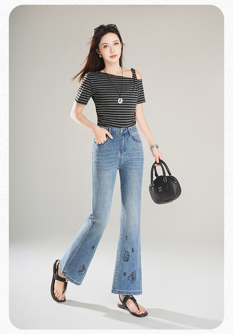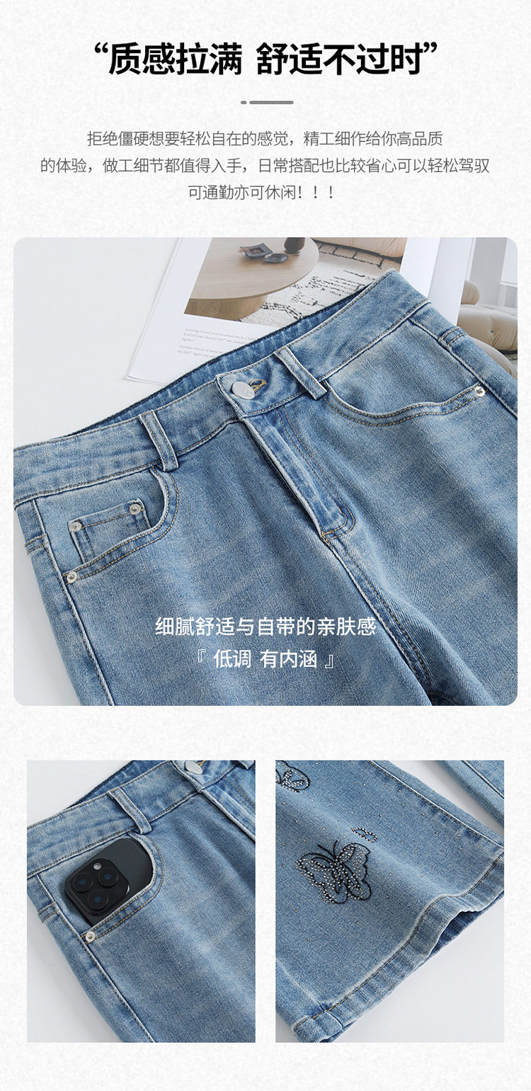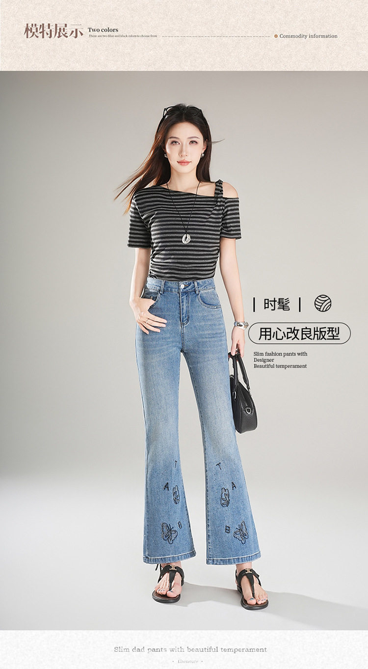 「自」全新升级 【铂金会员174/天猫229/差价55】(21157)洛诗琳时尚烫钻刺绣牛仔裤女2026夏季新款高腰显瘦微喇裤