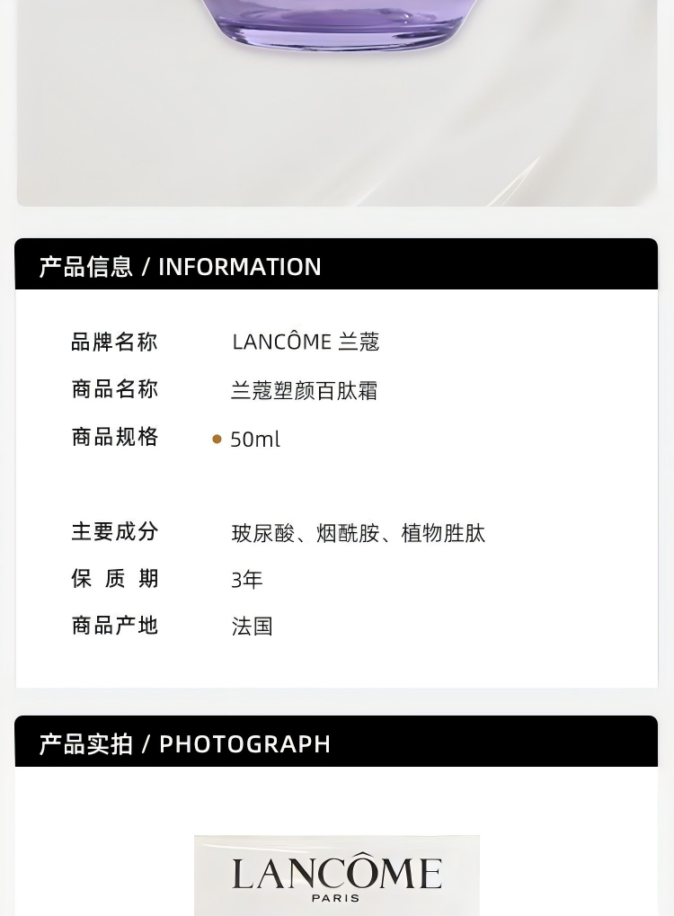 【含税价】兰蔻 新素颜紧致面霜「百肽霜】 50ml