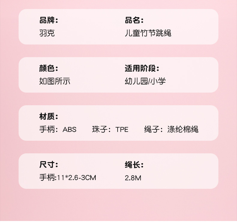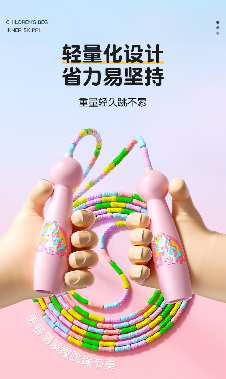 【孩子易上手,比好跳更好跳!】儿童竹节跳绳 幼儿园宝宝初学者 小学生专用绳 可调节不打结 健身专用-QQ