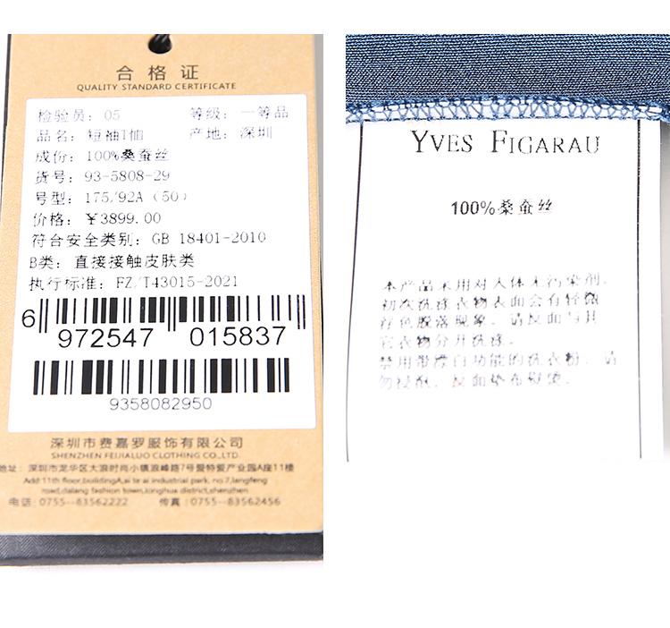 YvesFigarau伊夫·费嘉罗新品100%桑蚕丝休闲短袖T恤935808