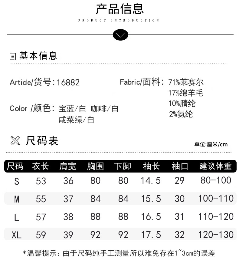 丁摩~100纯羊毛圆领五分袖针织衫女春秋短袖上衣宽松中袖T恤纯色打底衫JJIA209