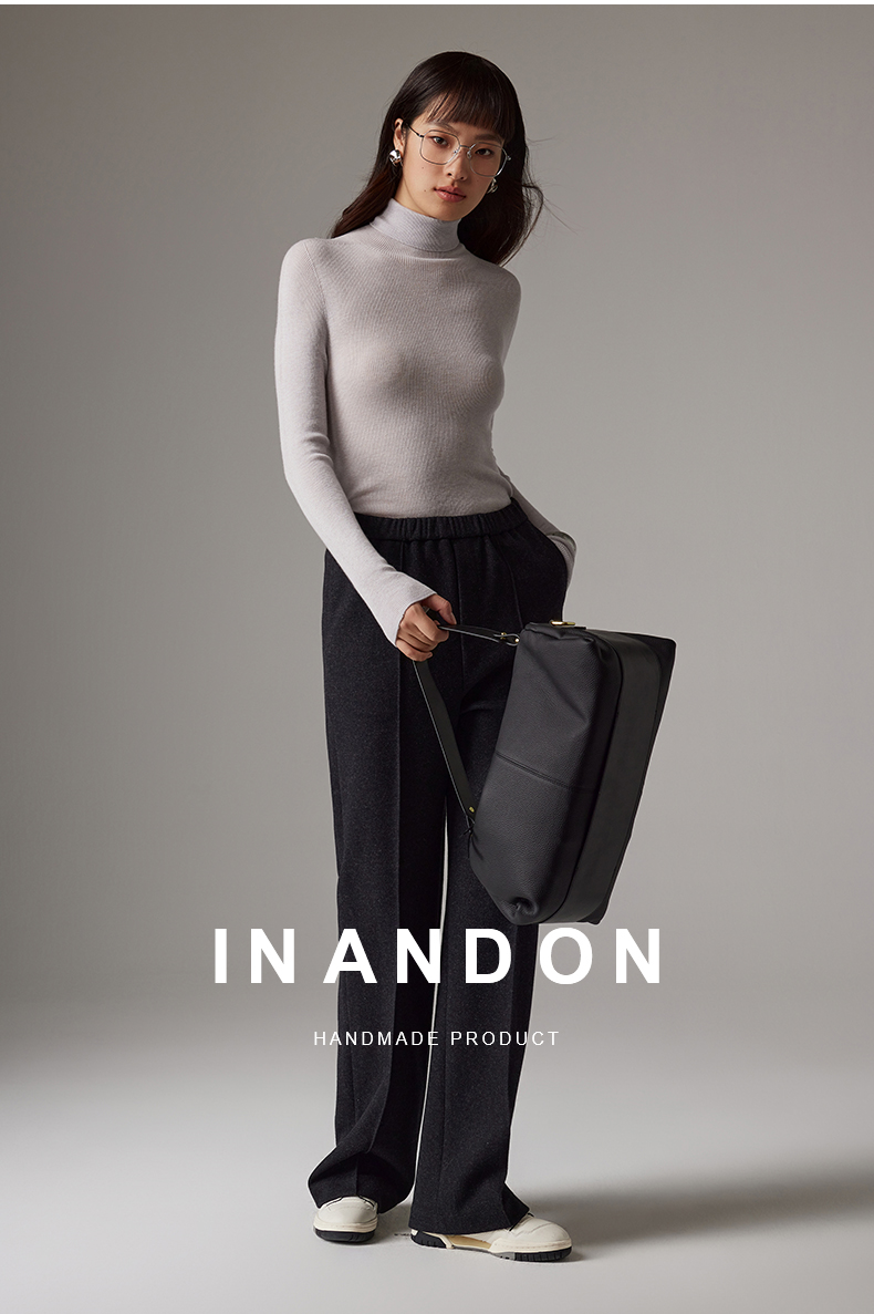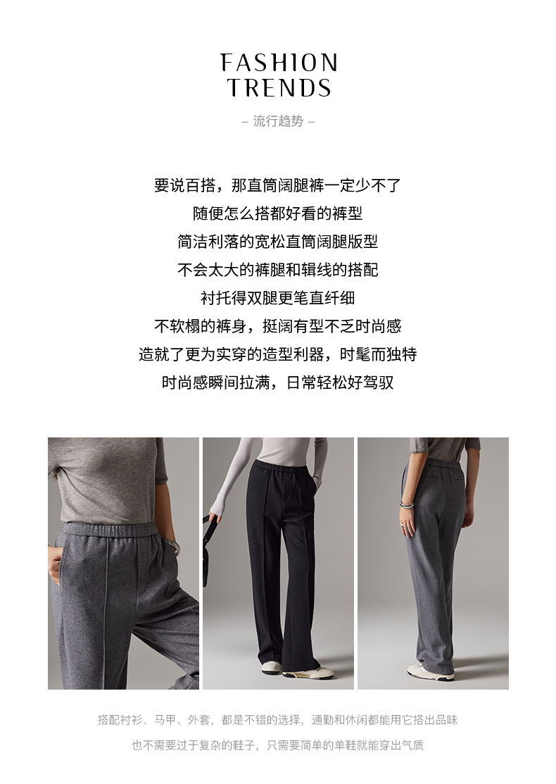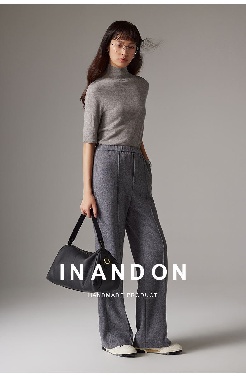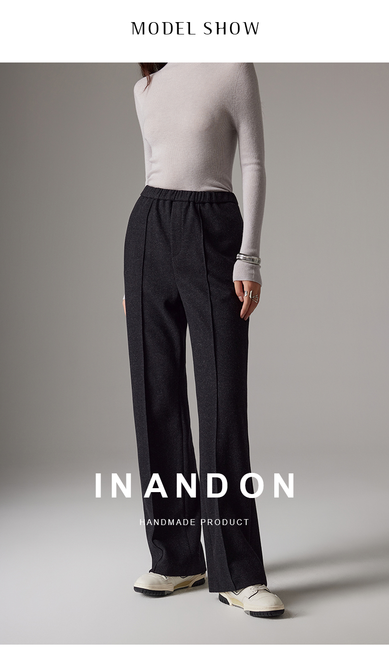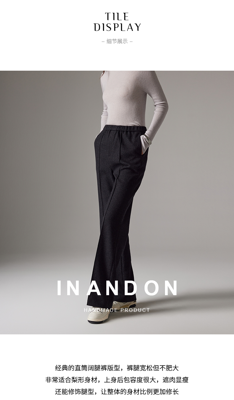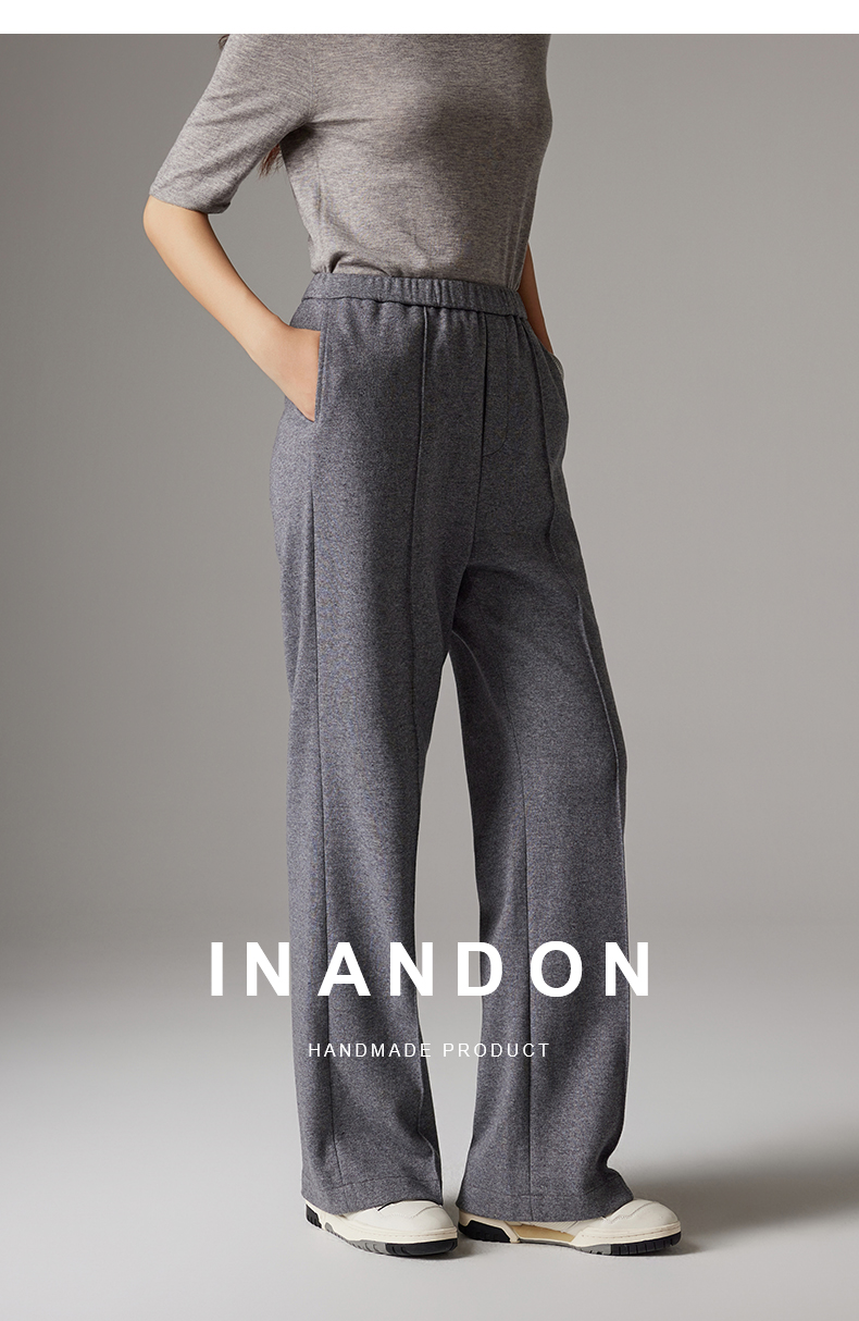 IN AND ON软糯秋冬新款经典休闲显瘦通勤羊毛针织直筒运动阔腿裤53786