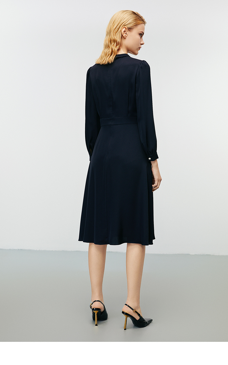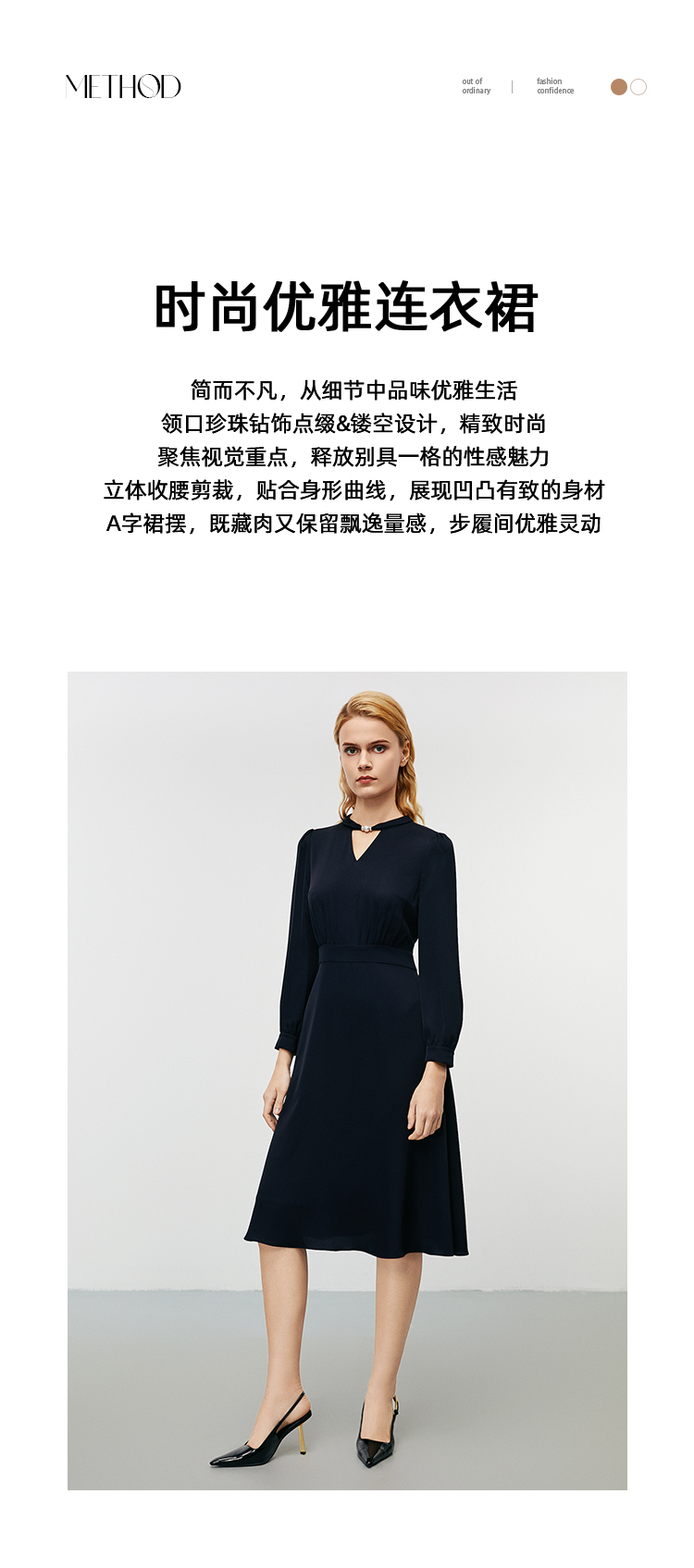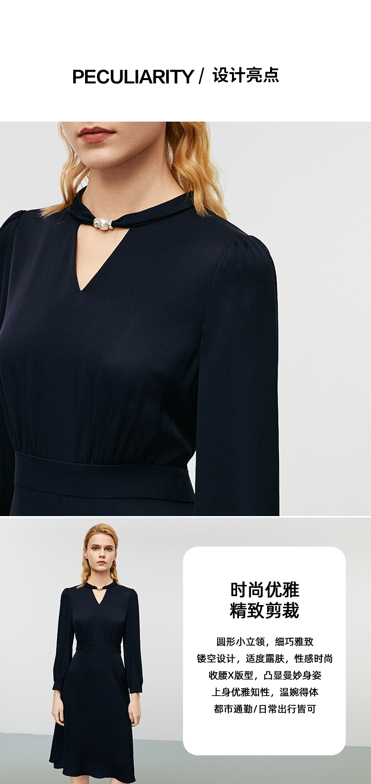 EITIE爱特爱秋季新款时尚挂脖V领收腰显瘦通勤连衣裙7907627