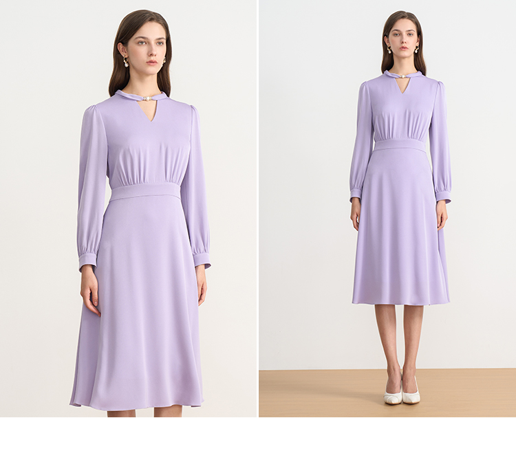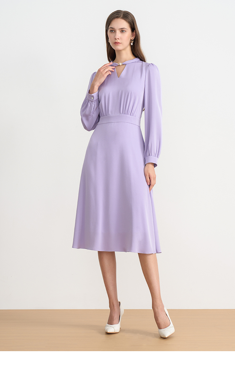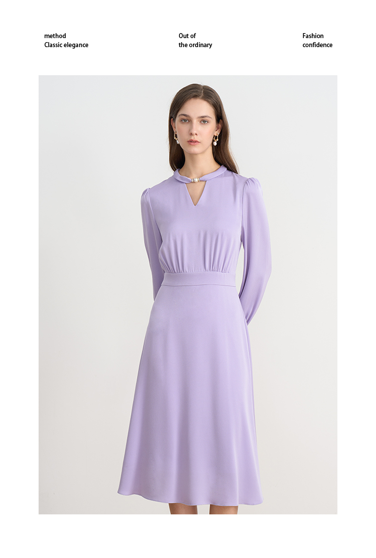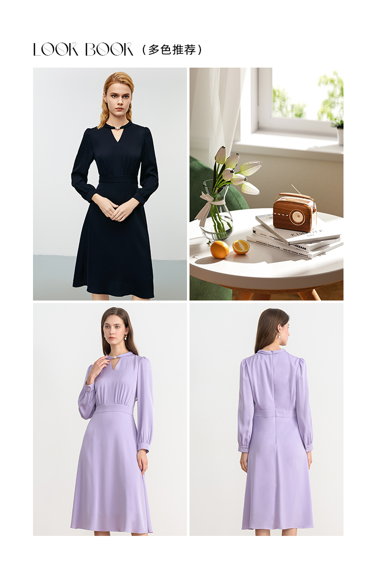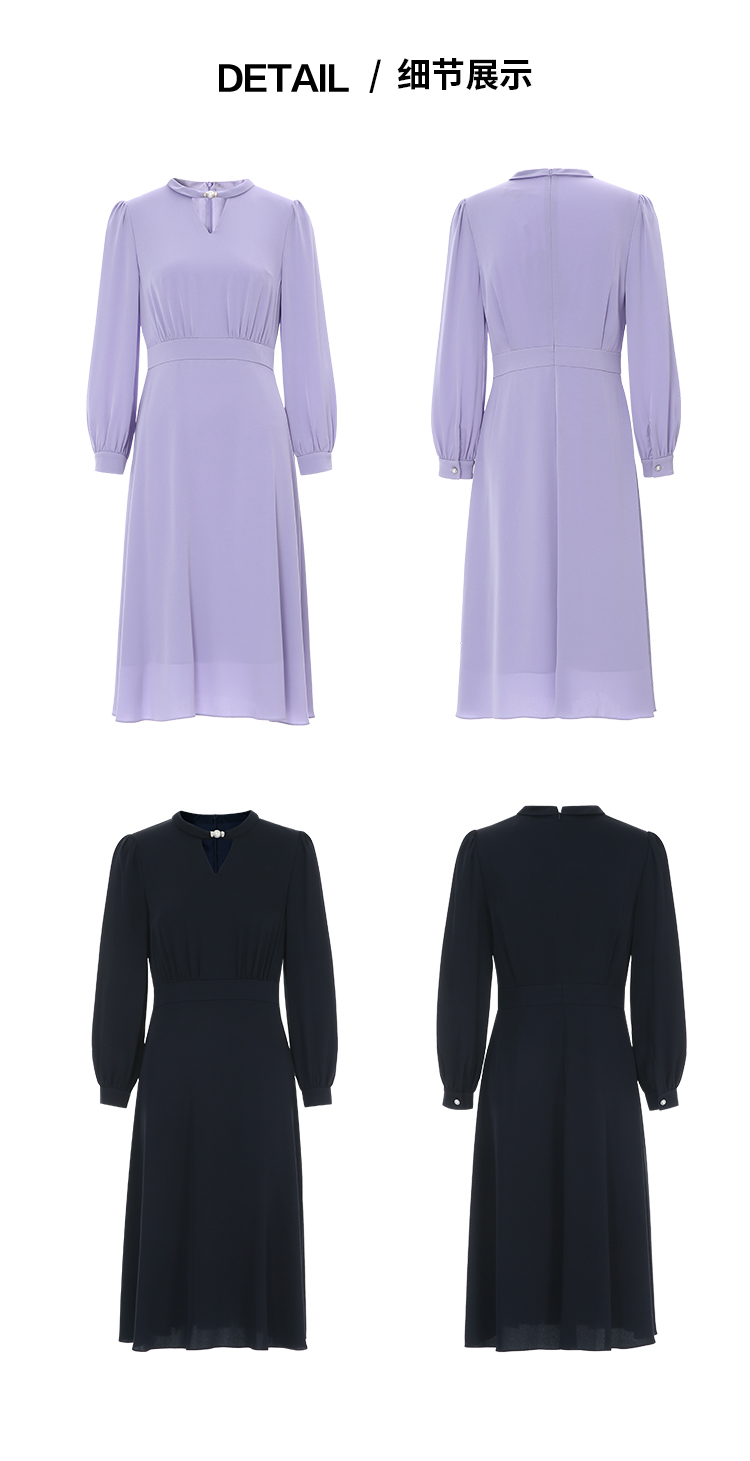 EITIE爱特爱秋季新款时尚挂脖V领收腰显瘦通勤连衣裙7907627
