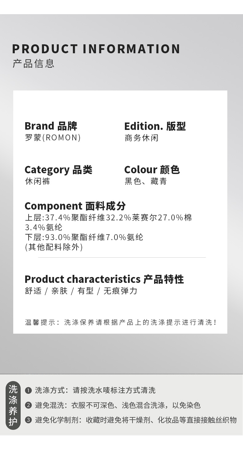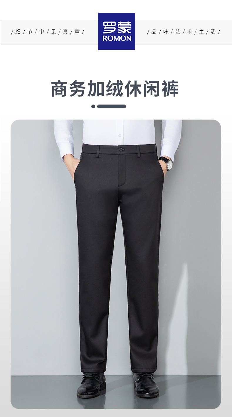 【莱赛尔棉】罗蒙男士加绒休闲裤保暖商务版磨毛内里带隐形防盗拉链舒适百搭长裤