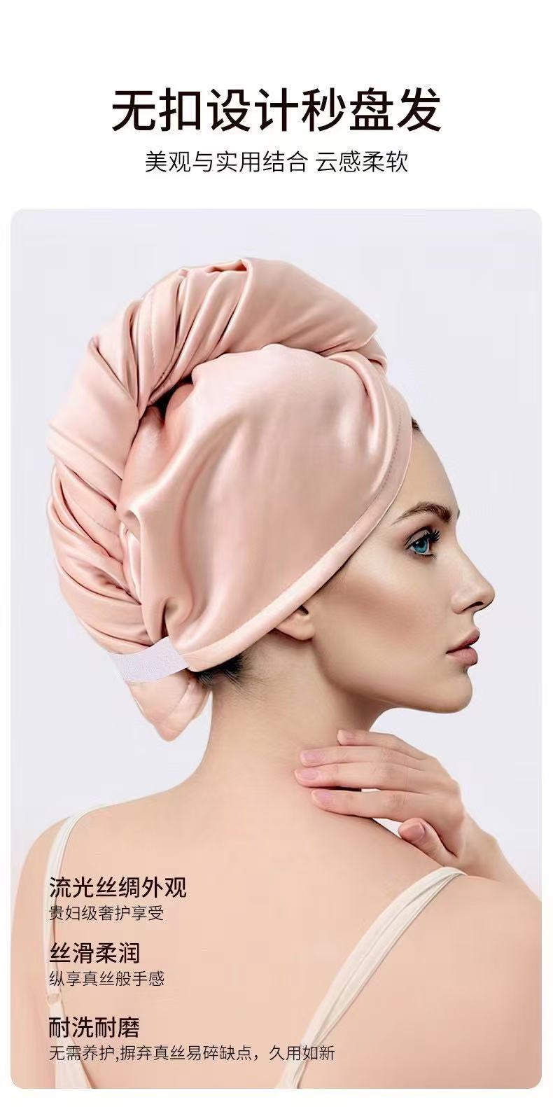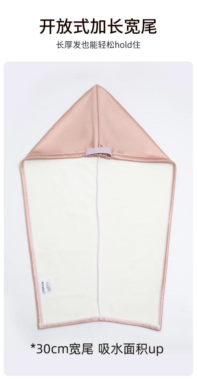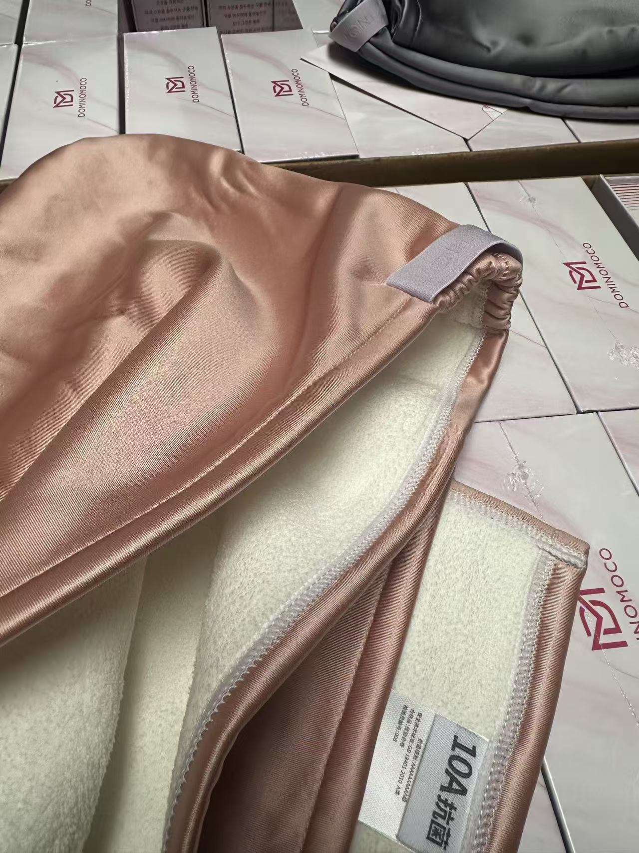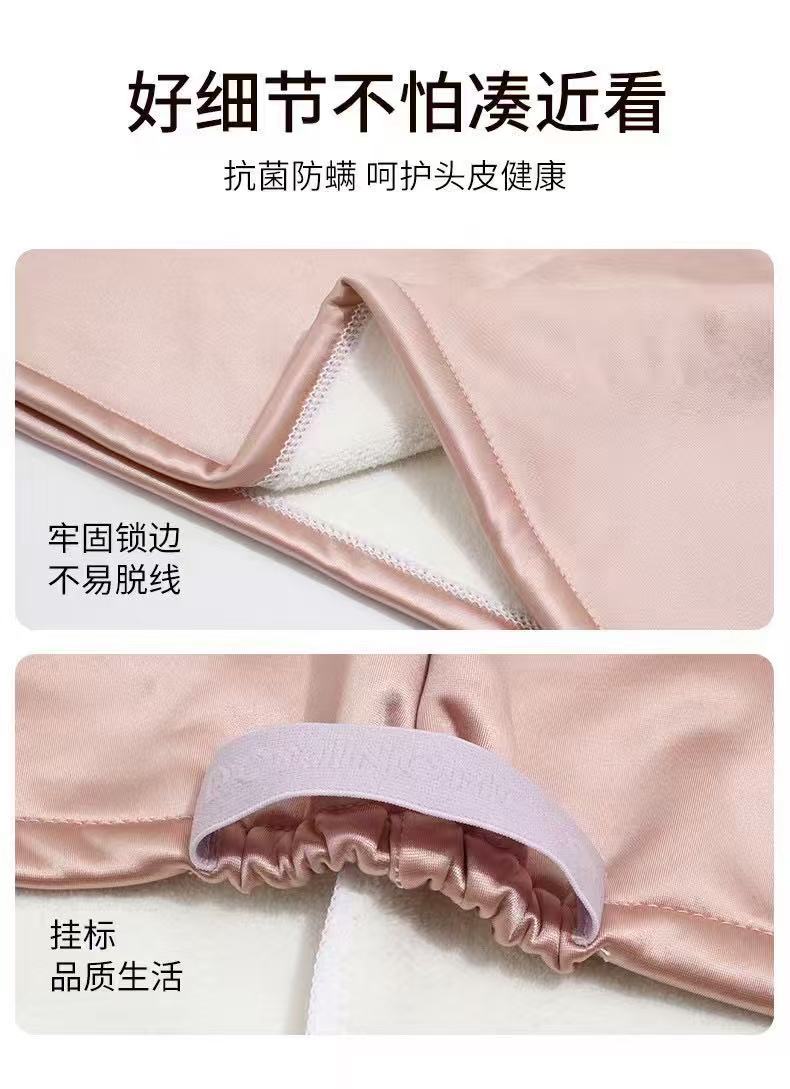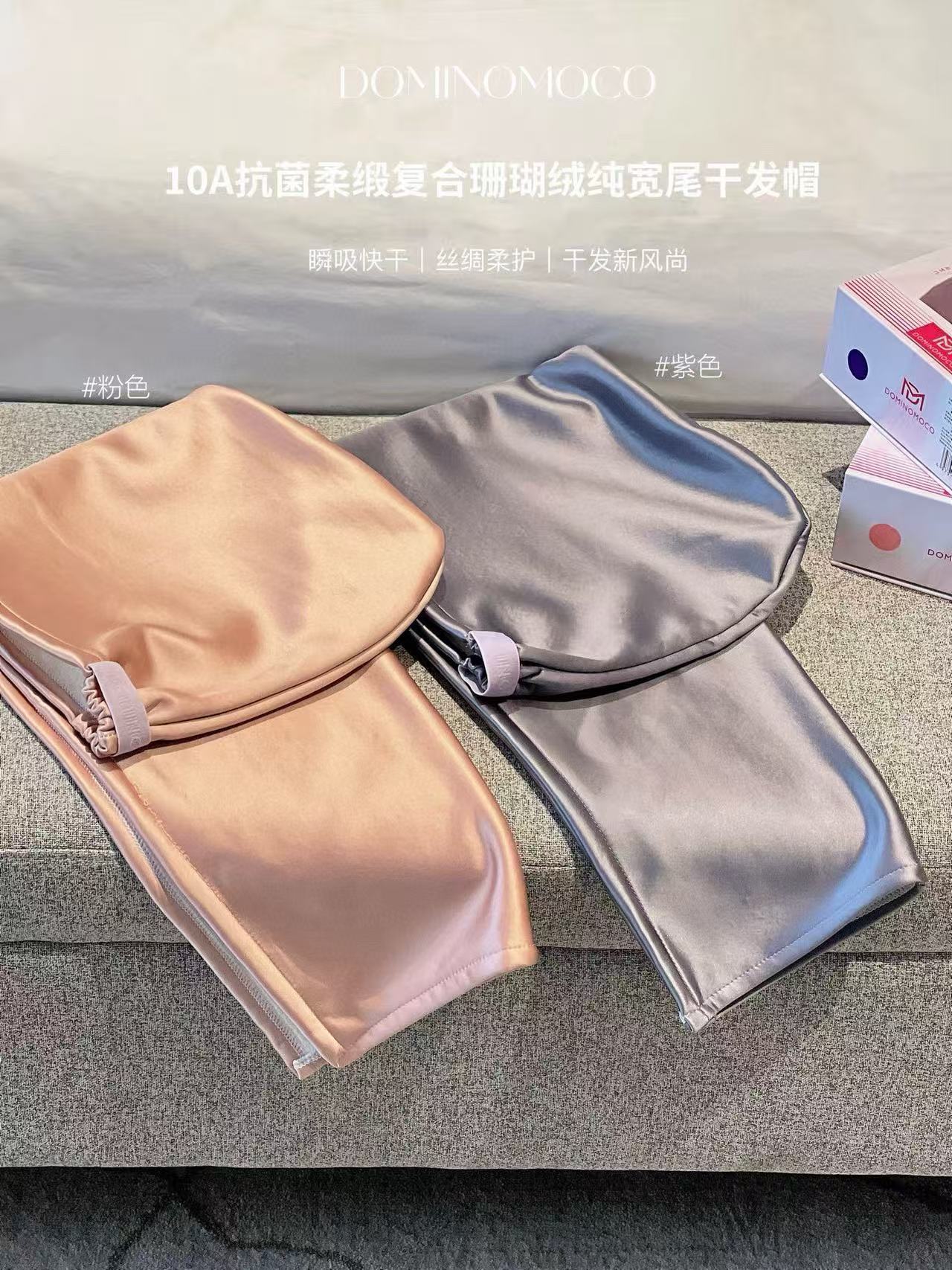 新出的10A 抗菌柔缎复合珊瑚绒宽尾干发帽