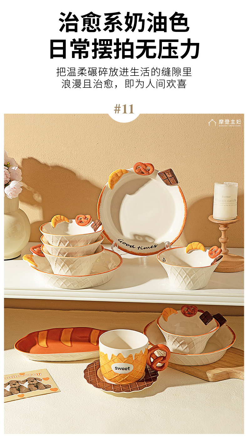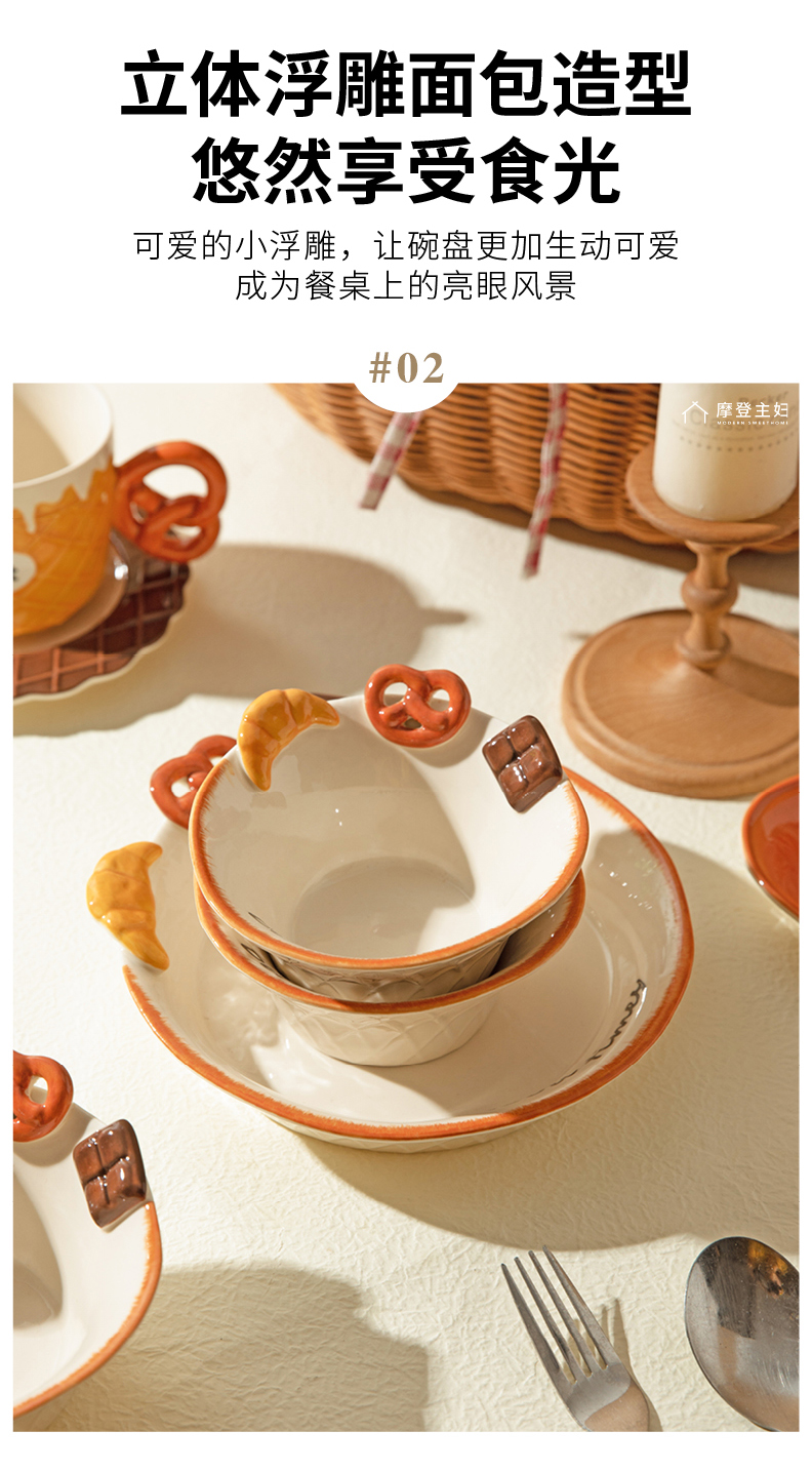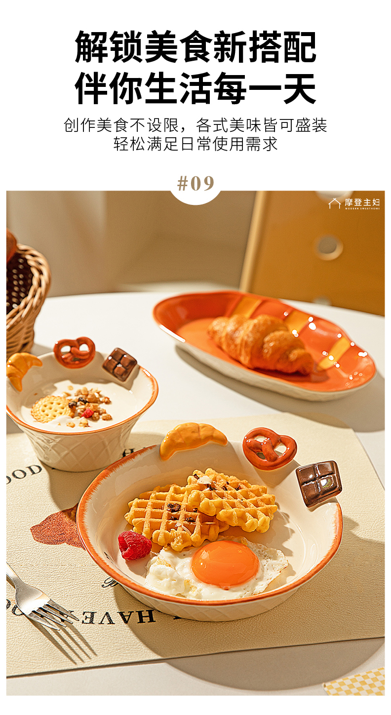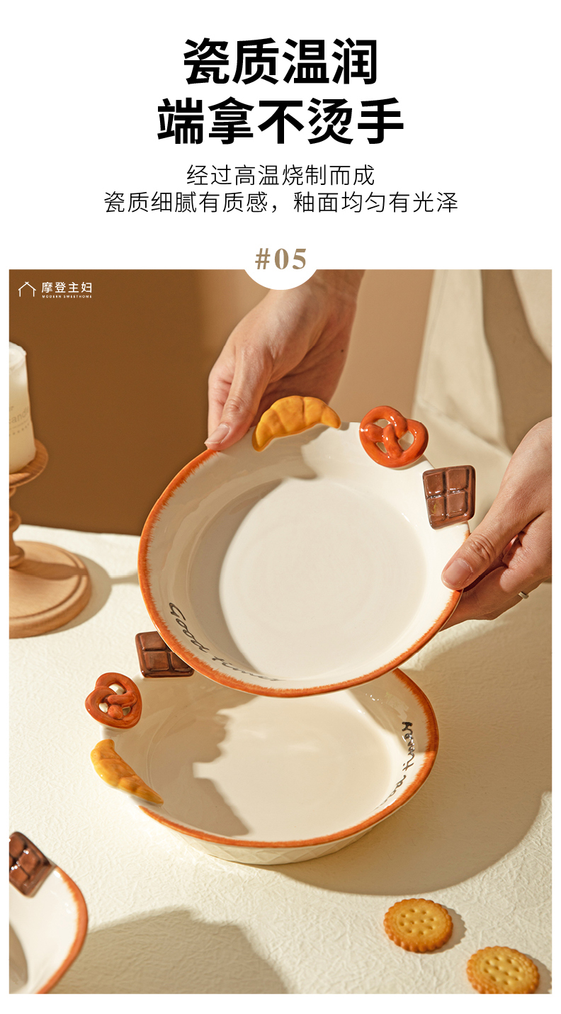 摩登主妇浮雕盘子分格餐盘早餐盘一人食餐具家用釉下彩碗具酸奶碗