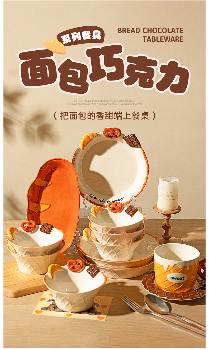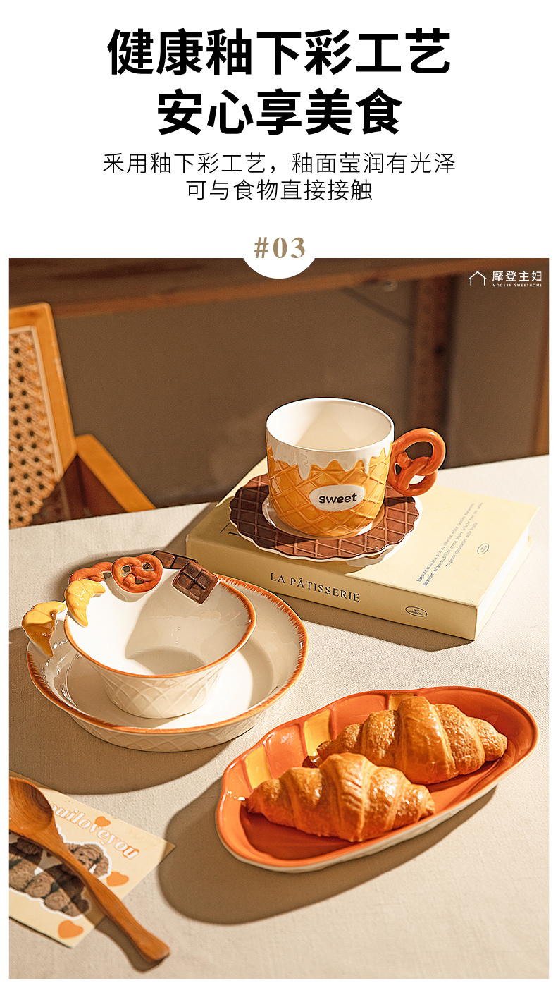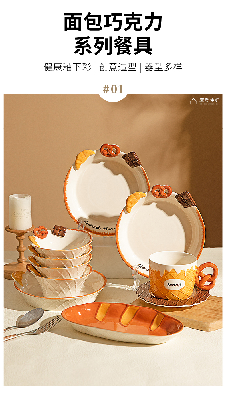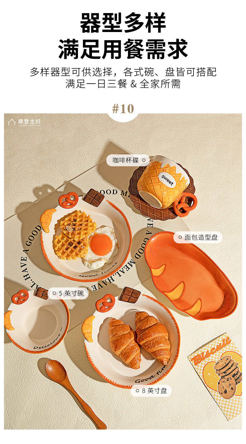 摩登主妇浮雕盘子分格餐盘早餐盘一人食餐具家用釉下彩碗具酸奶碗