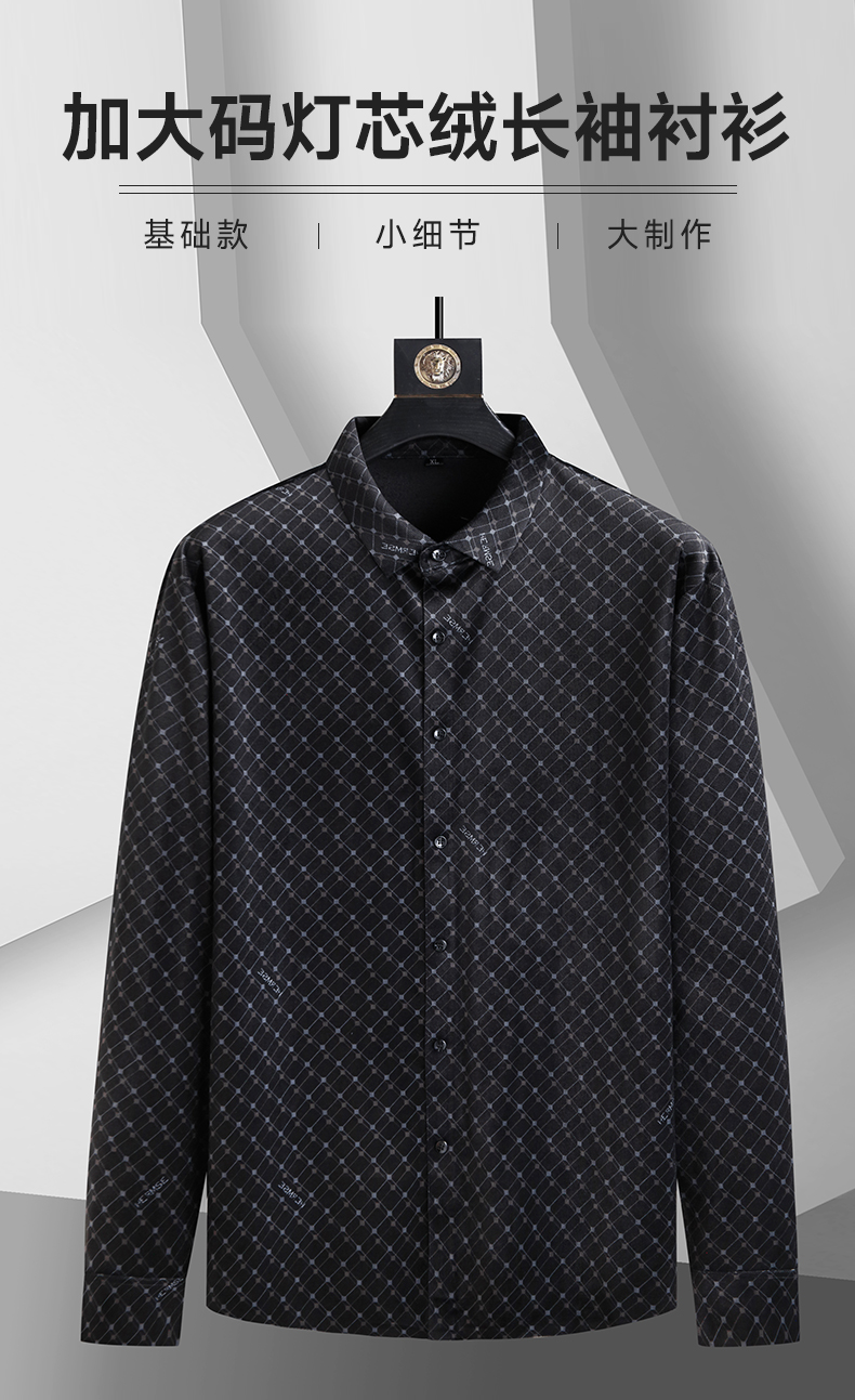 【新款DK】大依优型大码长袖衬衫灯芯绒条纹商务休闲绅士免烫衬衣胖子宽松男提花时尚