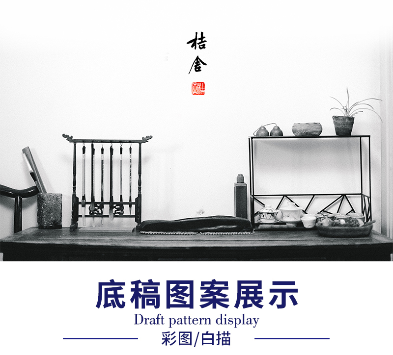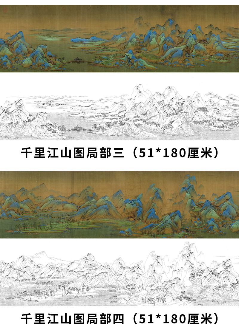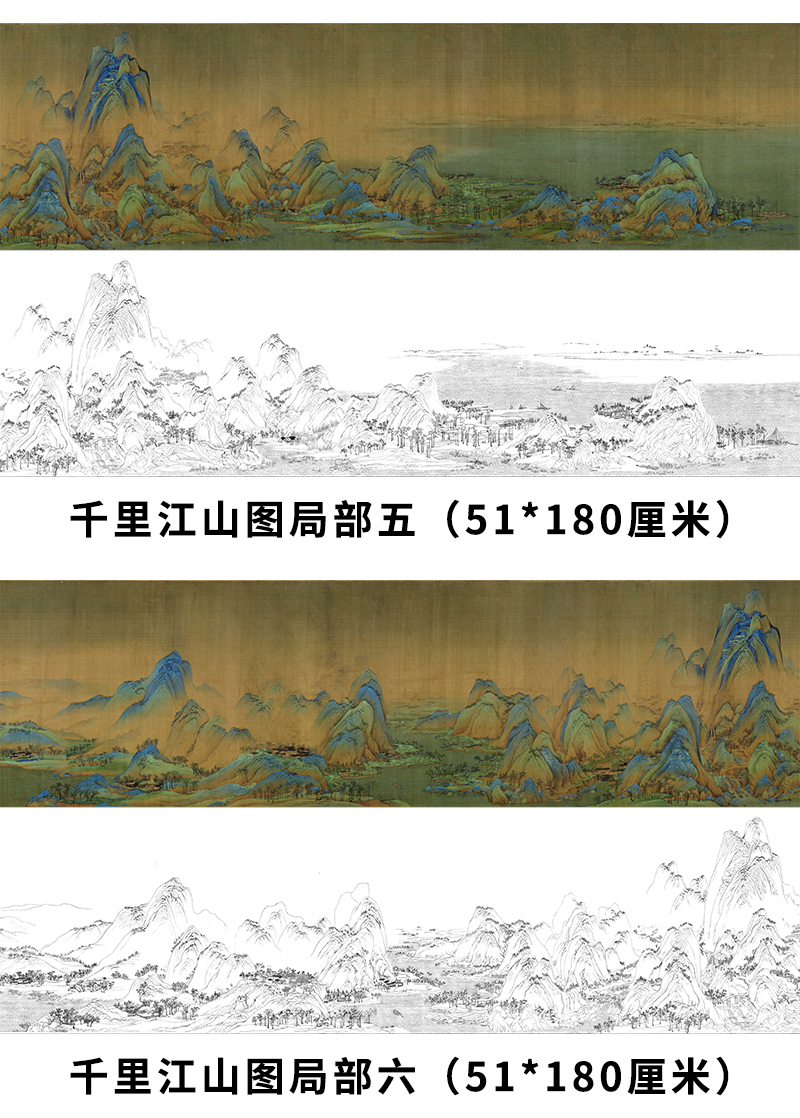 《千里江山图》局部-51*180厘米白描底稿多图案可选
