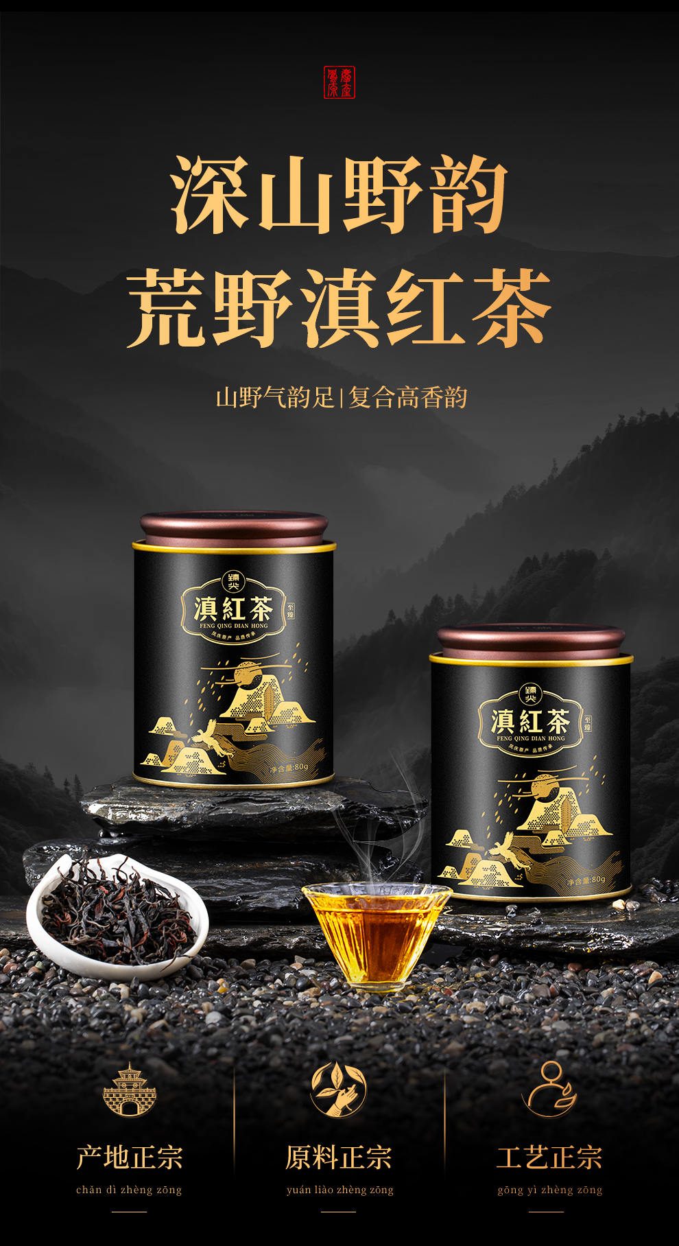 【臻尖-滇红至臻】 凤庆滇红茶 特级正宗自己喝茶叶80g*2罐