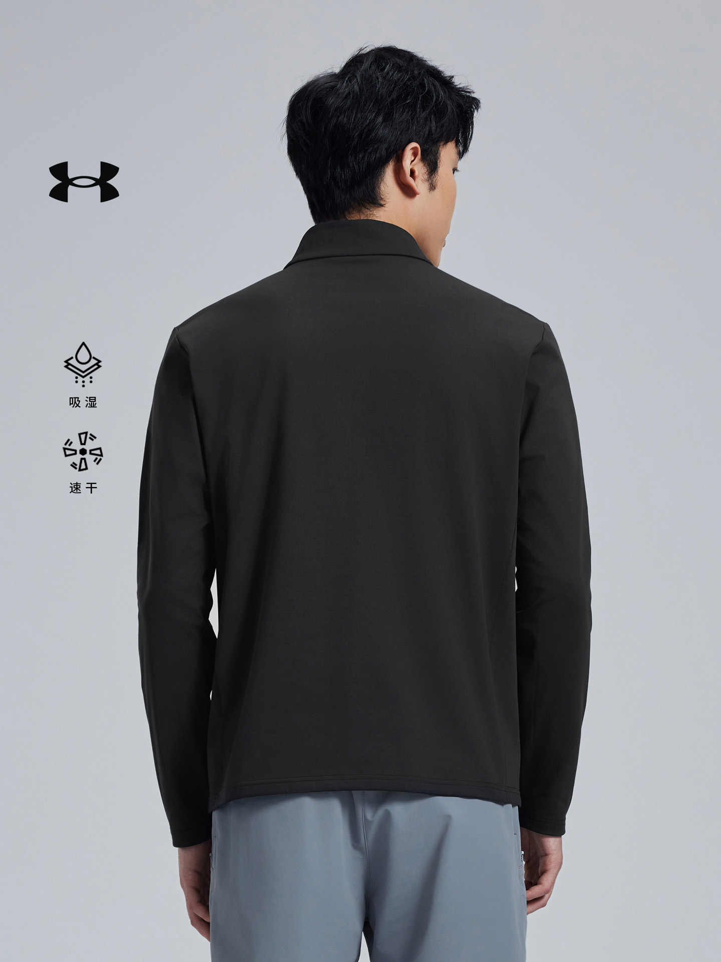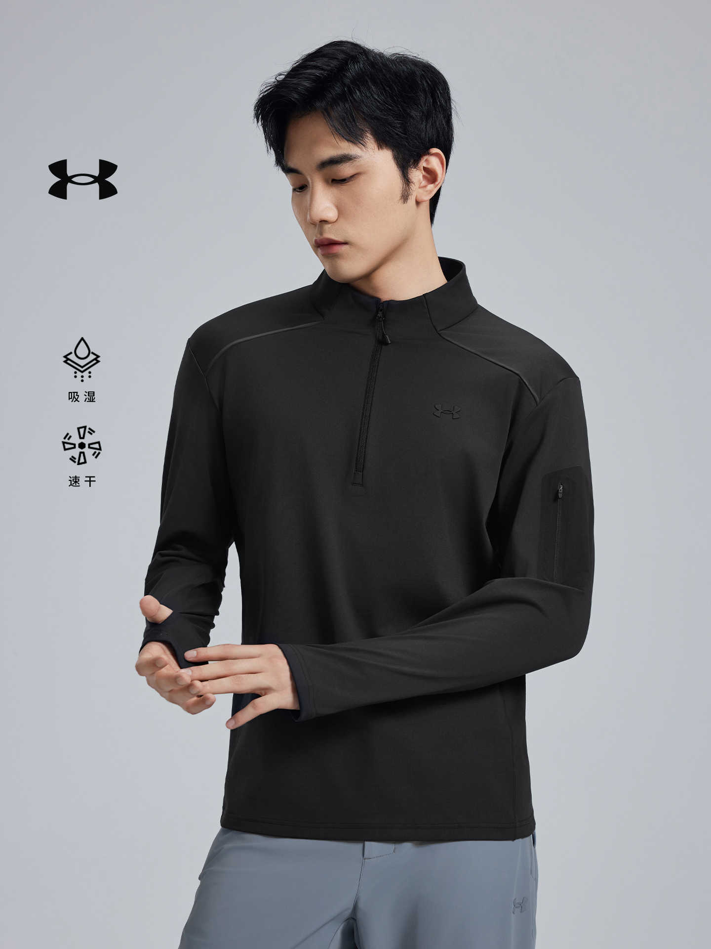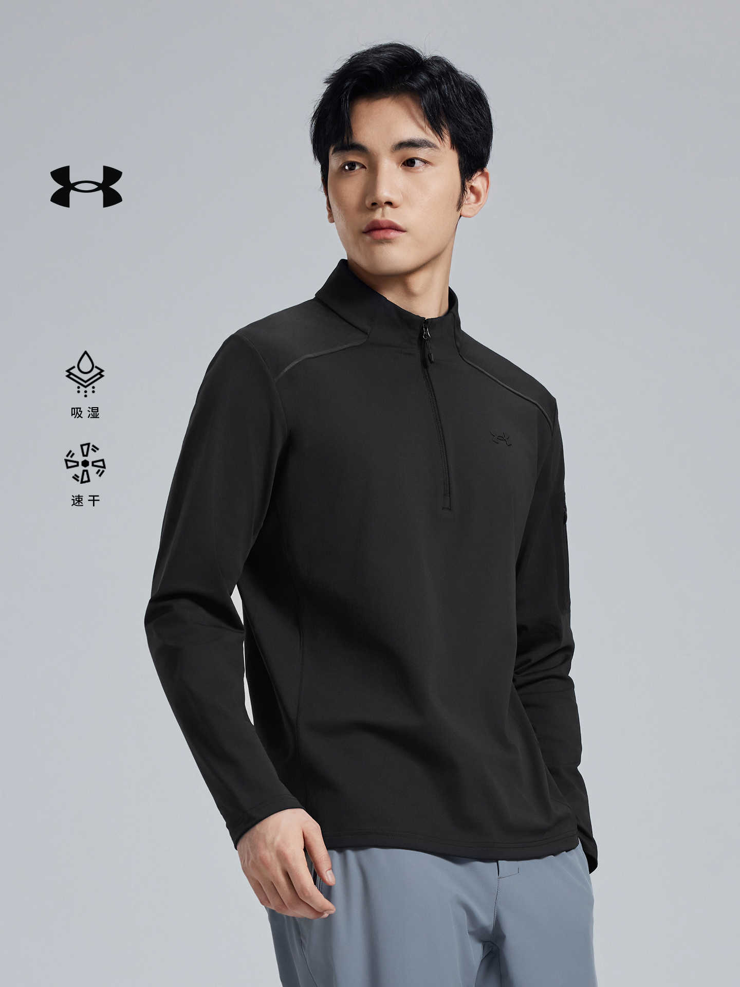 安德玛UA长袖立领T恤男秋冬运动休闲内搭打底弹力吸湿速干衣14313210-001
