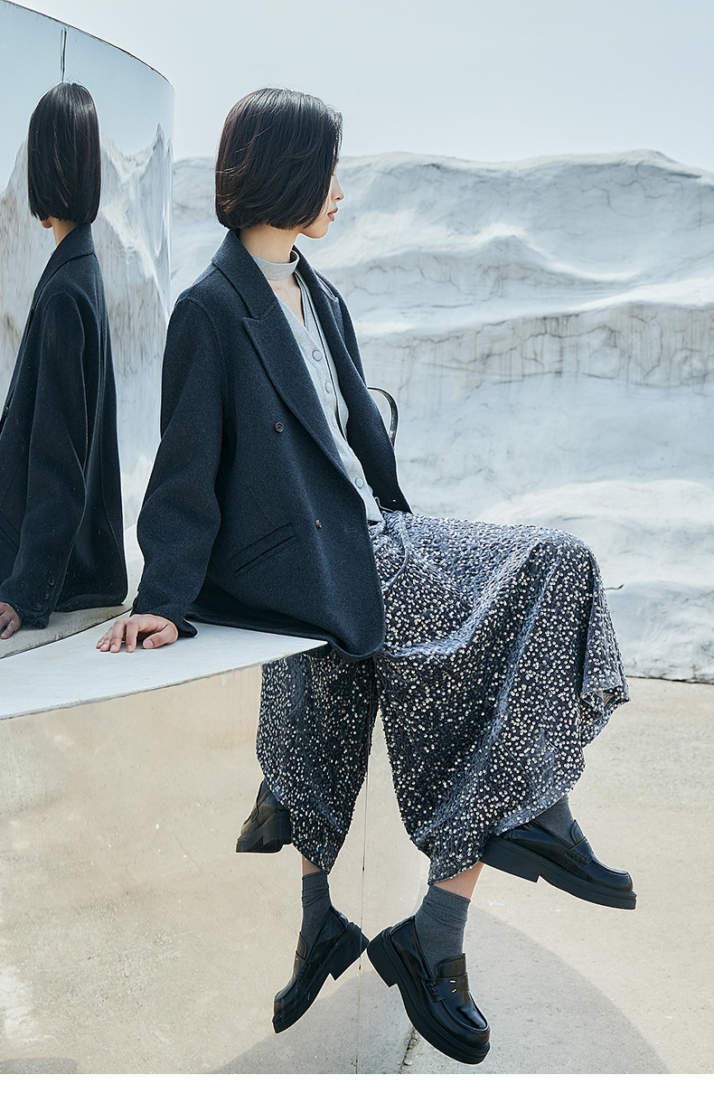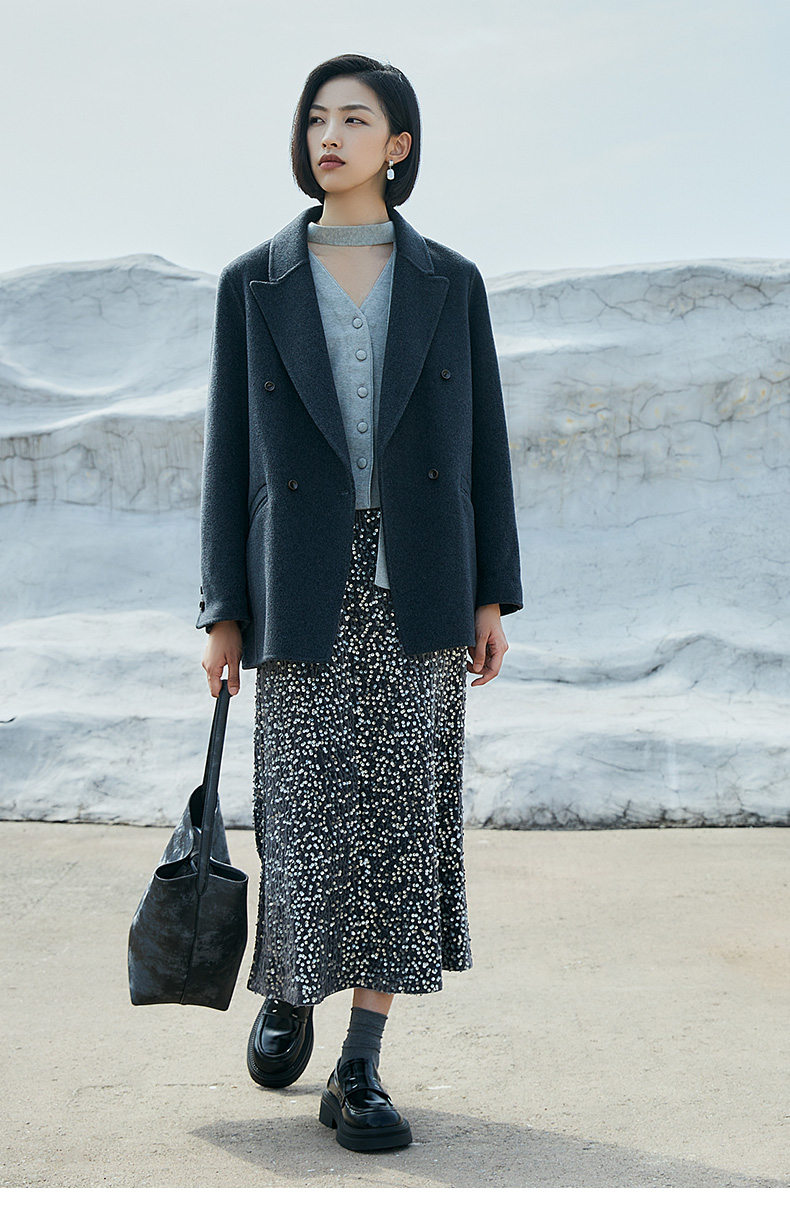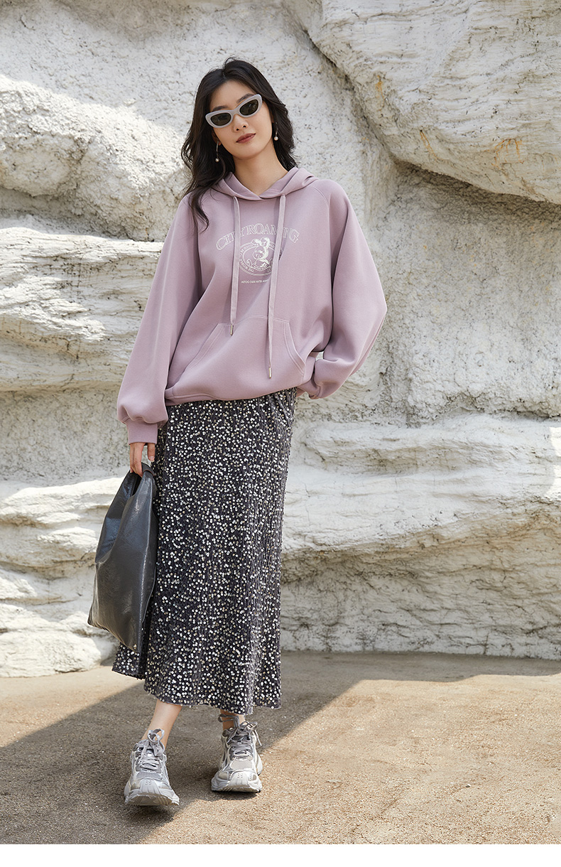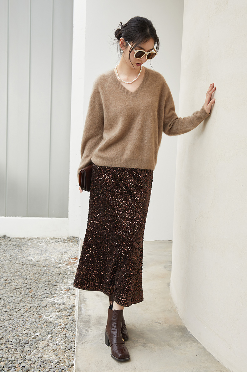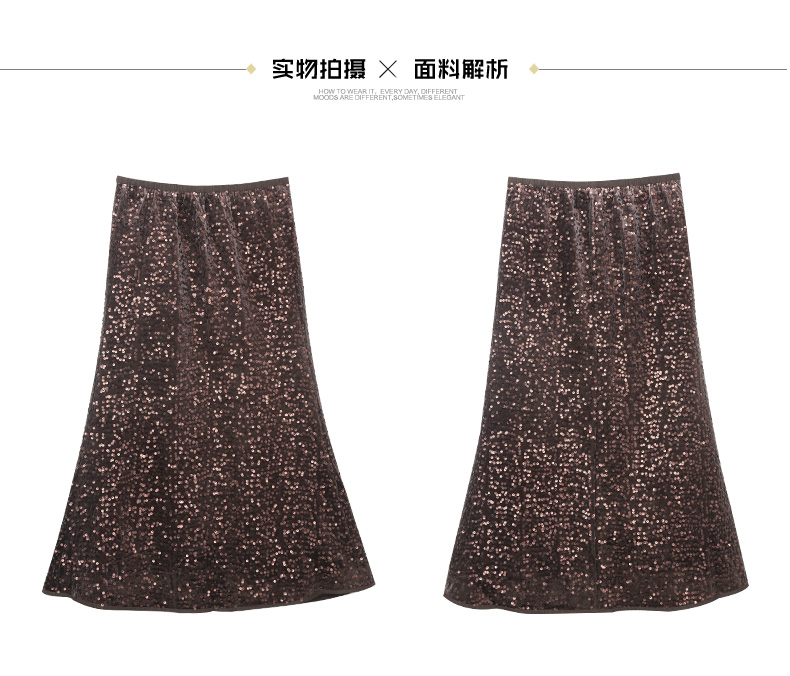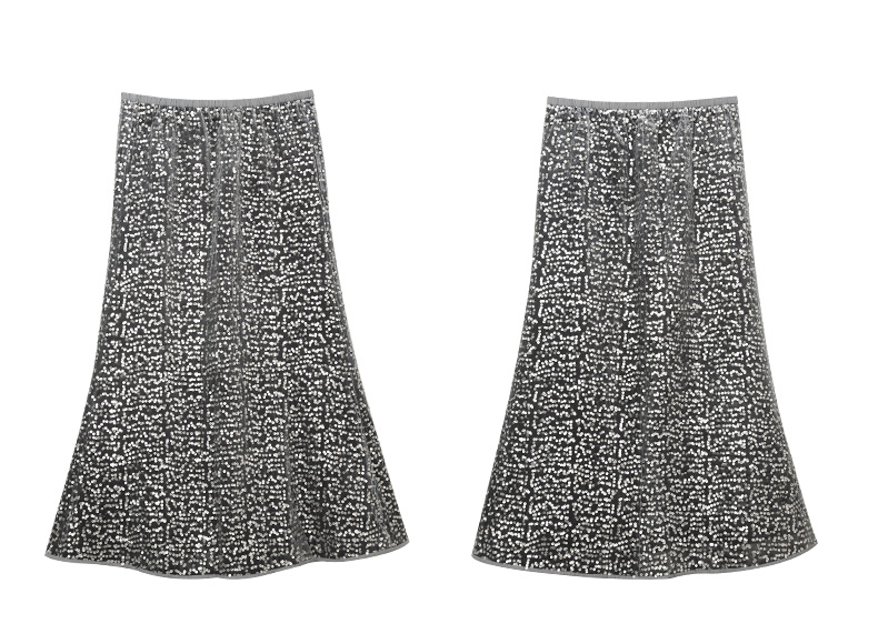 银灰色亮片鱼尾半身裙 复古风高腰显瘦中长裙 派对约会闪耀百搭女式裙装