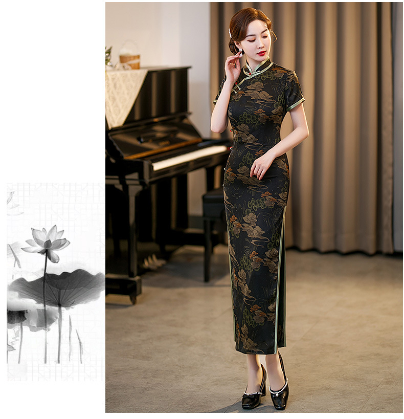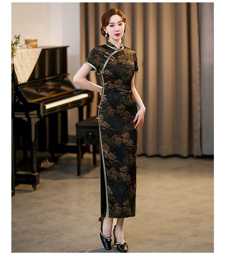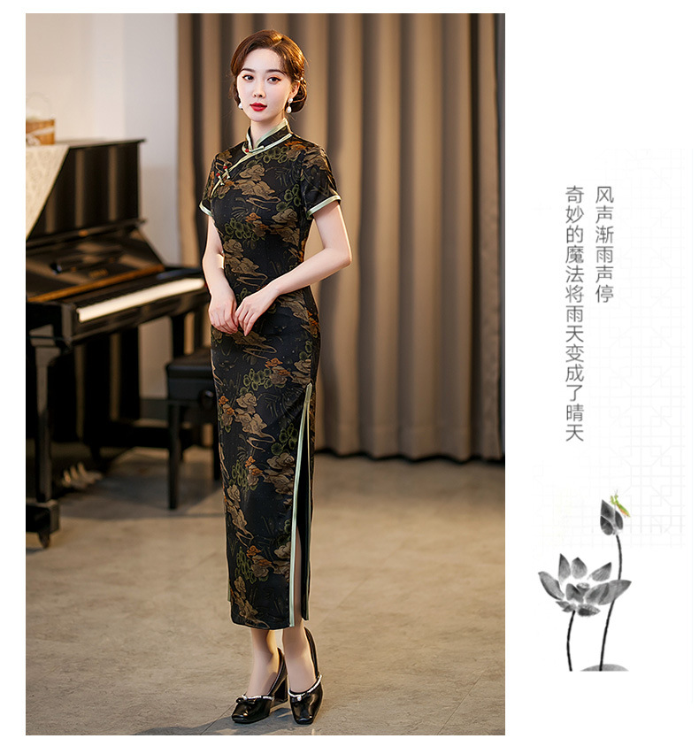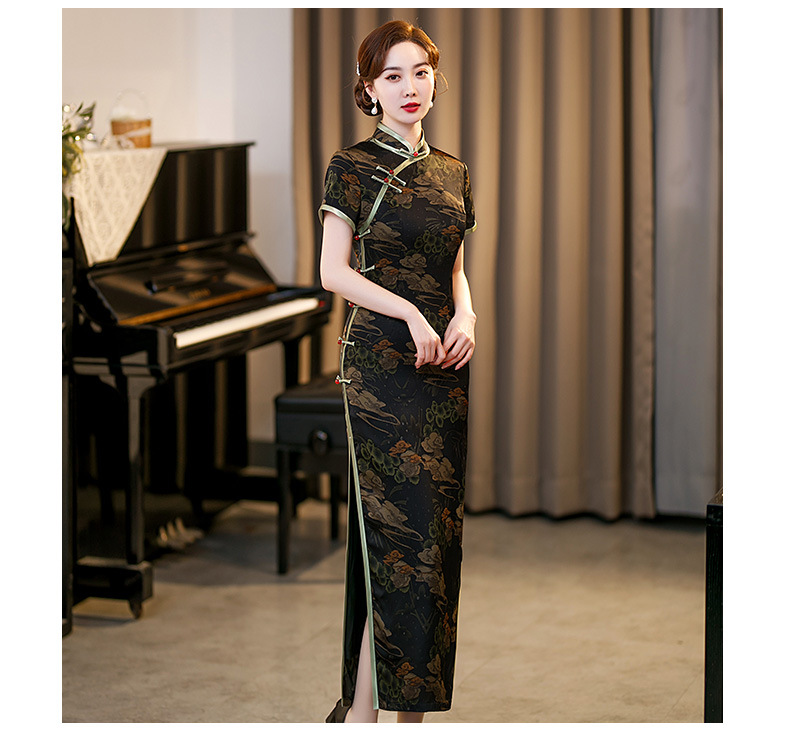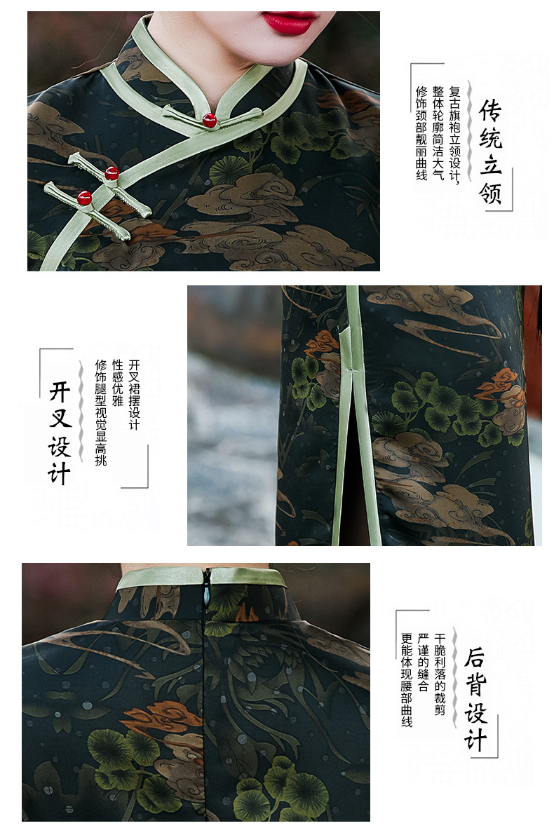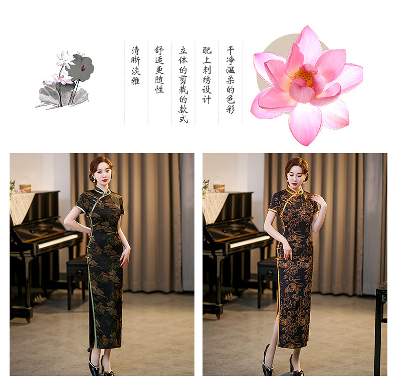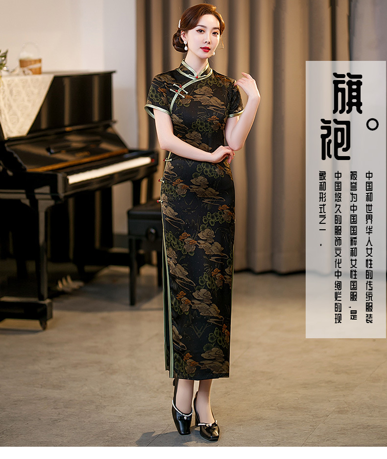 GSJ-3045新款春夏旗袍长款仿花萝日常走秀连衣裙复古民国轻熟风