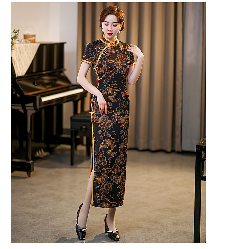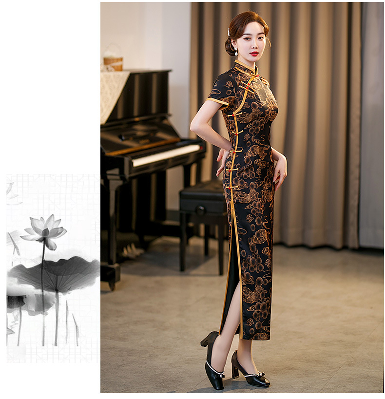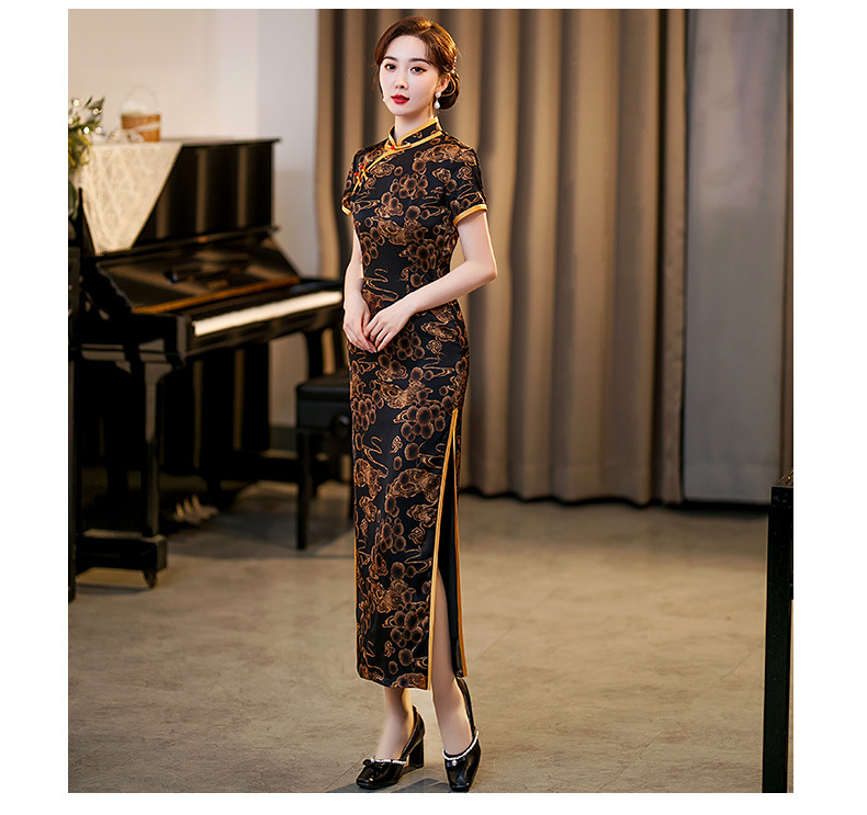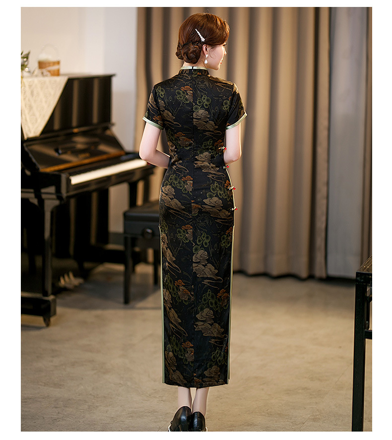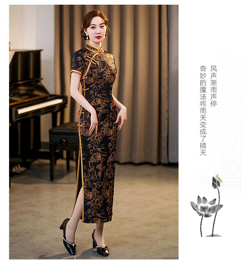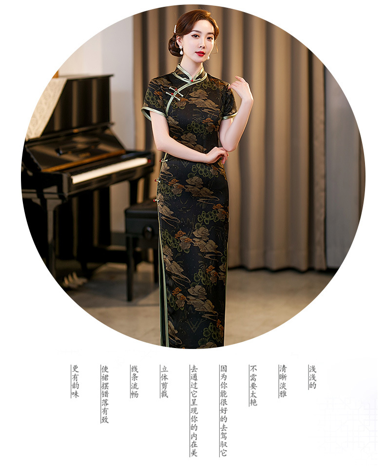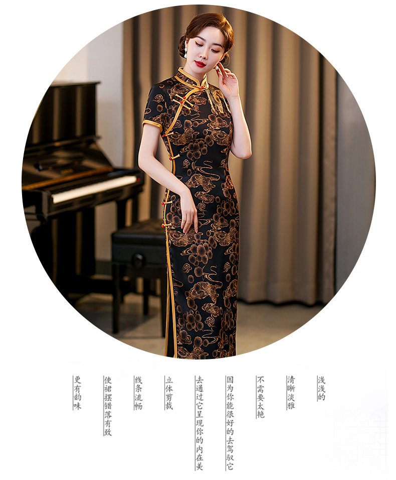 GSJ-3045新款春夏旗袍长款仿花萝日常走秀连衣裙复古民国轻熟风